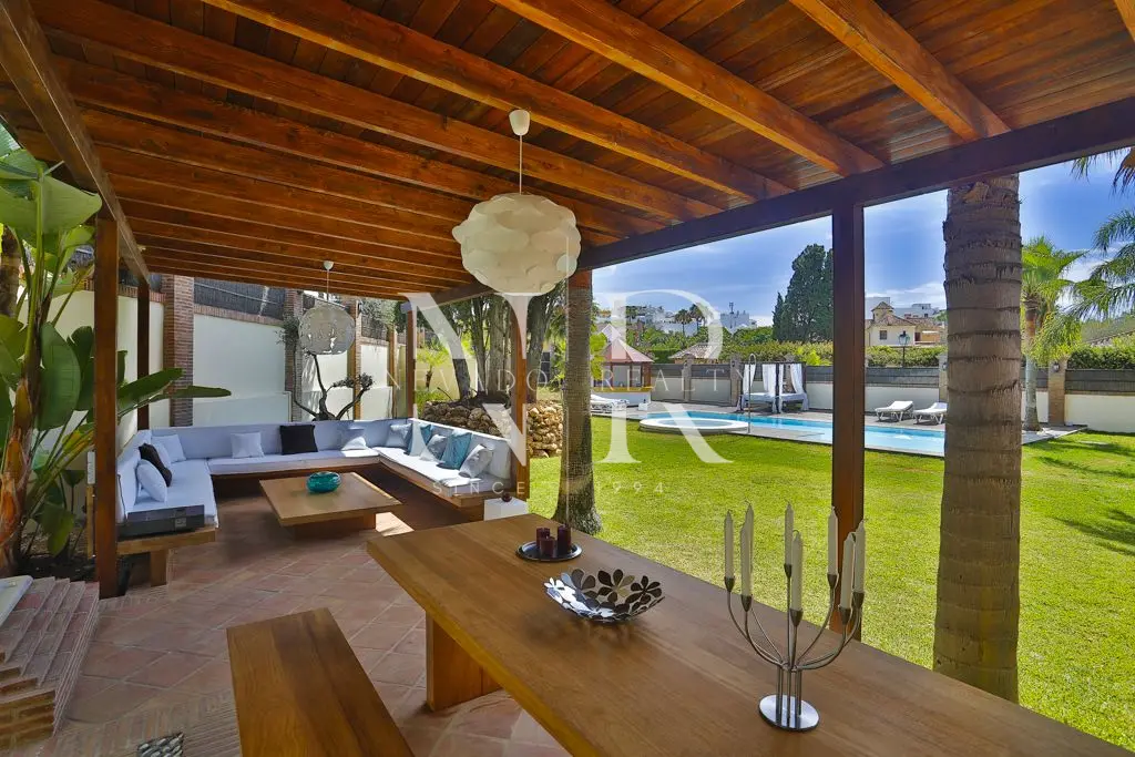 Villa en la Milla de oro en alquiler. Esta Villa orientada al norte está concebida para grandes grupos o varias familias que deseen pasar las vacaciones juntos.