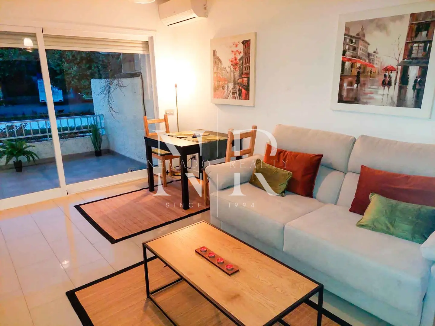 El apartamento ha sido totalmente renovado con cocina totalmente equipada, amplio dormitorio que incluye cama de matrimonio y litera, amplia terraza, piscina y jardines comunitarios.