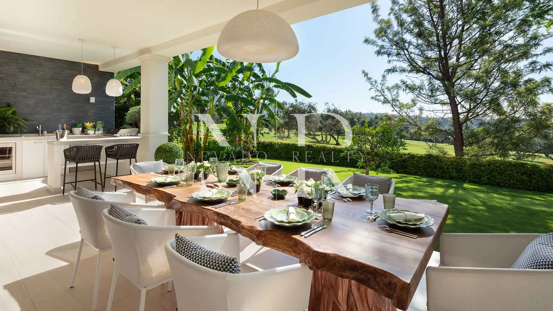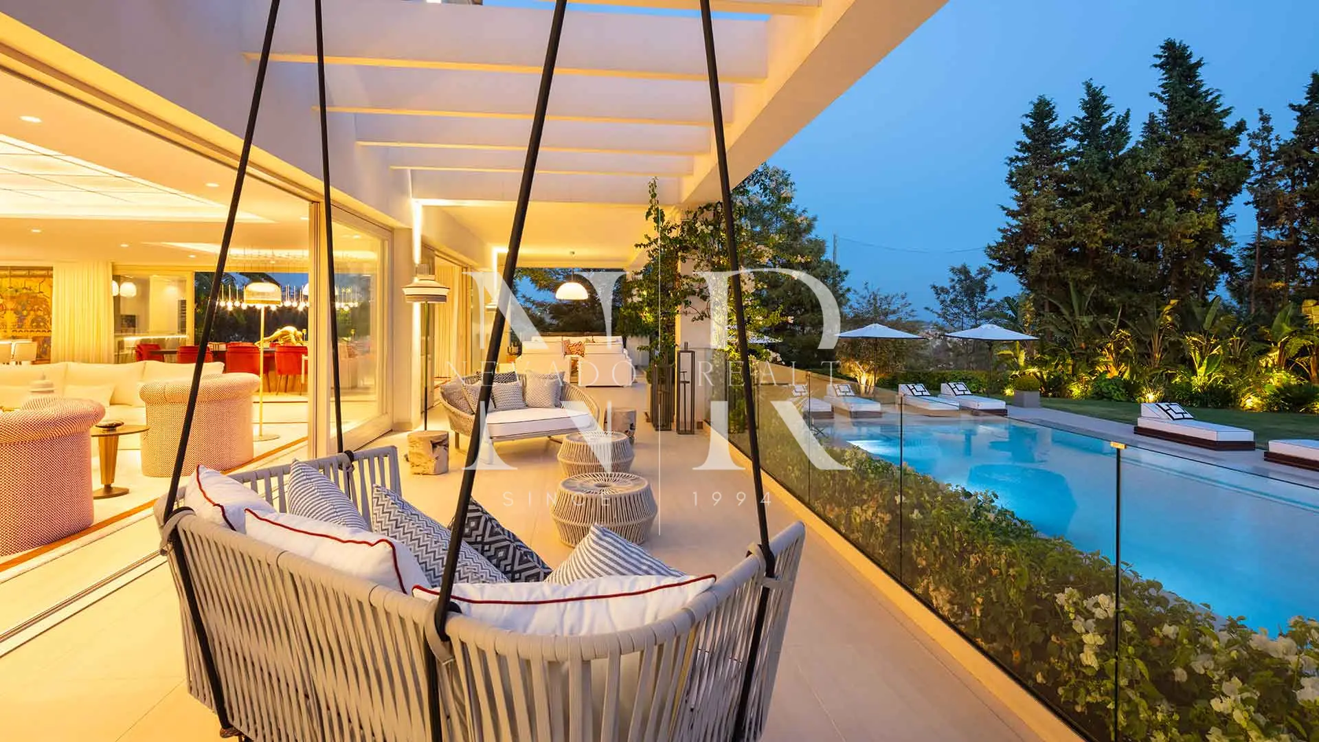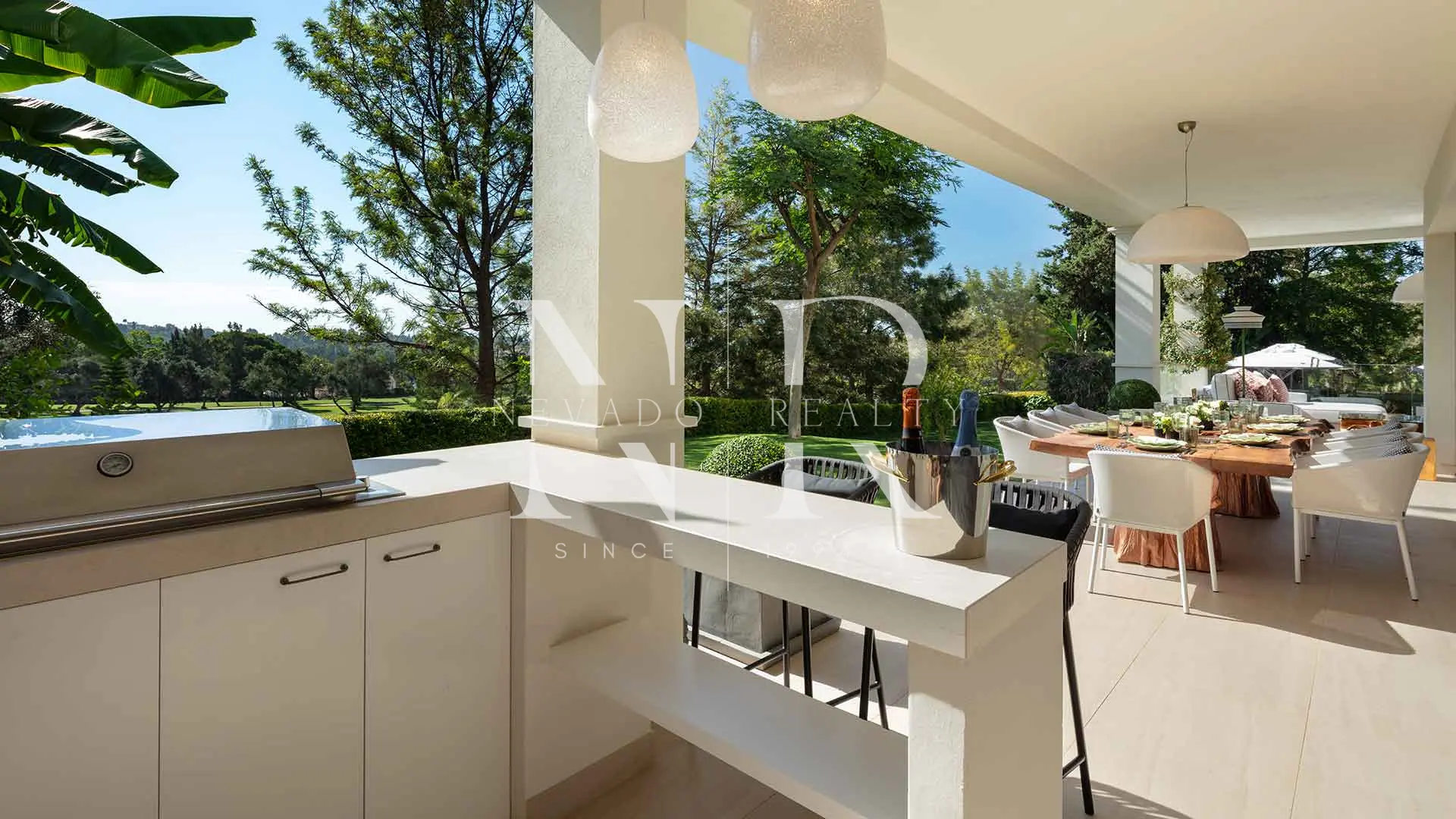 El exterior es igualmente impresionante, con amplias terrazas cubiertas y descubiertas, ideales para disfrutar del sol de Marbella durante todo el año. El jardín maduro, repleto de vegetación cuidadosamente integrada, rodea la casa y ofrece rincones de paz y belleza. Esta villa está pensada tanto para el disfrute íntimo como para el entretenimiento, con zonas perfectas para cenas al aire libre, momentos de descanso o celebraciones inolvidables.
