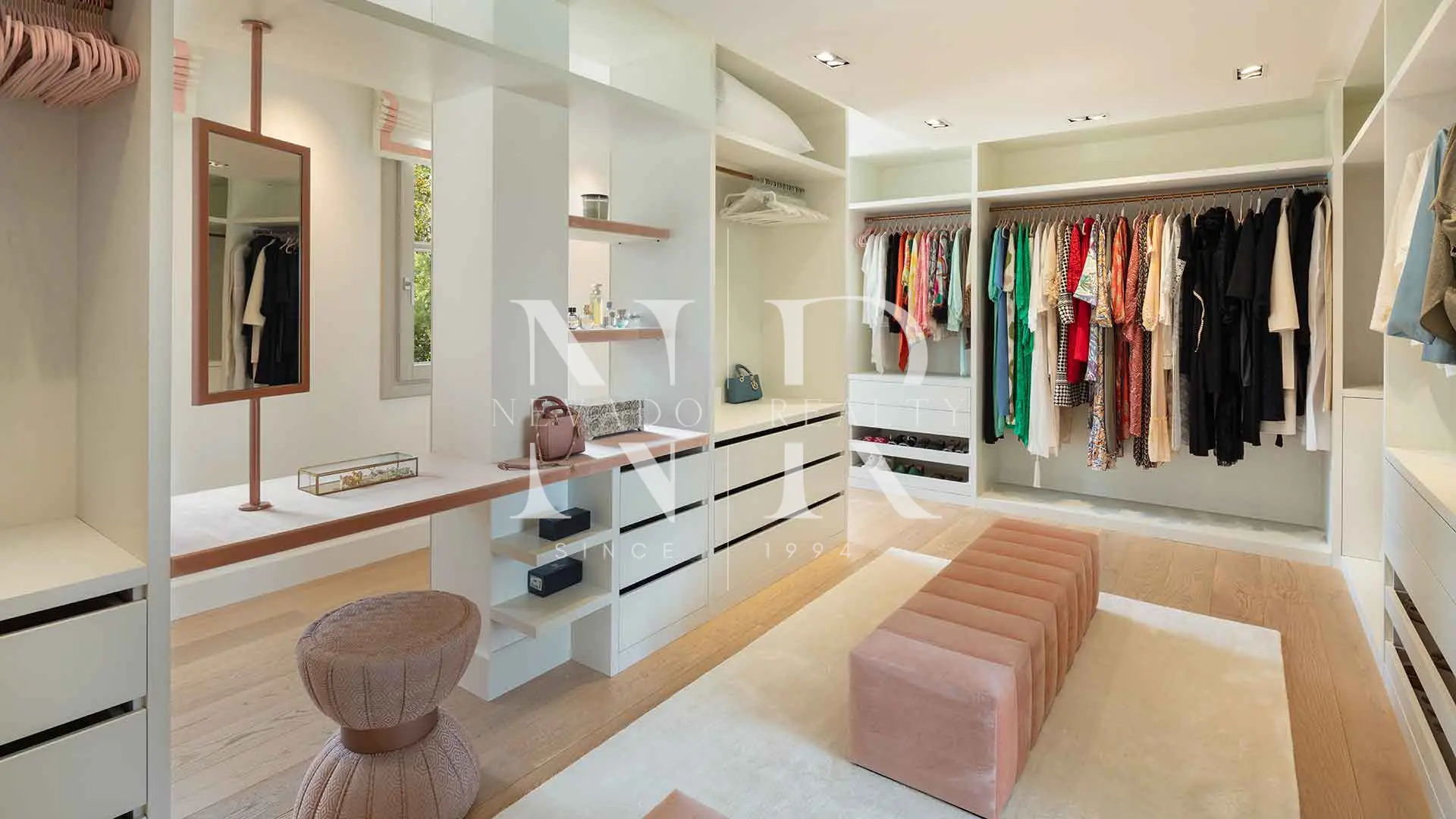 En su interior, la residencia principal alberga cinco amplios dormitorios, entre ellos una majestuosa suite principal con vestidor privado. La distribución está pensada para ofrecer fluidez y confort, con una decoración que recurre a tonos neutros, materiales nobles y acabados de alta calidad. Cada habitación cuenta con un estilo propio. La propiedad incluye una encantadora casa de invitados independiente con un dormitorio, ideal para alojar visitas o personal de servicio con total privacidad.