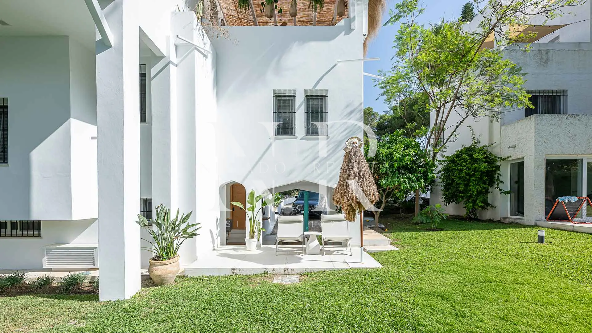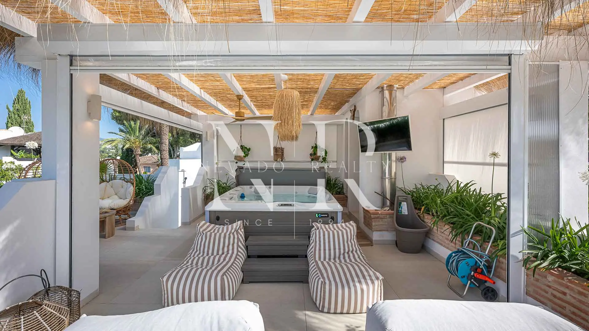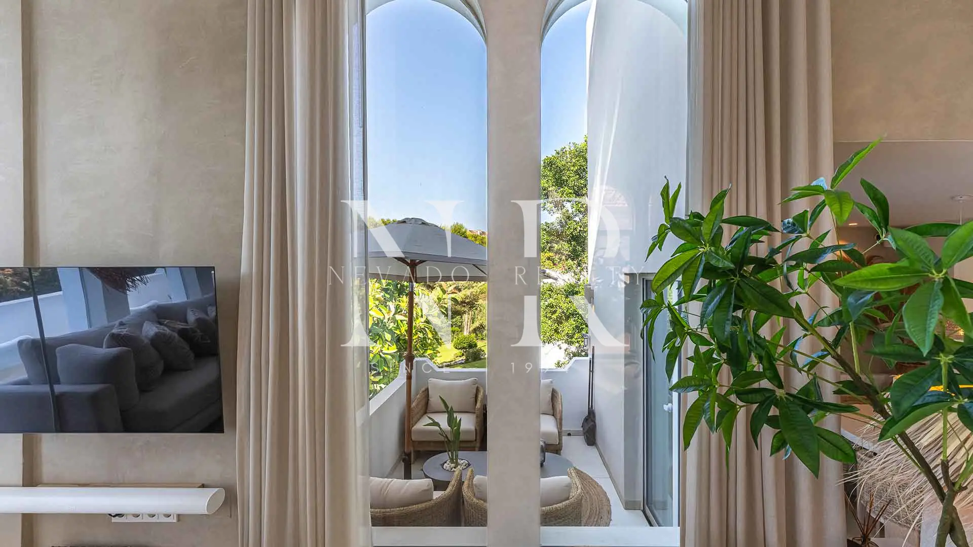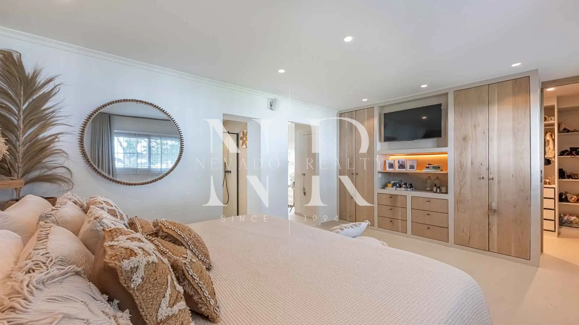 Villa en Atalaya Río Verde de estilo boho en venta. Enclavada en la comunidad cerrada de Las Lagunas, esta villa representa una oportunidad única en el corazón de Nueva Andalucía, una de las zonas más codiciadas de Marbella. A escasos minutos de Puerto Banús, la propiedad ofrece una combinación perfecta de privacidad, exclusividad y proximidad a las mejores playas, restaurantes de renombre y boutiques de lujo de la Costa del Sol.
