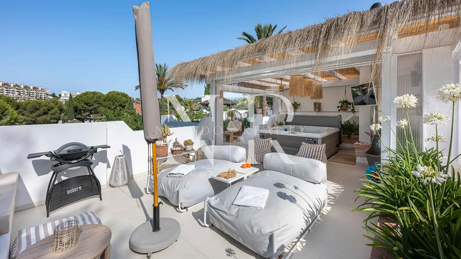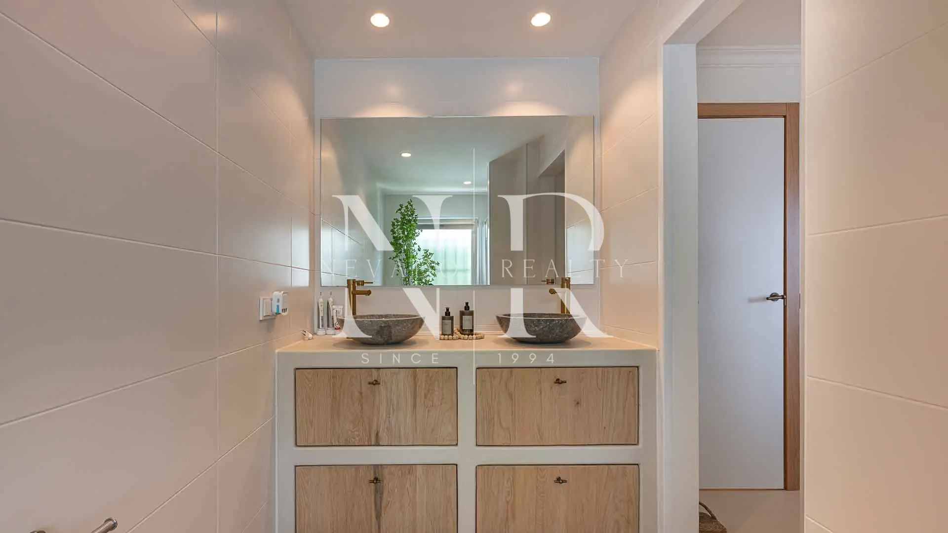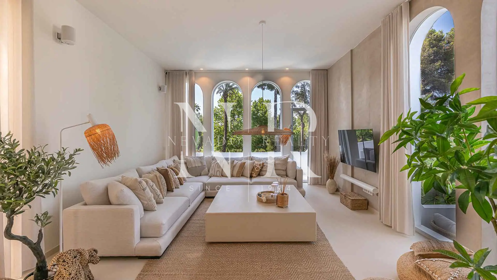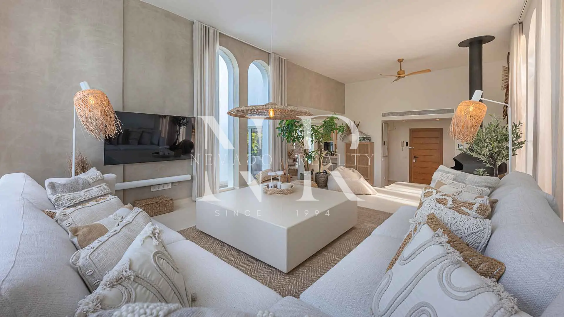La villa, completamente renovada en 2023 destaca por su arquitectura mediterránea reinterpretada con un sofisticado estilo boho. El interior de la vivienda se ha diseñado para ofrecer amplitud, comodidad y un estilo acogedor a la vez que elegante. La zona de estar de concepto abierto se conecta perfectamente con la moderna cocina. Cada detalle ha sido cuidadosamente seleccionado, combinando elementos naturales como la madera y la cerámica con acabados contemporáneos.