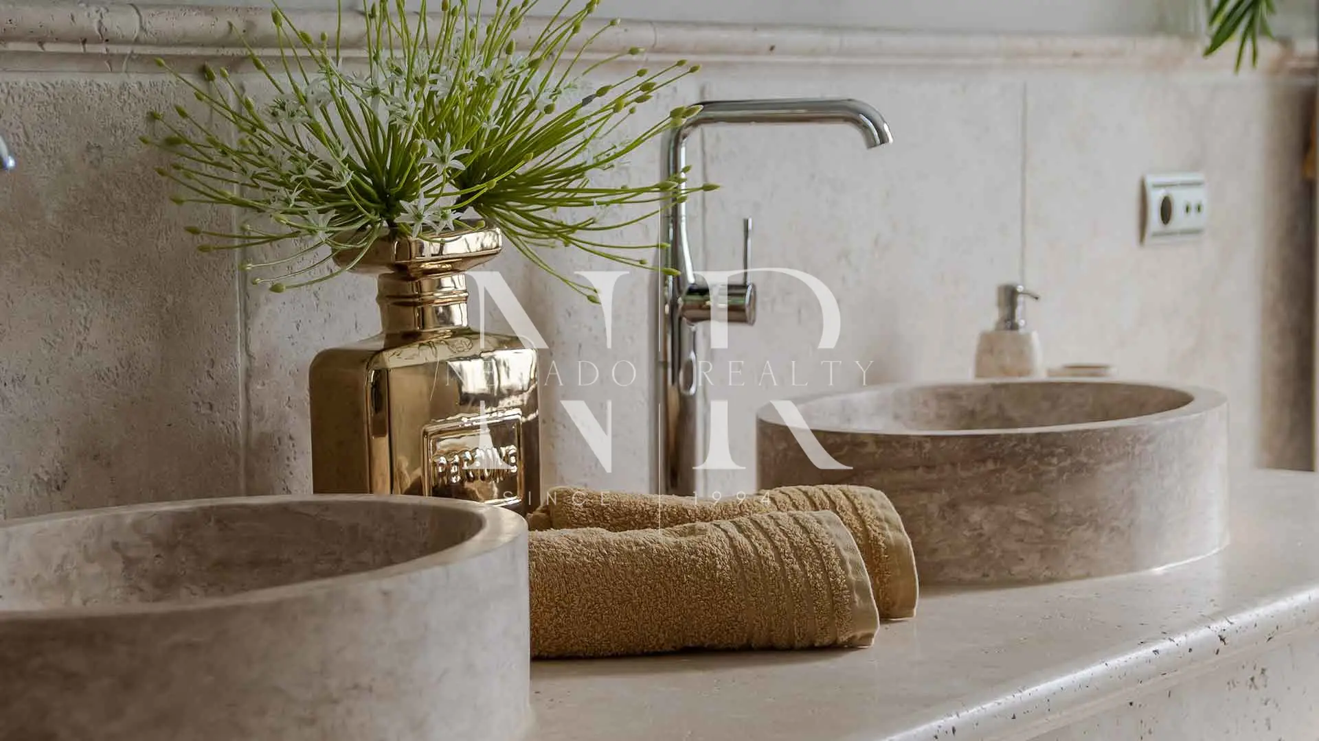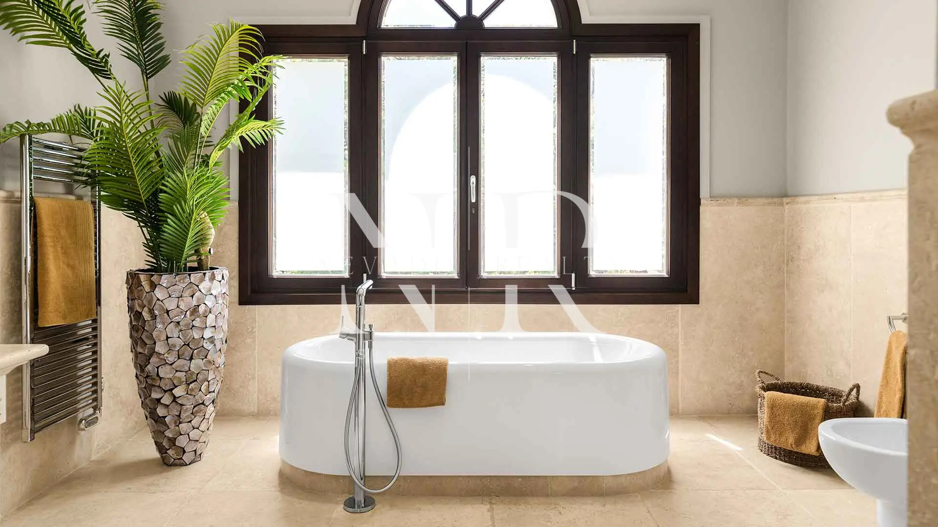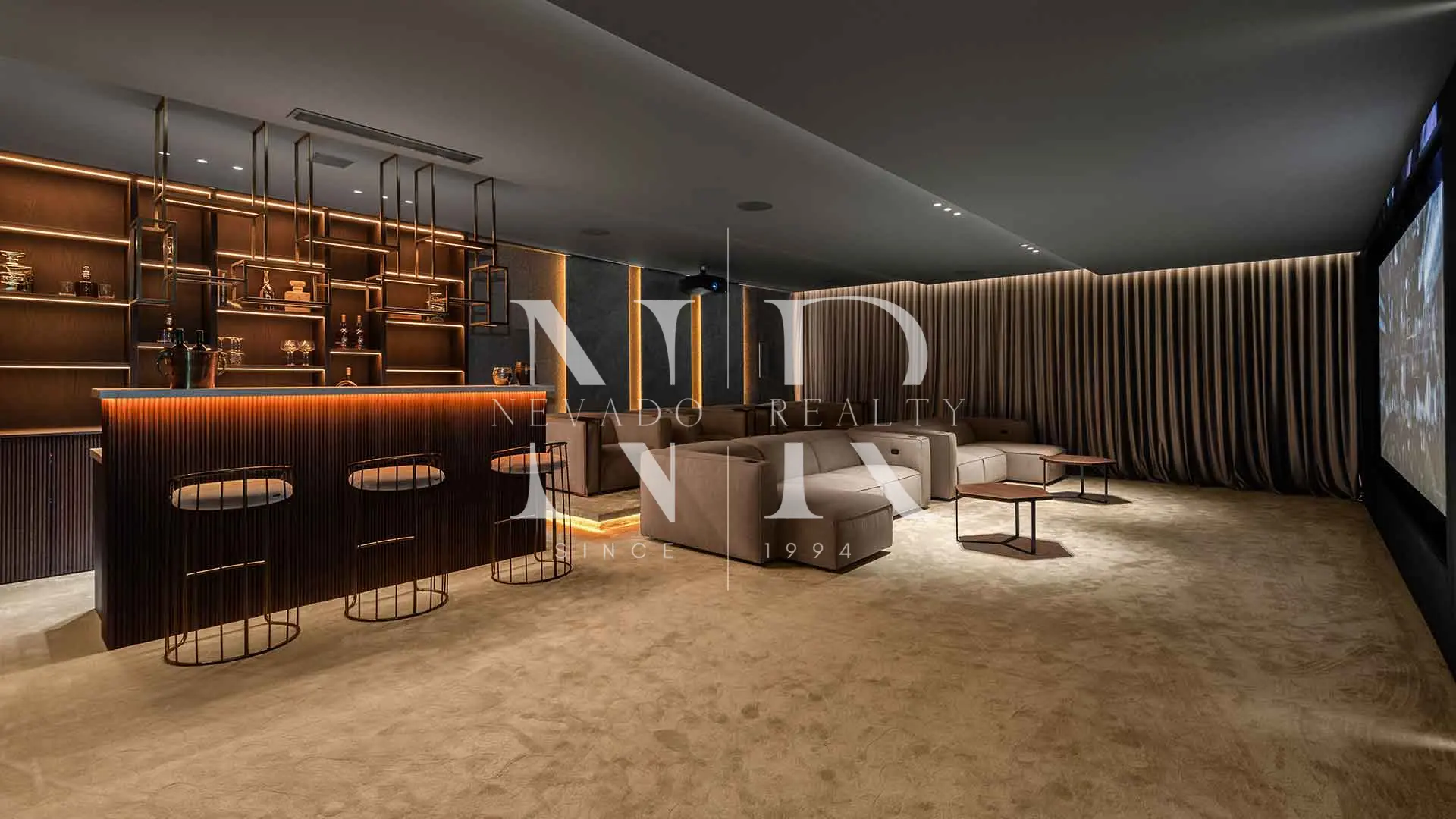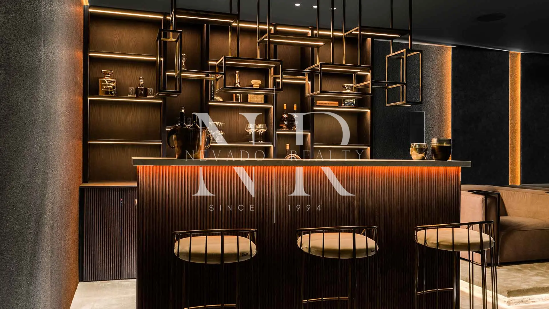 La moderna cocina a medida, equipada con electrodomésticos Gaggenau de alta gama, está diseñada para ofrecer funcionalidad y estilo. En el exterior, la gran piscina climatizada invita a disfrutar todo el año, mientras que los jardines con olivos maduros proporcionan un entorno sereno para la relajación. La orientación sur asegura abundante luz natural durante todo el día, haciendo de cada rincón de esta casa una escapada tranquila.