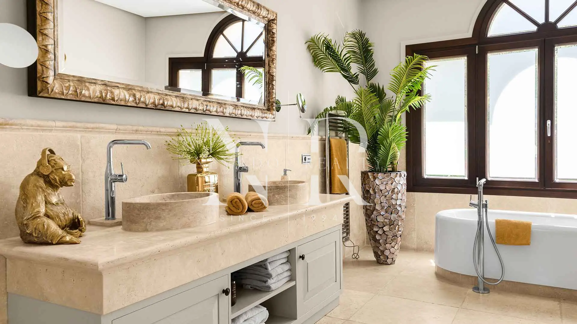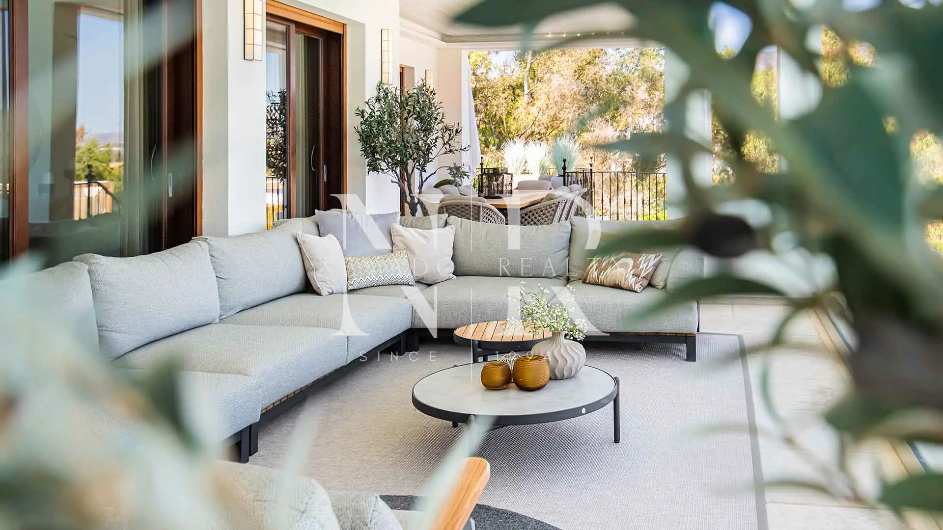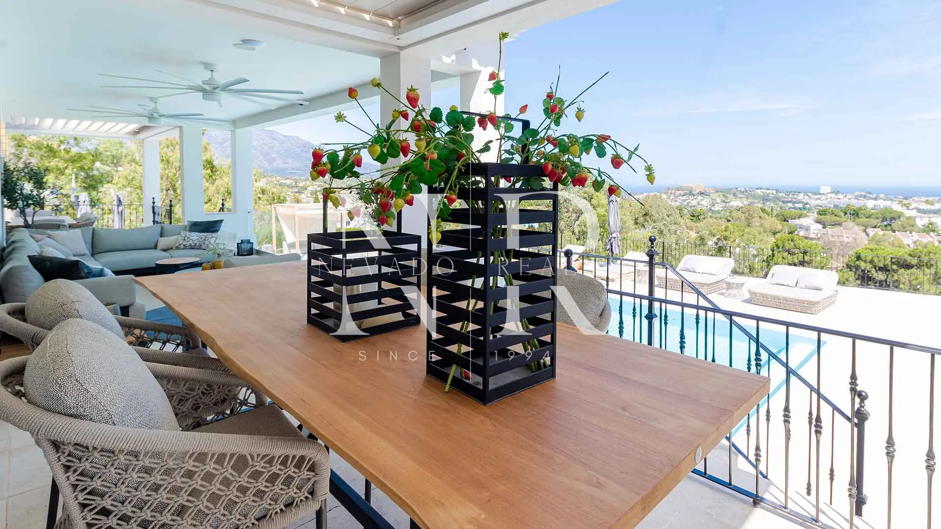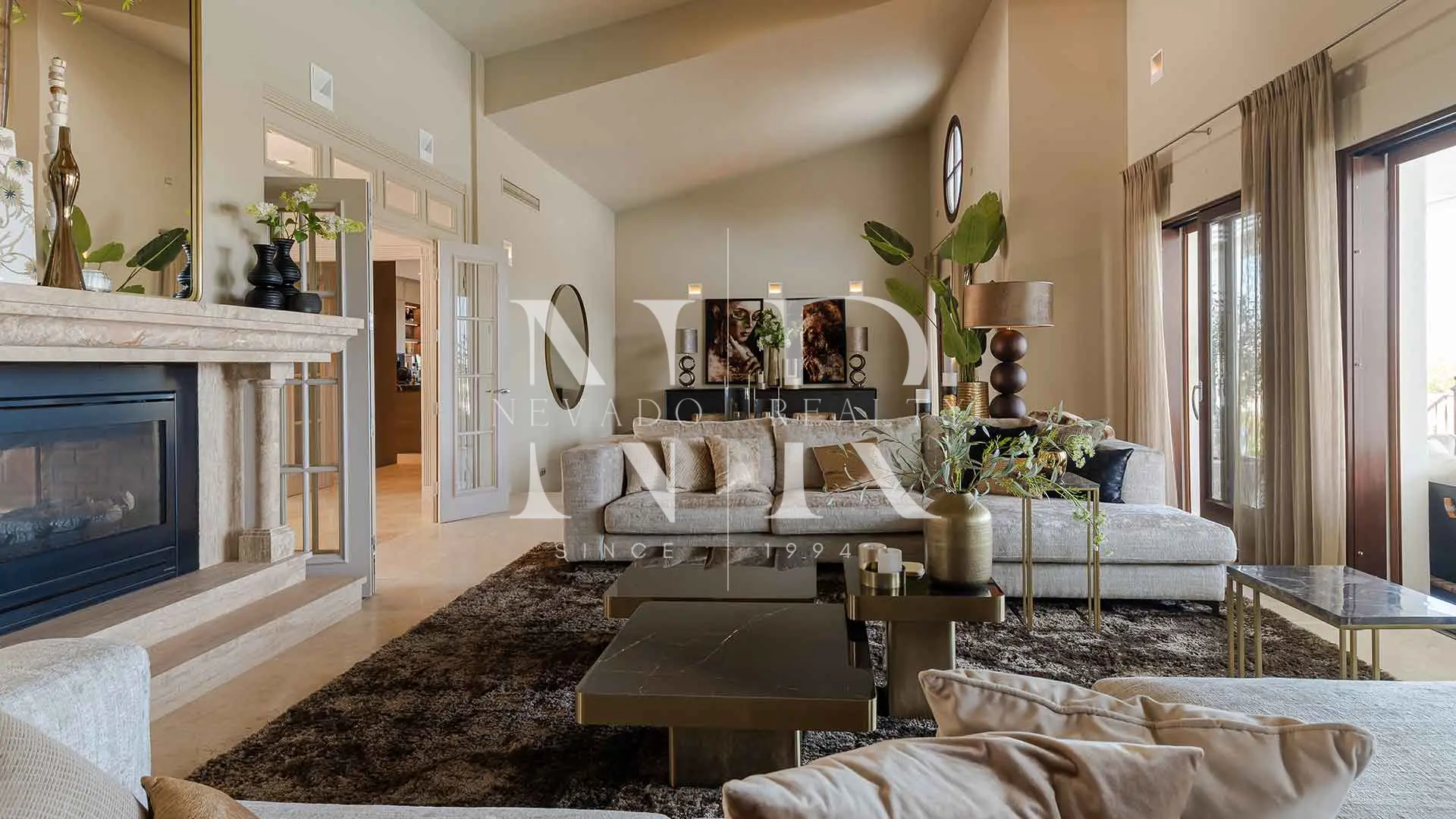 En su interior, la villa combina a la perfección el encanto tradicional andaluz con el lujo contemporáneo. La espaciosa sala de estar principal cuenta con un techo abovedado, un acogedor segundo salón y un elegante comedor, que fluyen a la perfección hacia una amplia terraza.