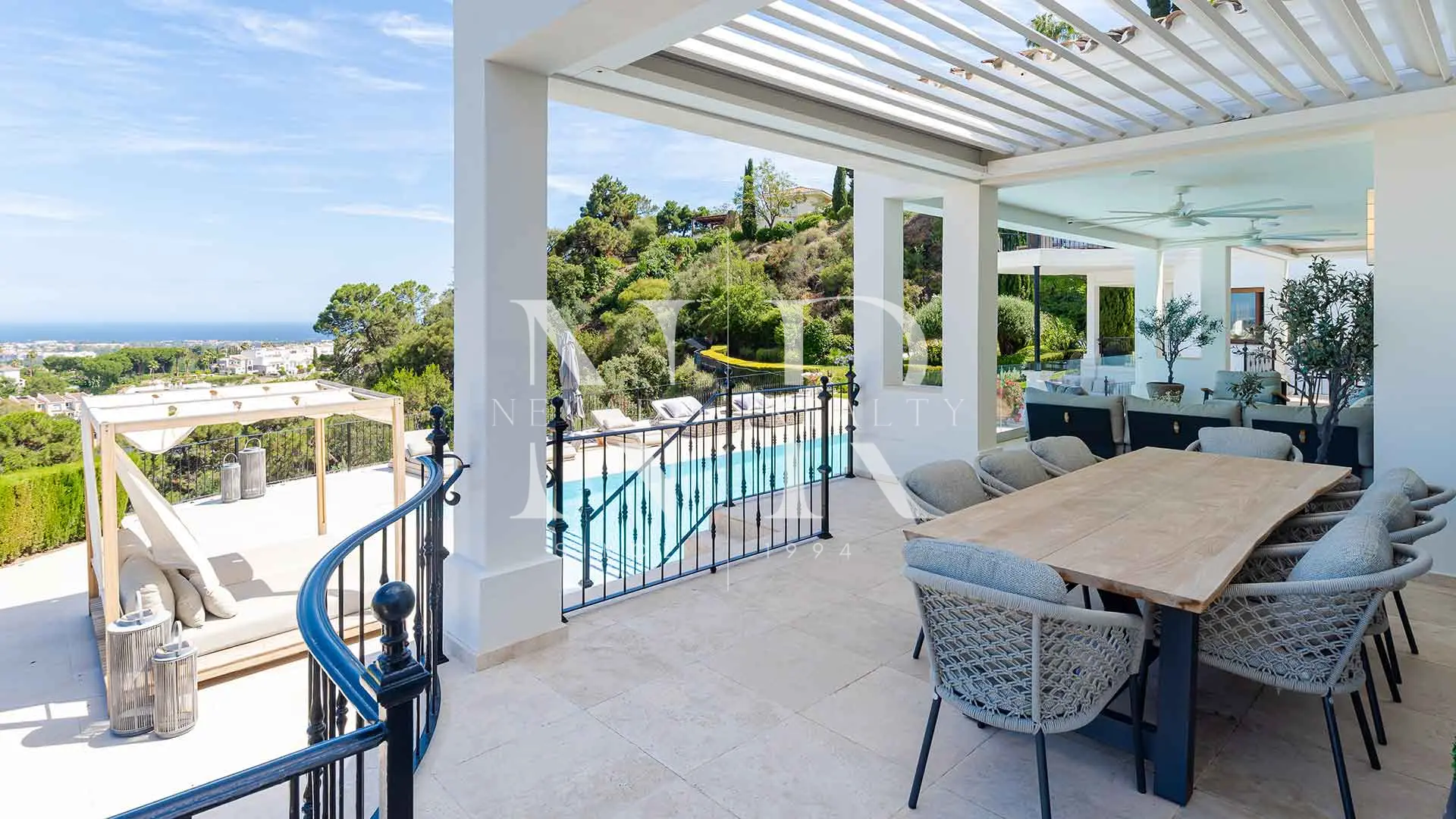 Villa en El Herrojo con vistas panorámicas al mar en venta. Esta exquisita villa familiar, situada en una prestigiosa urbanización cerrada de El Herrojo Alto, ofrece una incomparable mezcla de privacidad, espacio e impresionantes vistas. Ubicada en La Quinta, una de las zonas más codiciadas de Marbella, la propiedad goza de una posición elevada, lo que garantiza unas vistas impresionantes del mar Mediterráneo, la montaña de La Concha, y su propia finca privada que abarca más de 10.000 m².
