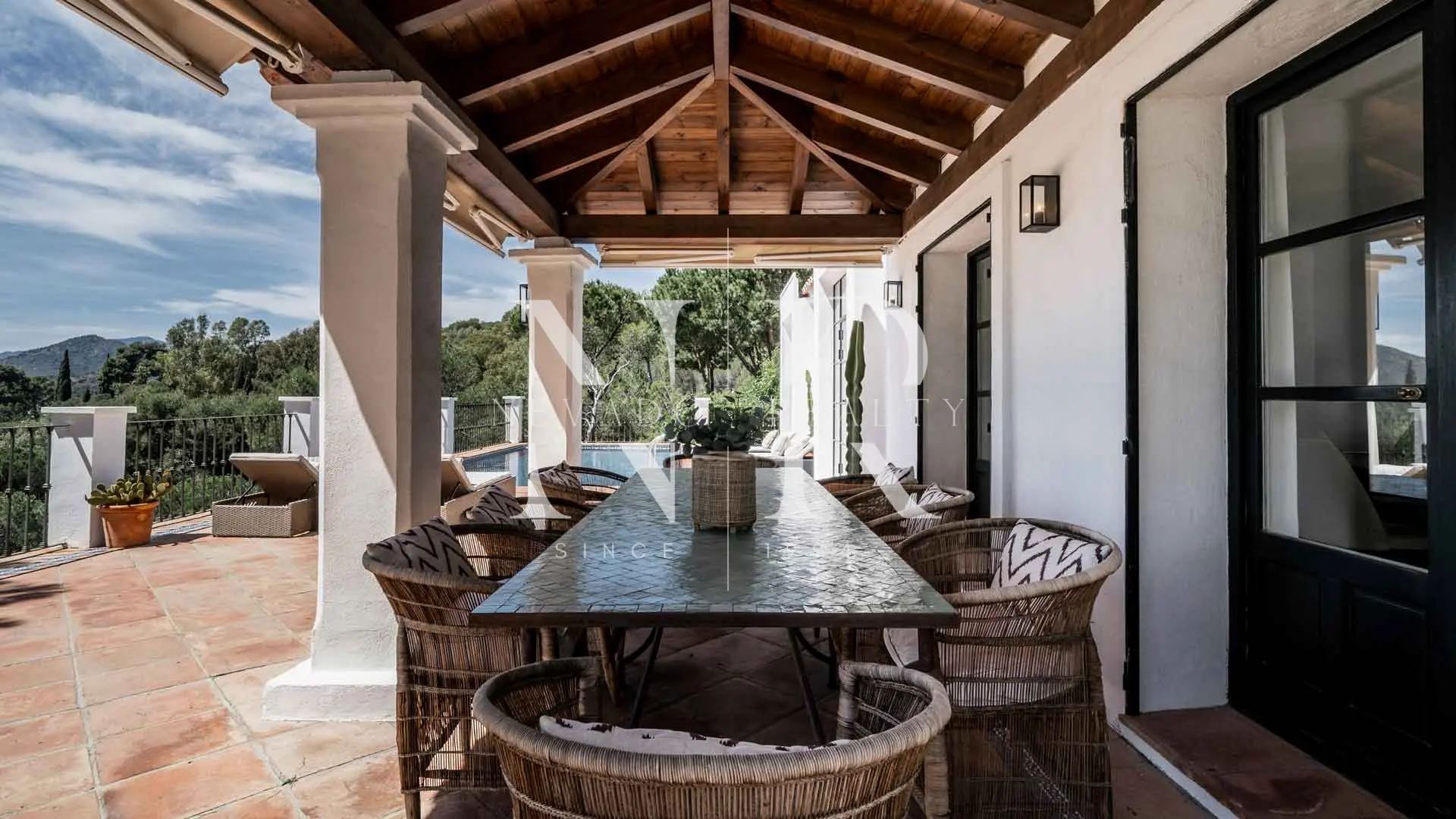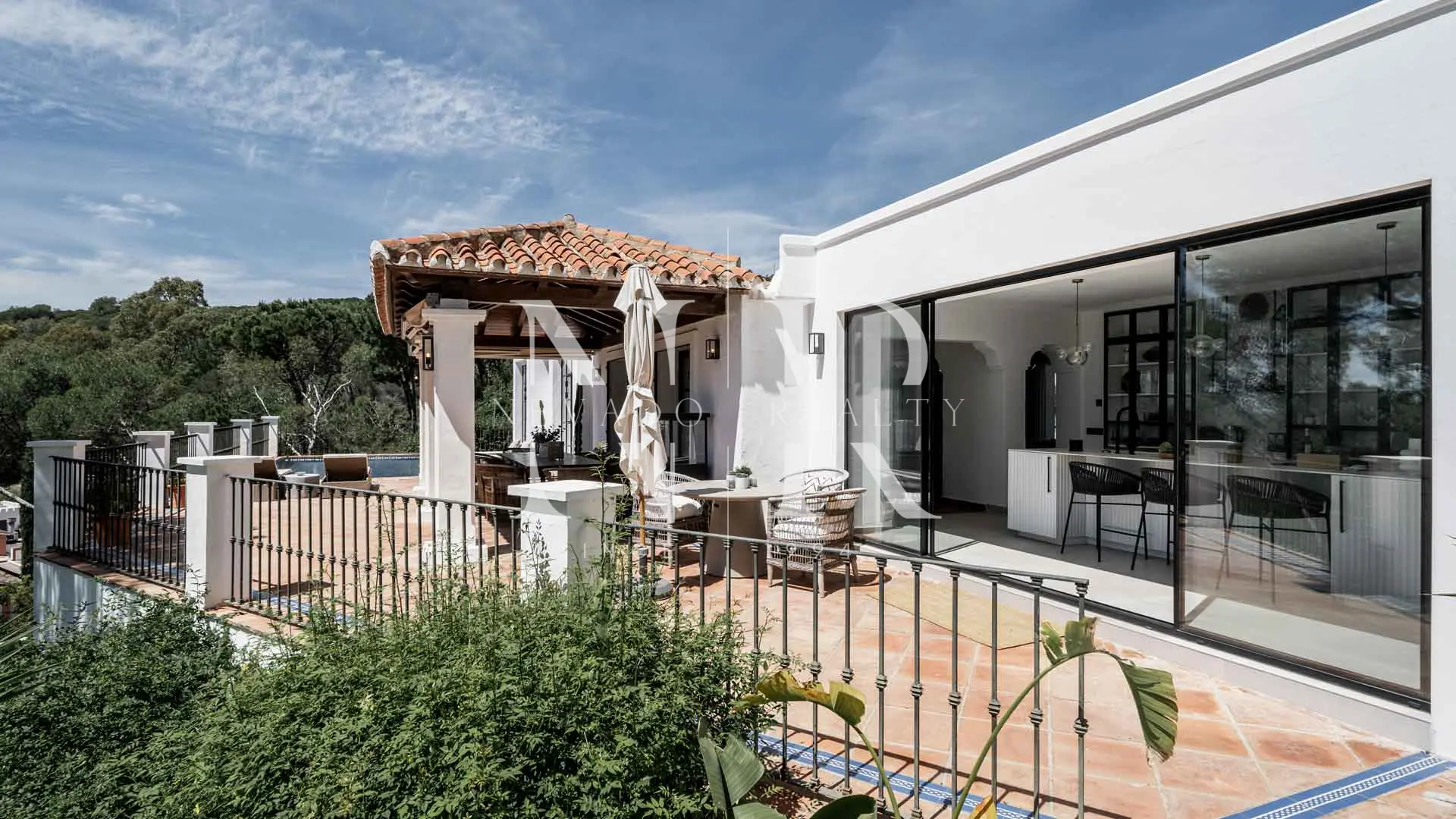 El exterior de la propiedad, al puro estilo de un Cortijo español, es igualmente impresionante. Una amplia terraza con zona de comedor al aire libre y una piscina privada con jacuzzi ofrecen el escenario perfecto para relajarse y disfrutar del clima soleado de la Costa del Sol. Además, la villa cuenta con suelo radiante en toda la casa, proporcionando un confort excepcional durante todo el año.