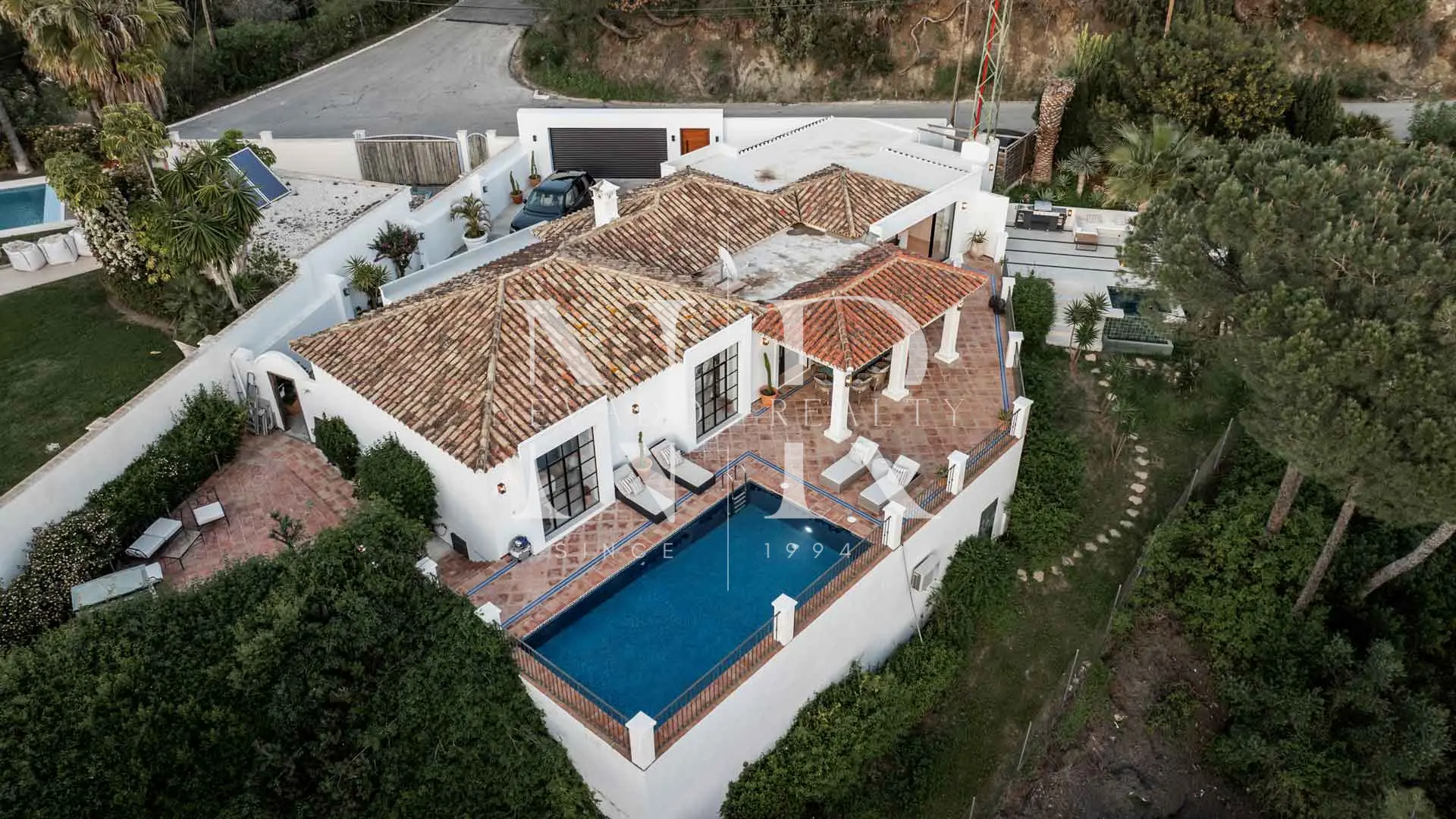 Villa en El Madroñal con vistas panorámicas al mar en venta. En El Madroñal, una exclusiva comunidad en la Costa del Sol, se encuentra esta impresionante villa en venta. Recientemente renovada con un estilo único, esta propiedad ofrece comodidad en cada rincón. Con cuatro habitaciones y cuatro baños, cada uno diseñado con atención al detalle, esta villa es un refugio perfecto para disfrutar del estilo de vida mediterráneo.