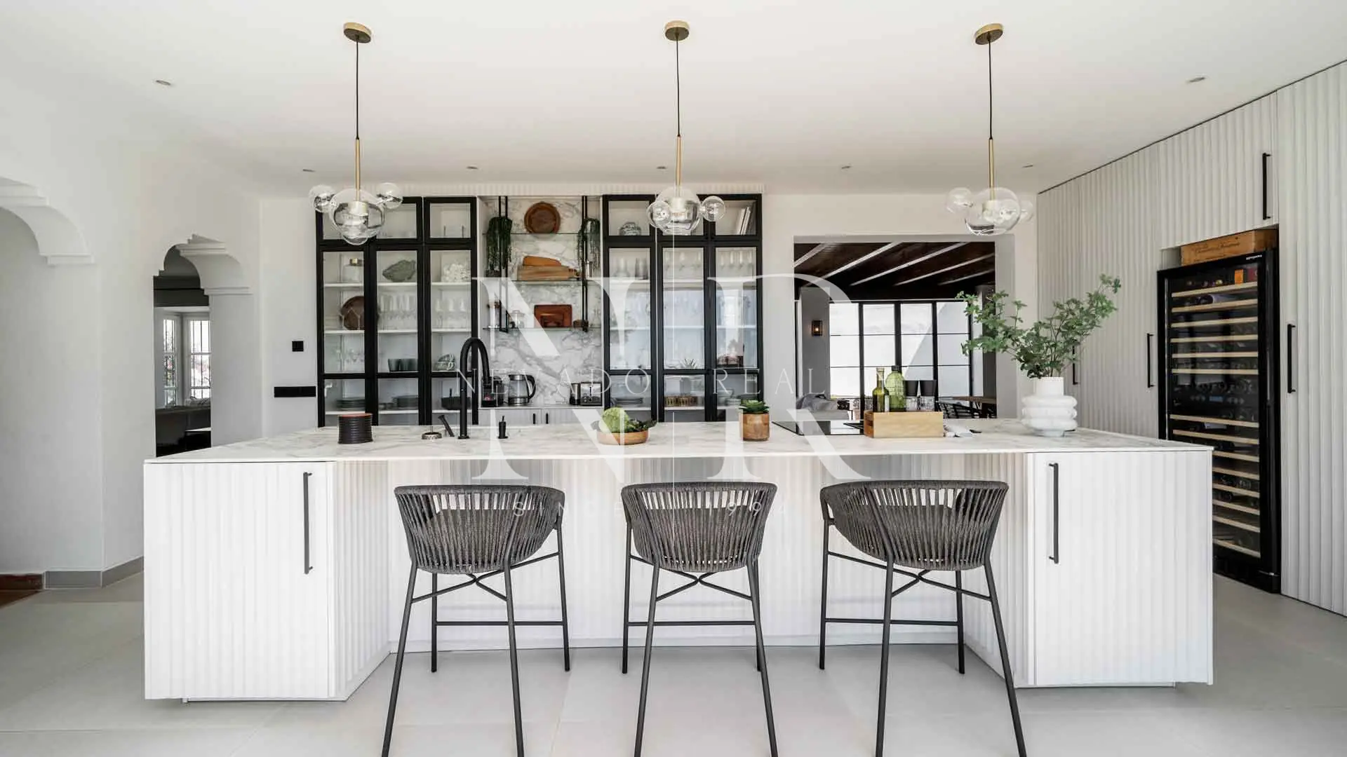 Desde su amplia cocina, con grandes ventanales que inundan el espacio de luz natural, se puede disfrutar de unas vistas panorámicas al mar que quitan el aliento. Se encuentra equipada con electrodomésticos de alta gama.