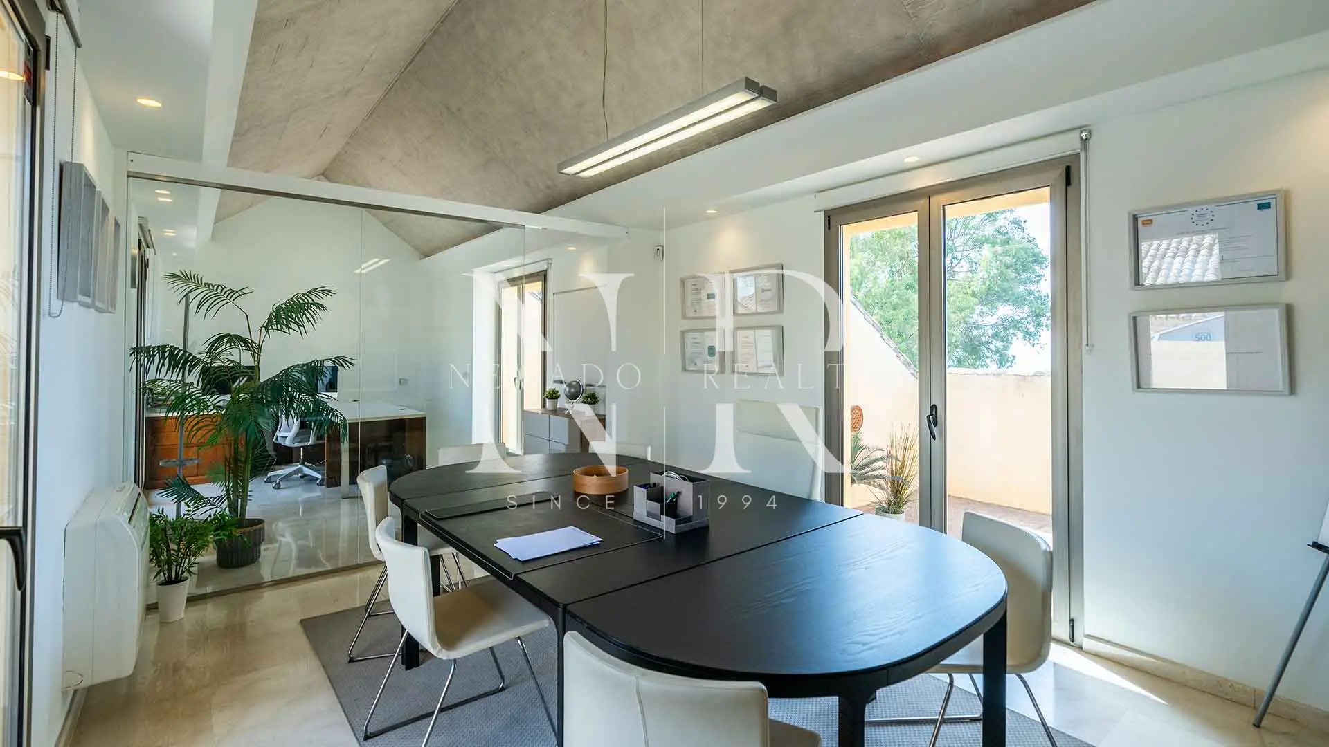 La propiedad se encuentra en un edificio destinado exclusivamente a oficinas, que ofrece servicio de conserjería durante el día, y cuenta con una distribución en dos plantas. En la planta principal encontramos un amplio espacio diáfano con abundante luz natural, ideal para adaptarlo como zona de trabajo abierta, showroom o área de atención al cliente. En la planta superior se sitúa una elegante sala de reuniones junto a un despacho privado, creando un entorno profesional y bien definido para el día a día empresarial.