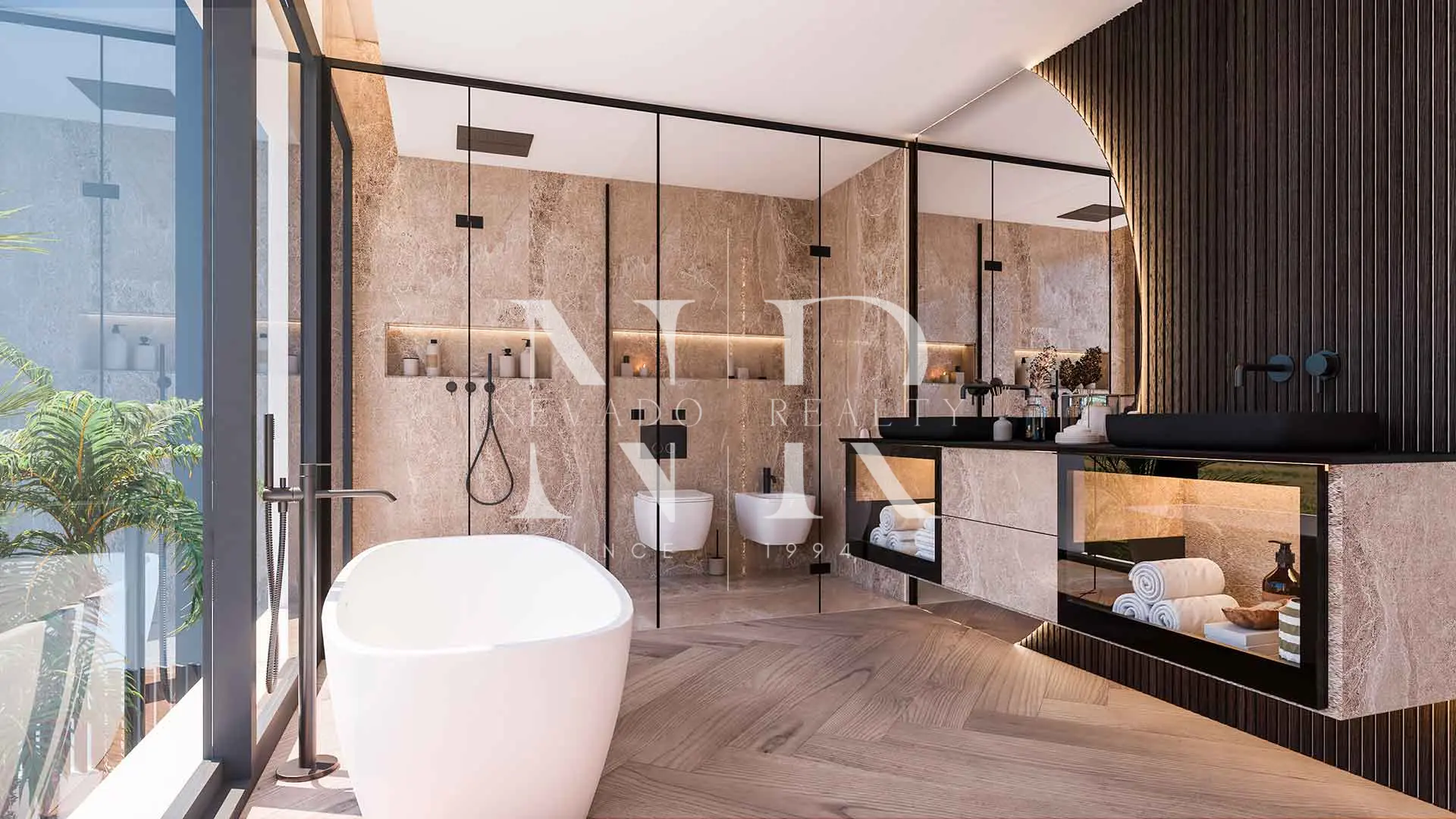 Noura Villas, Villa en Milla de Oro de diseño en venta. Dentro del exclusivo enclave del proyecto Noura, «Moon» se erige como la más imponente de las tres villas, destacando por su amplitud, diseño y armonía con el entorno natural. Esta vivienda de lujo redefine el concepto de espacio y bienestar en la codiciada Milla de Oro de Marbella, a solo minutos de la playa, restaurantes de renombre internacional y los clubes más prestigiosos de la Costa del Sol.