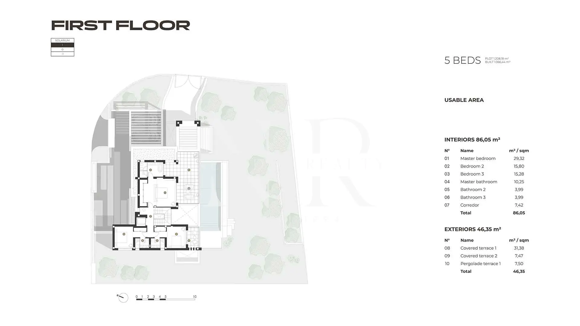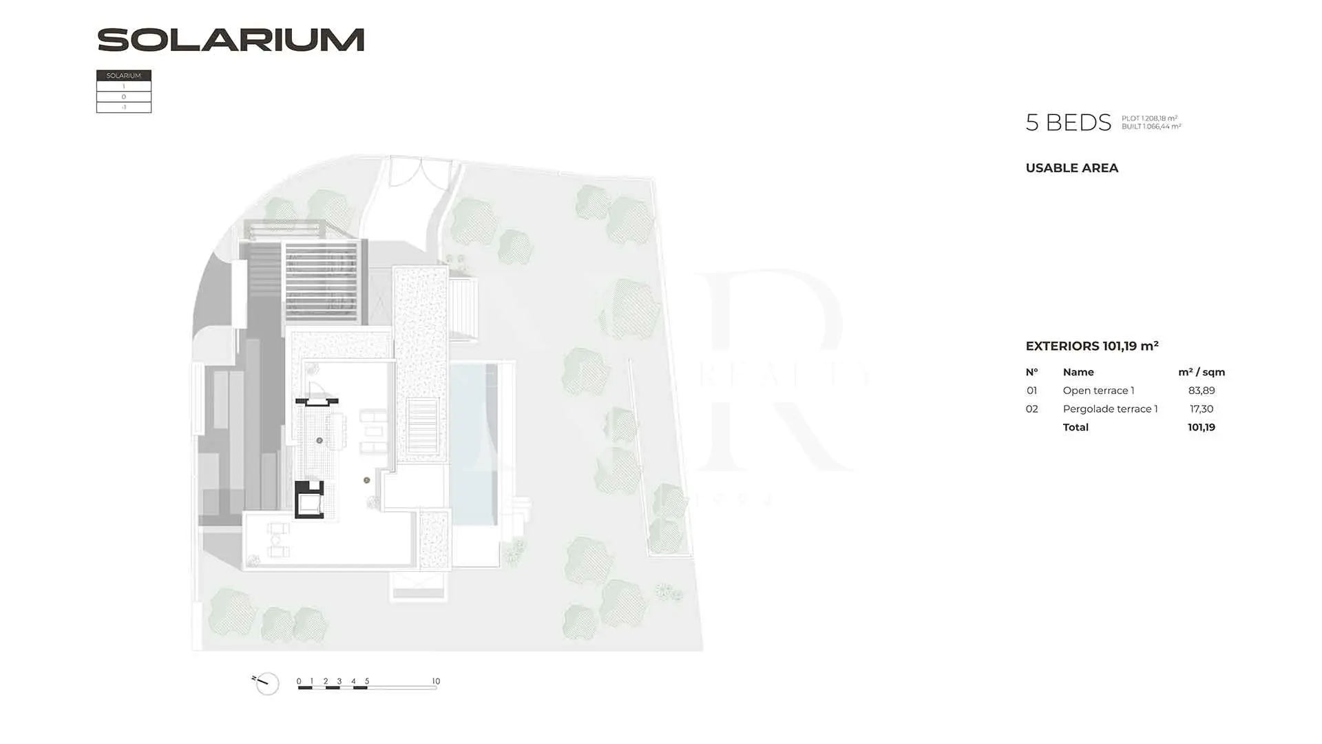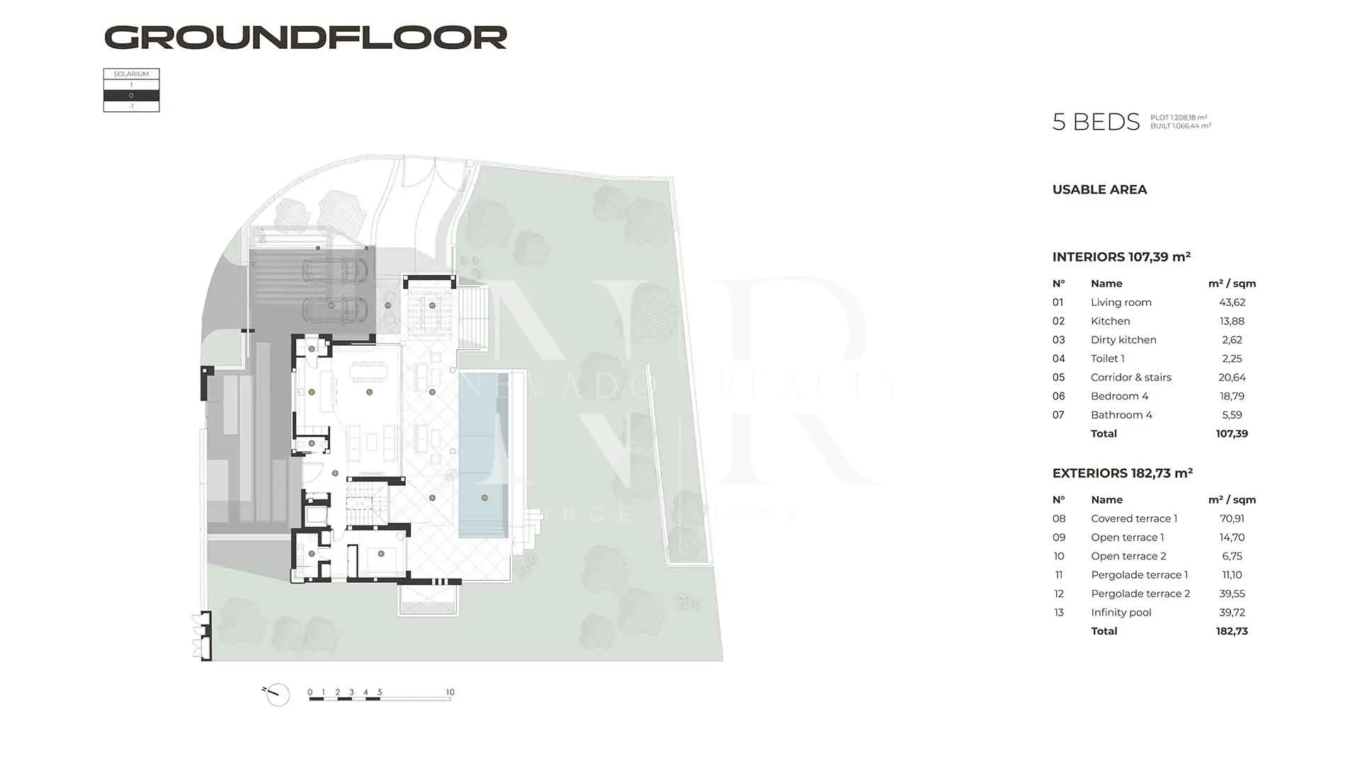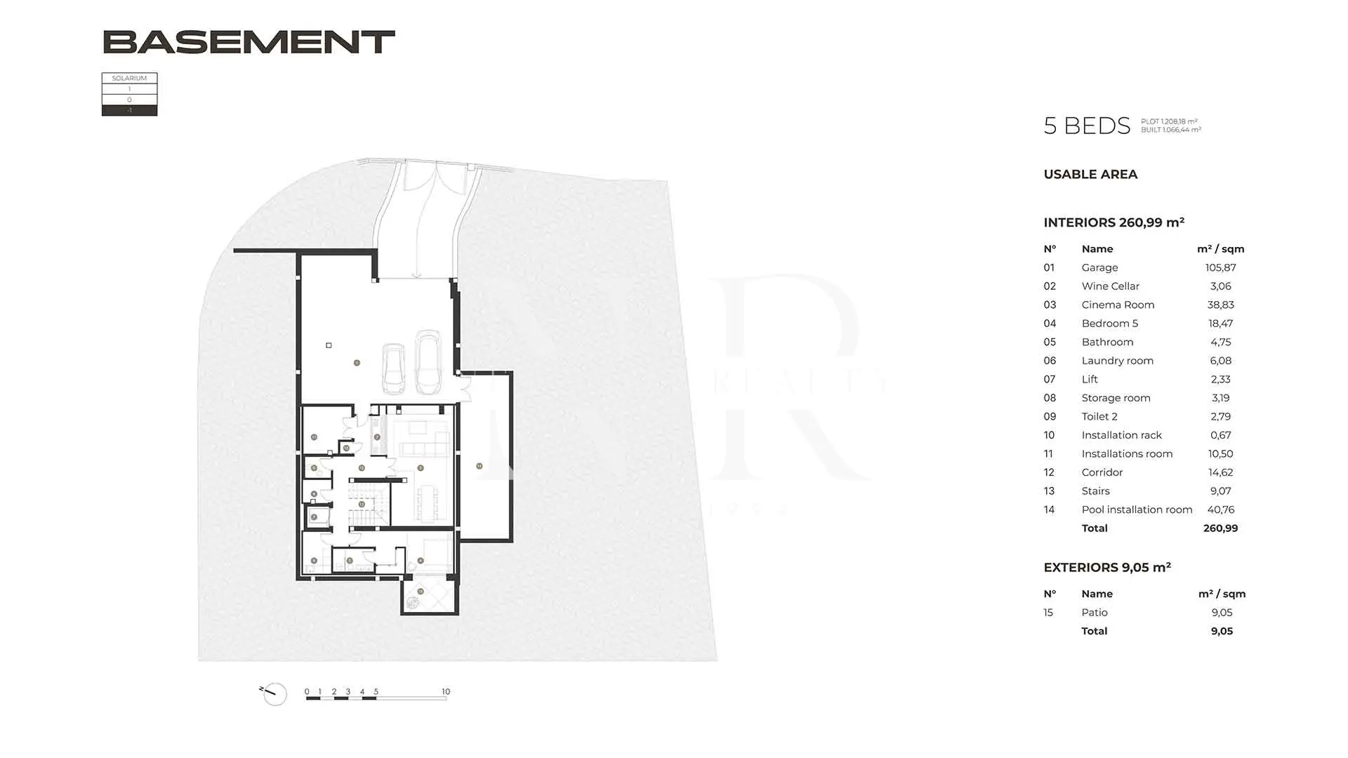 La azotea se convierte en un espacio excepcional, con dos pérgolas sombreadas y preinstalación para barbacoa, ideal para disfrutar del clima mediterráneo durante todo el año. En la planta sótano, la villa ofrece una versátil sala de televisión o entretenimiento, bodega, un quinto dormitorio con baño completo, además de un aseo de cortesía. La entrada de luz natural a través del patio central aporta calidez y ventilación natural al nivel inferior. También se incluyen un garaje privado, lavandería y espacios de almacenamiento, cuidadosamente integrados para mantener orden y funcionalidad.