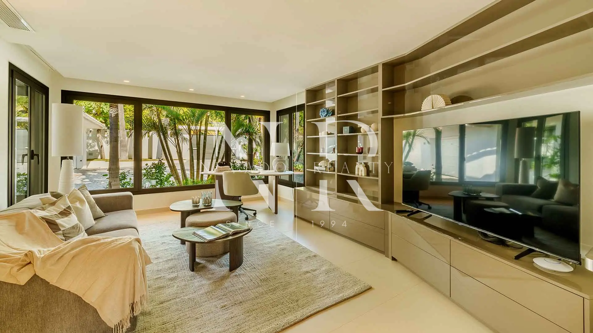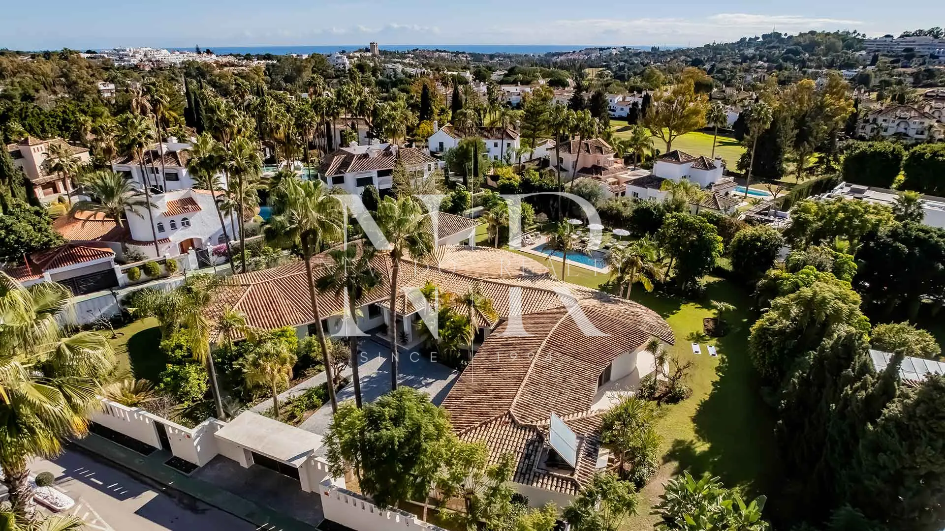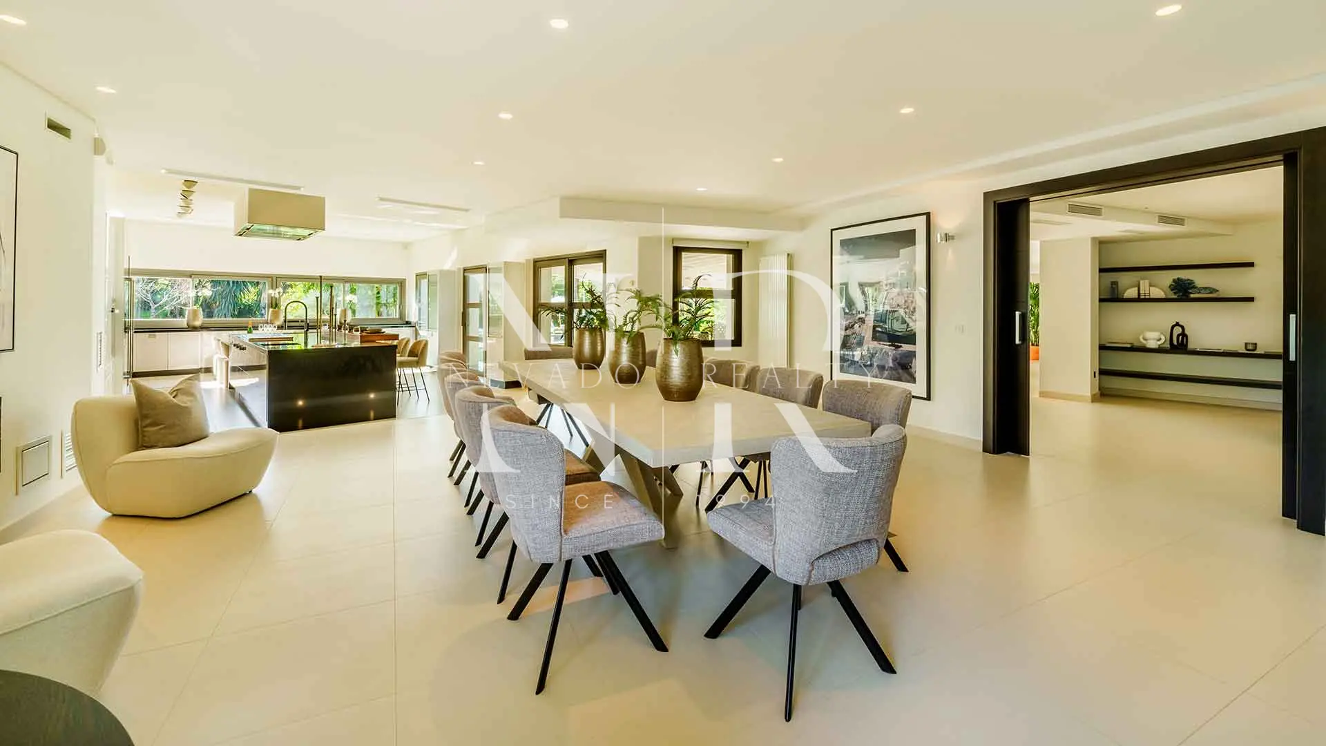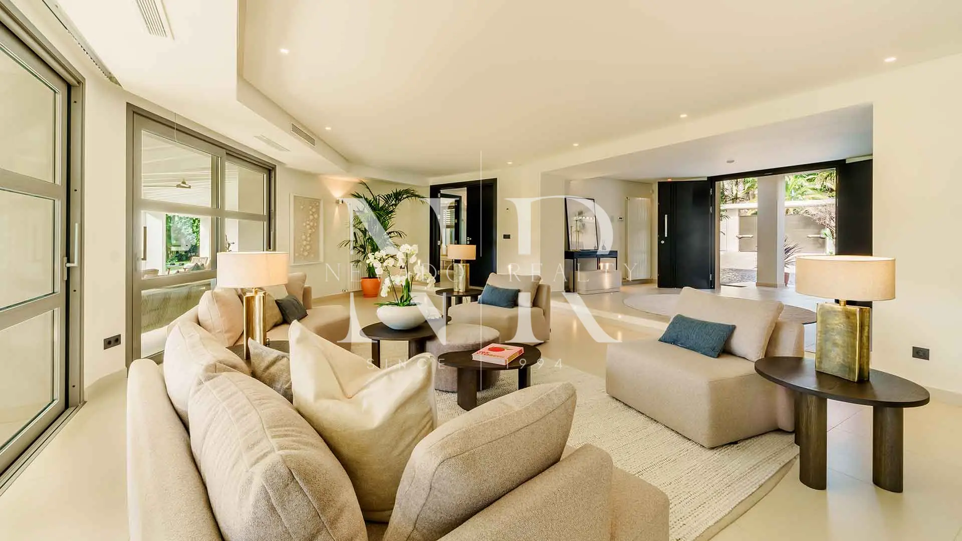 Villa en Urbanización La Cerquilla completamente renovada en venta. Ubicada en este prestigioso enclave de Nueva Andalucía, esta exquisita villa de un solo nivel ofrece una rara mezcla de sofisticación y tranquilidad. Ubicada en una generosa parcela llana de 3.062 m², la propiedad está rodeada por un jardín meticulosamente cuidado, con ficus maduros, altísimas palmeras, vibrantes jacarandas y exóticas especies tropicales.
