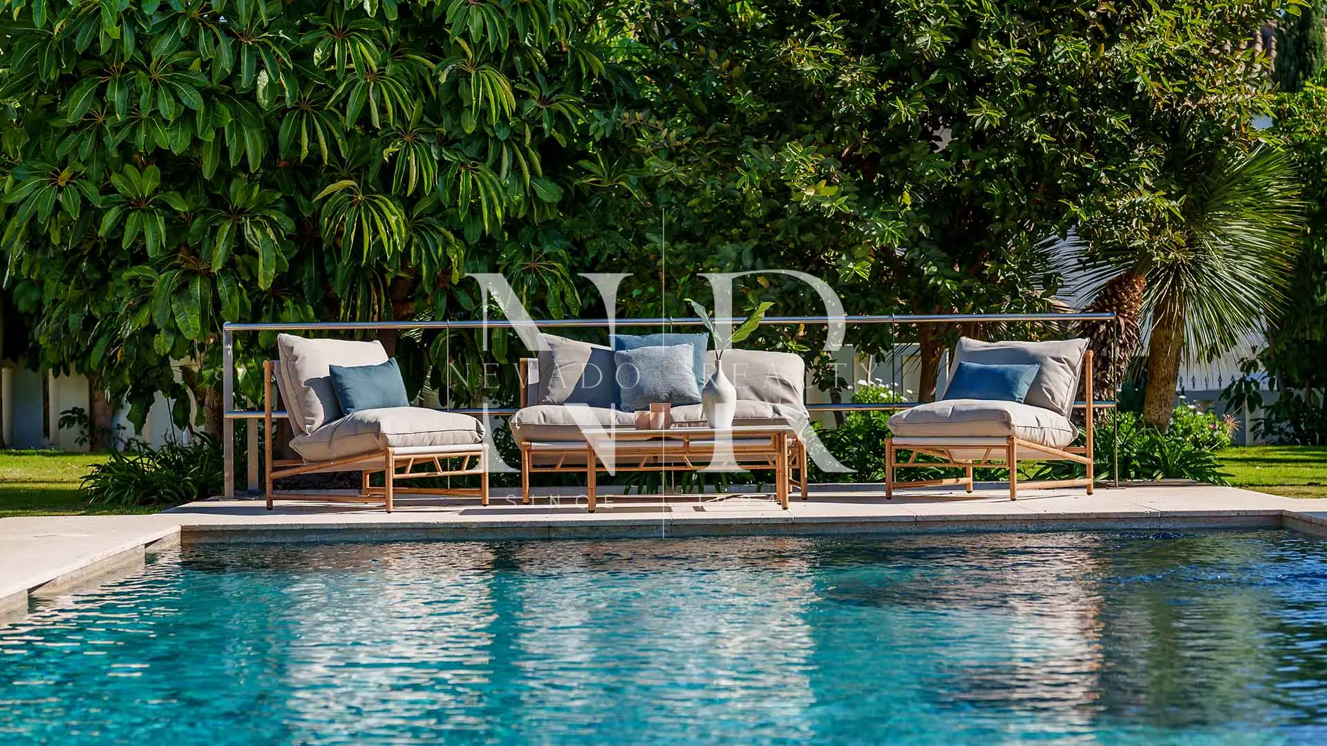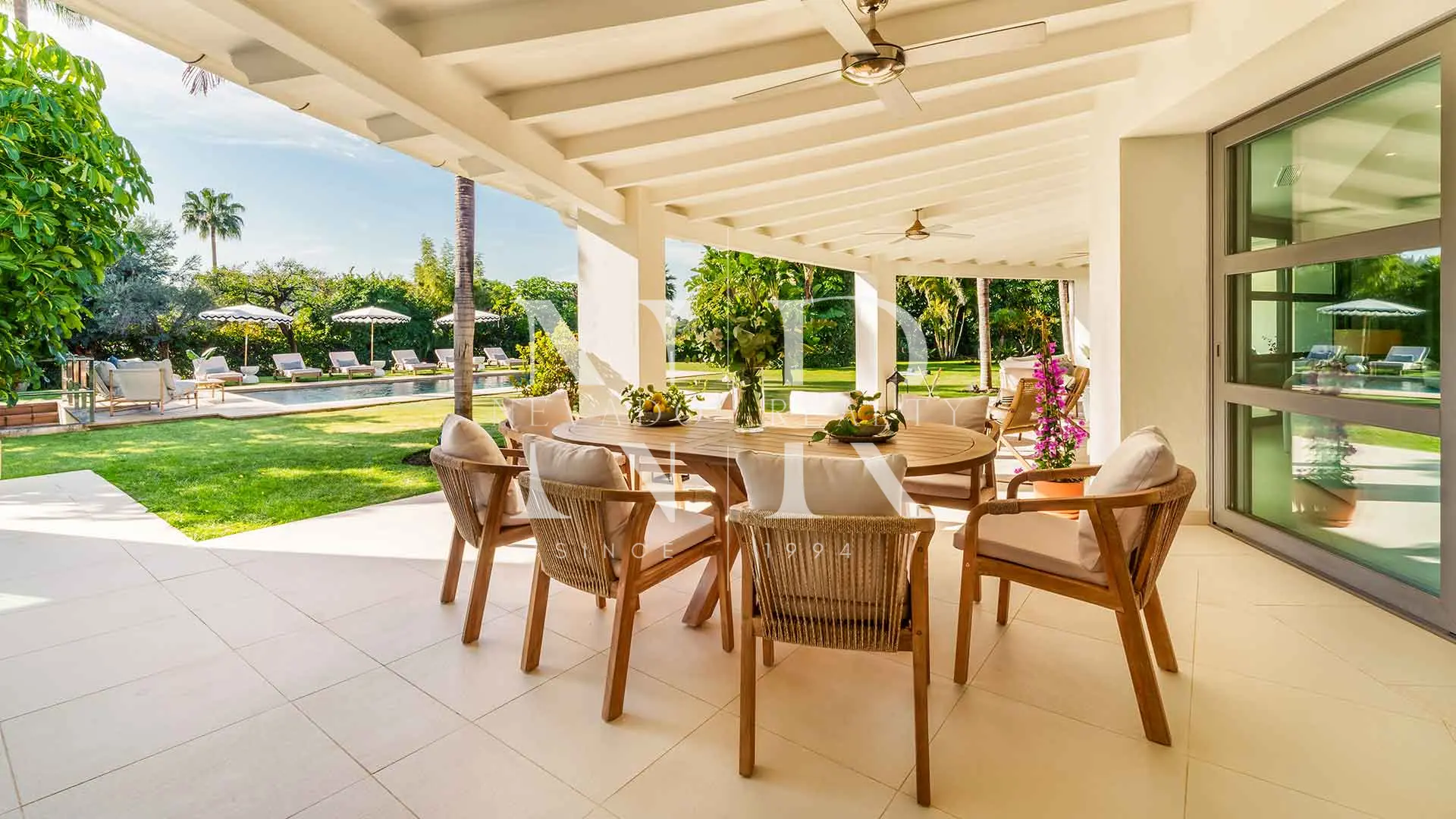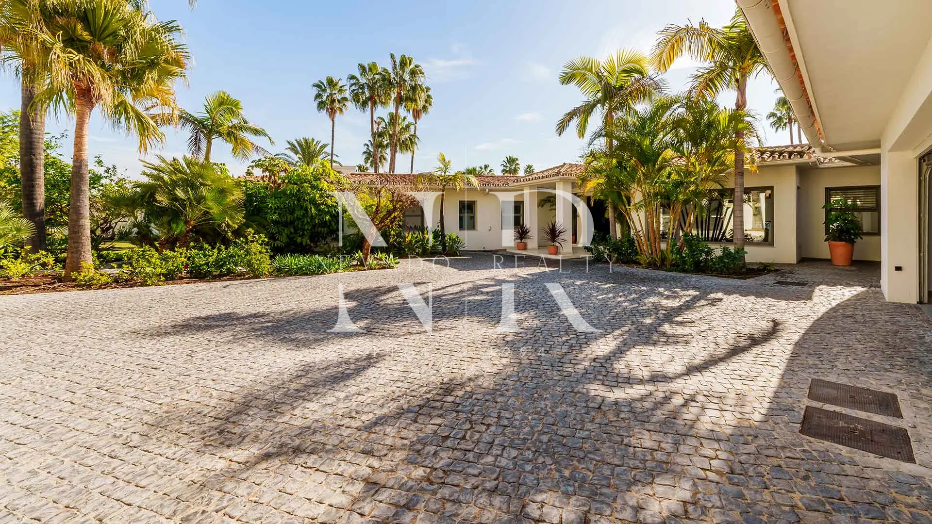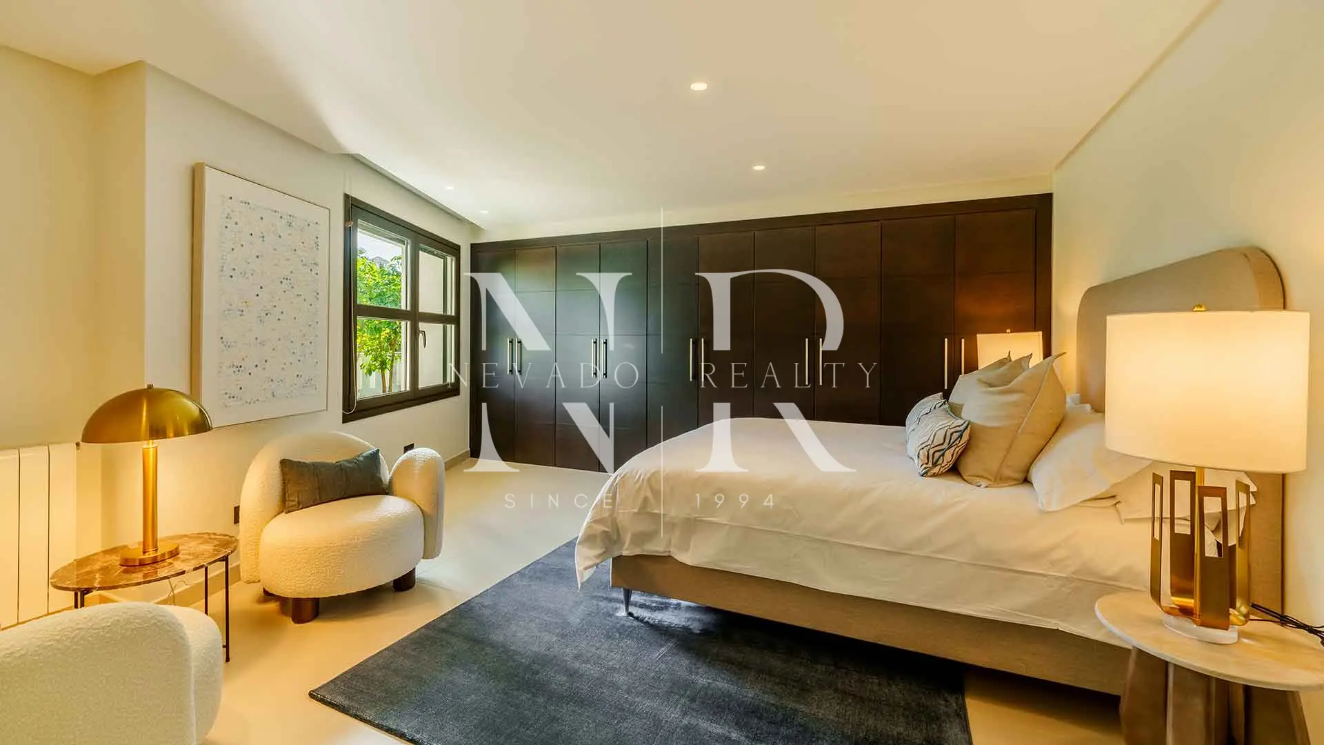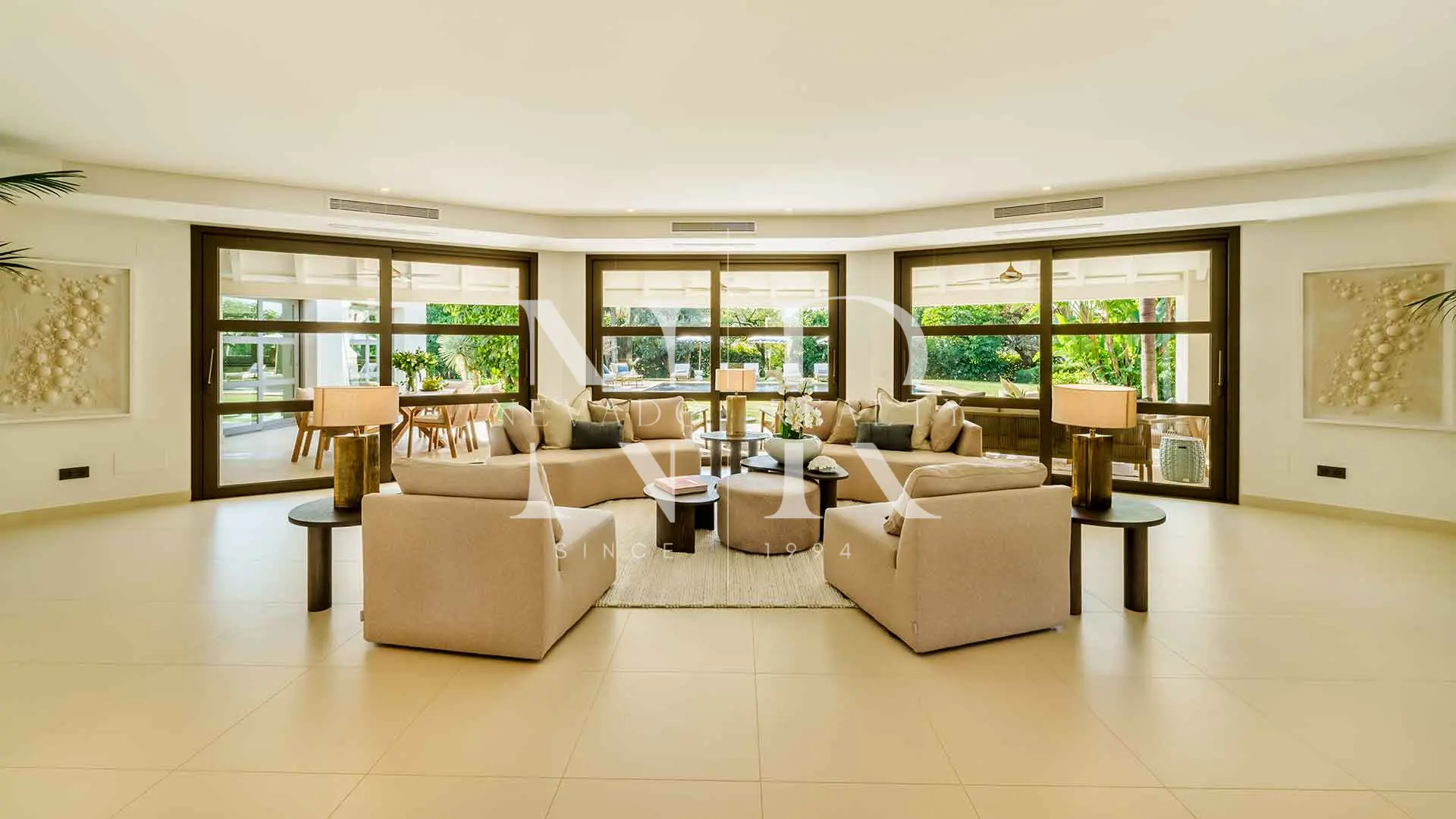 Villa en Urbanización La Cerquilla completamente renovada en venta. Ubicada en este prestigioso enclave de Nueva Andalucía, esta exquisita villa de un solo nivel ofrece una rara mezcla de sofisticación y tranquilidad. Ubicada en una generosa parcela llana de 3.062 m², la propiedad está rodeada por un jardín meticulosamente cuidado, con ficus maduros, altísimas palmeras, vibrantes jacarandas y exóticas especies tropicales.