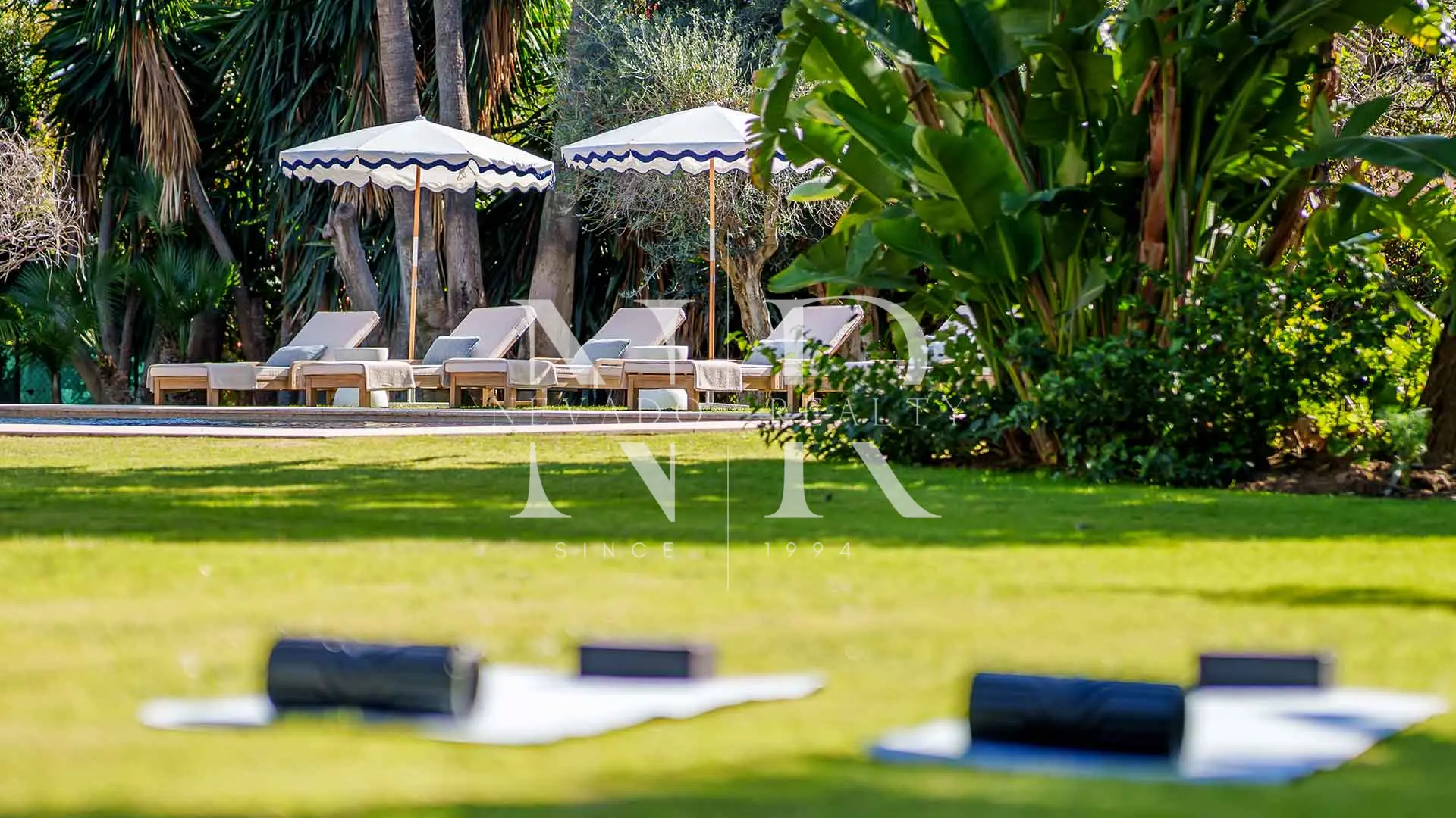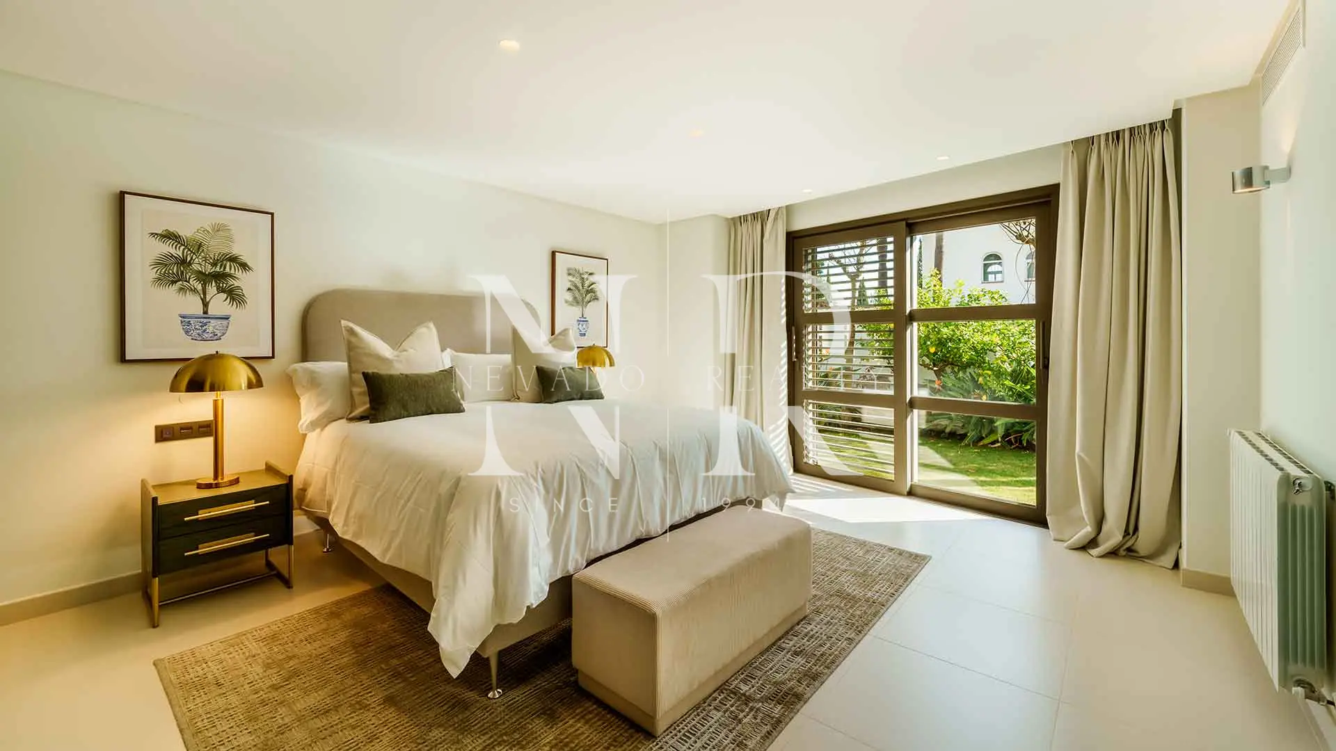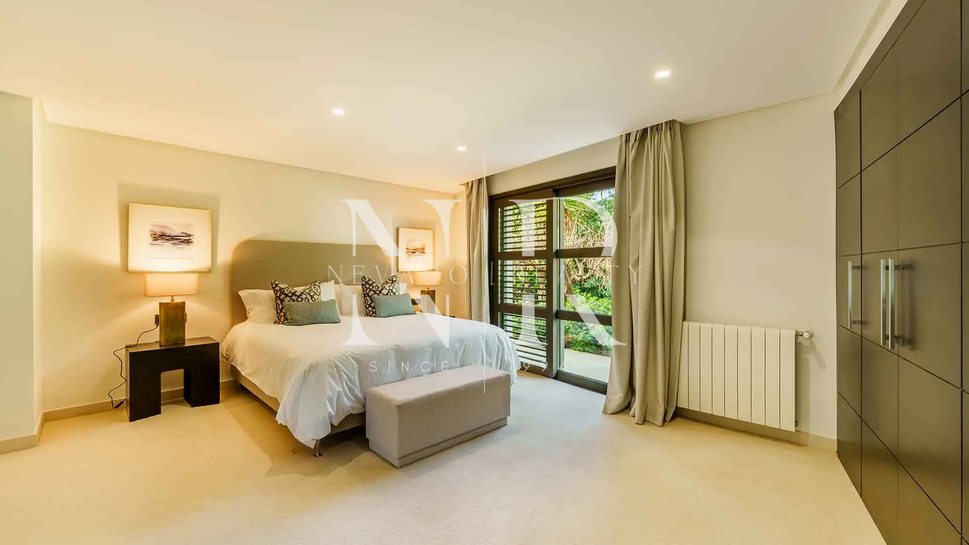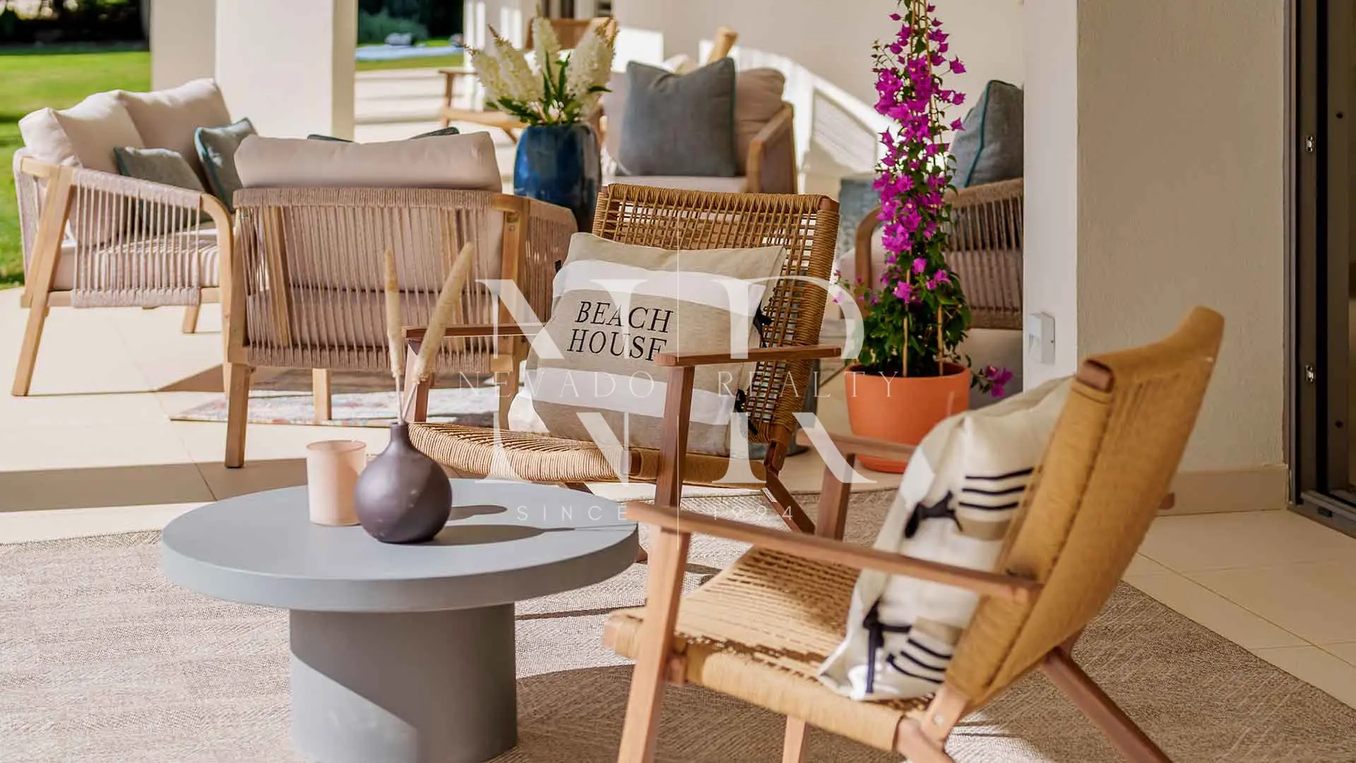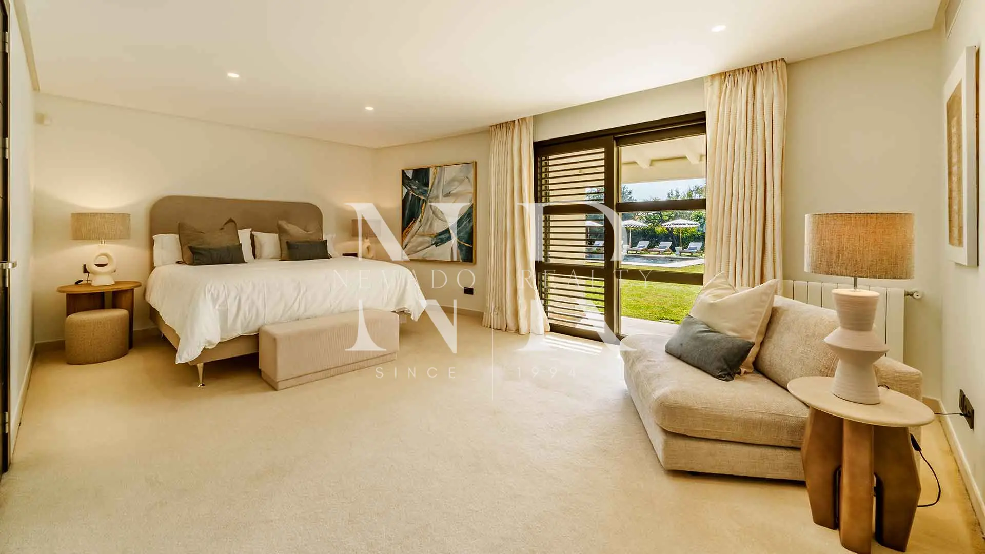 Villa en Urbanización La Cerquilla completamente renovada en venta. Ubicada en este prestigioso enclave de Nueva Andalucía, esta exquisita villa de un solo nivel ofrece una rara mezcla de sofisticación y tranquilidad. Ubicada en una generosa parcela llana de 3.062 m², la propiedad está rodeada por un jardín meticulosamente cuidado, con ficus maduros, altísimas palmeras, vibrantes jacarandas y exóticas especies tropicales.