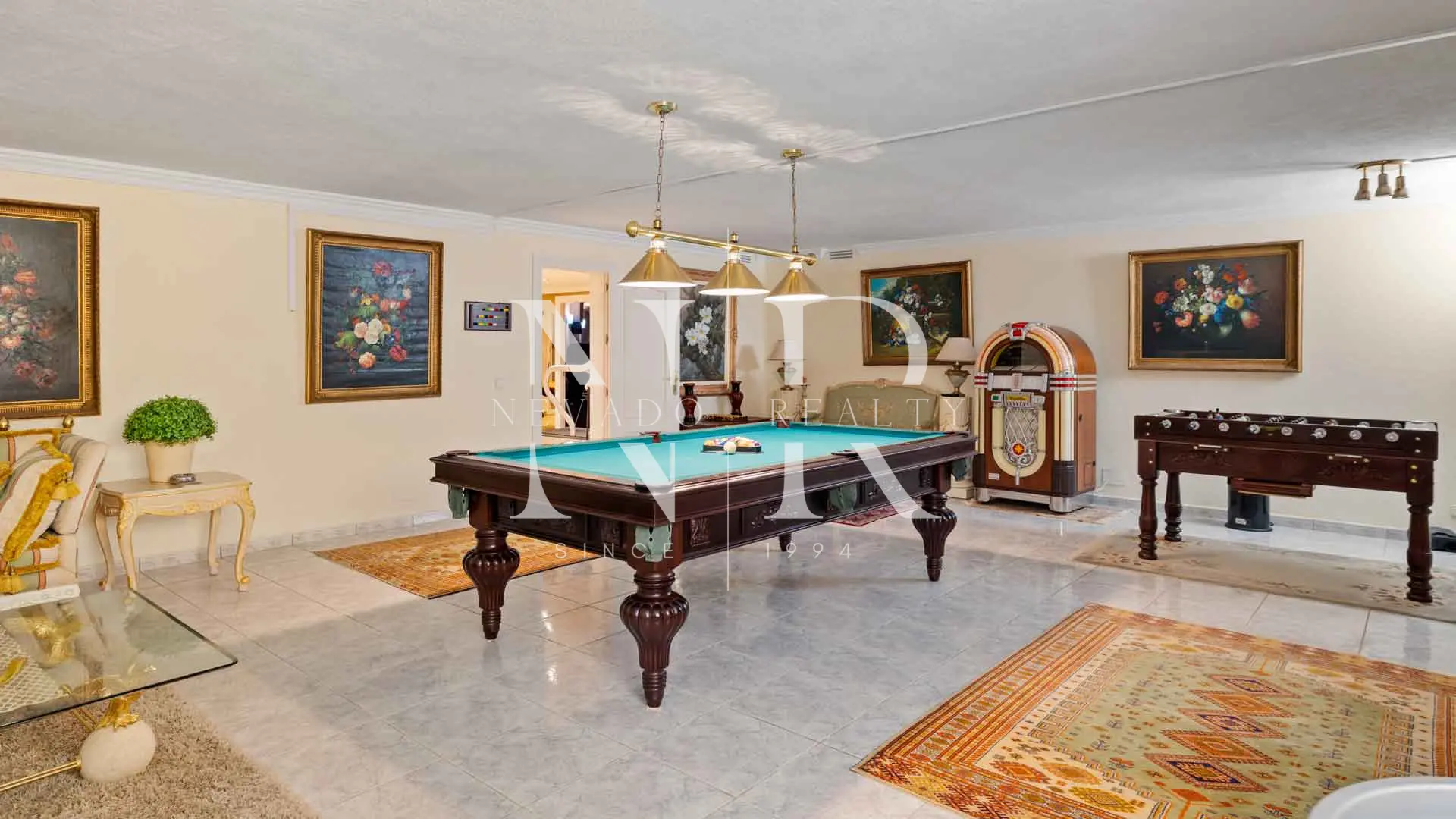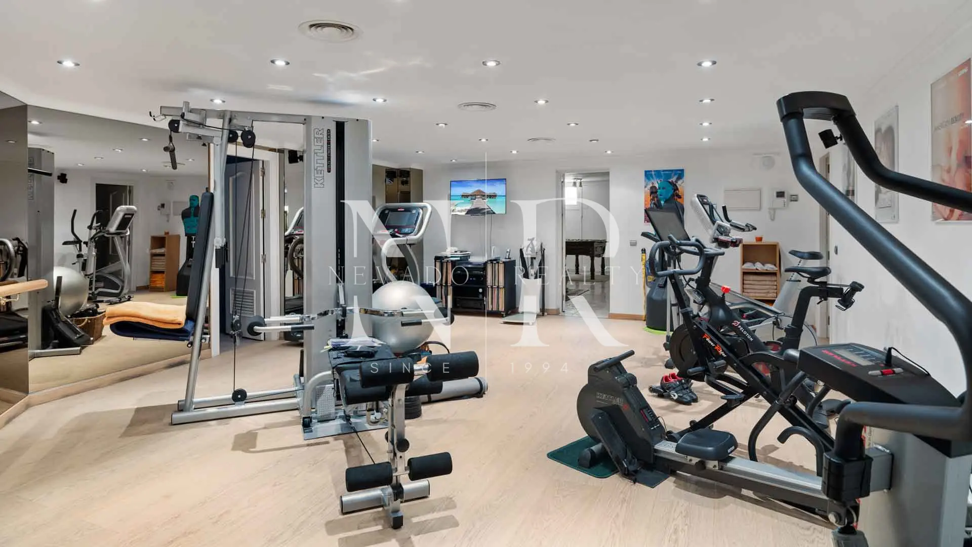 En el nivel inferior, la villa despliega un espectacular espacio de ocio con sala de entretenimiento, bodega climatizada, cine privado y gimnasio, además de un garaje con capacidad para hasta seis vehículos y amplias zonas de almacenamiento.