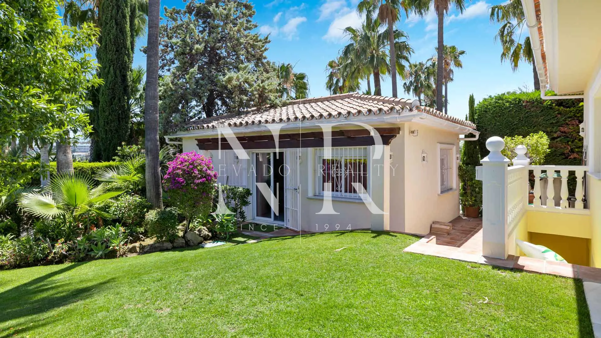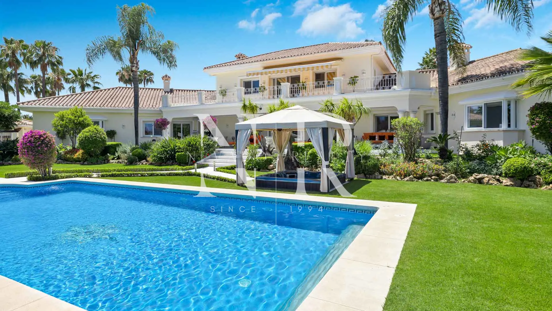 Villa en La Cerquilla en venta. Enclavada en la prestigiosa y tranquila zona residencial de La Cerquilla, en Nueva Andalucía, se presenta esta exclusiva villa que combina diseño contemporáneo con el encanto clásico andaluz. Orientada al sur, esta propiedad ofrece un entorno de absoluta privacidad, a solo unos minutos de los mejores servicios de Marbella, Puerto Banús y los afamados campos de golf de Las Brisas y Los Naranjos.