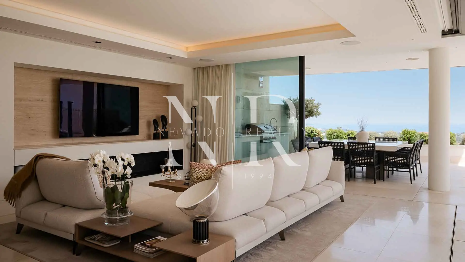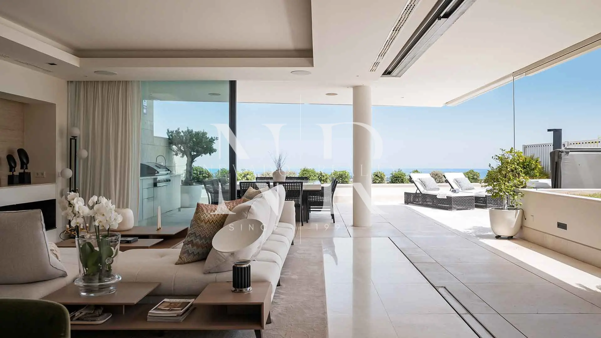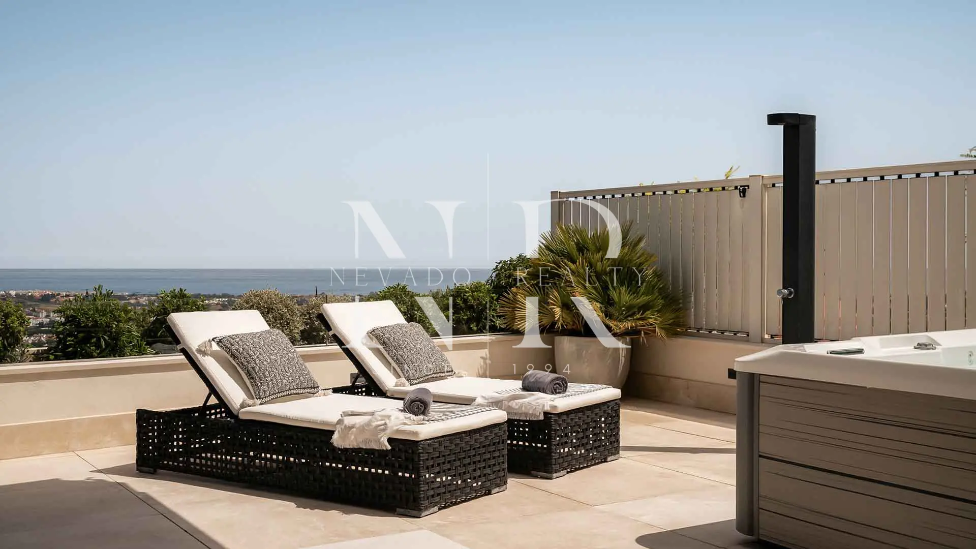 • Efecto “wow” inmediato: salón abierto a una terraza en L con jacuzzi, ducha exterior y cocina de verano, fusionando interior y exterior para disfrutar el estilo de vida mediterráneo.