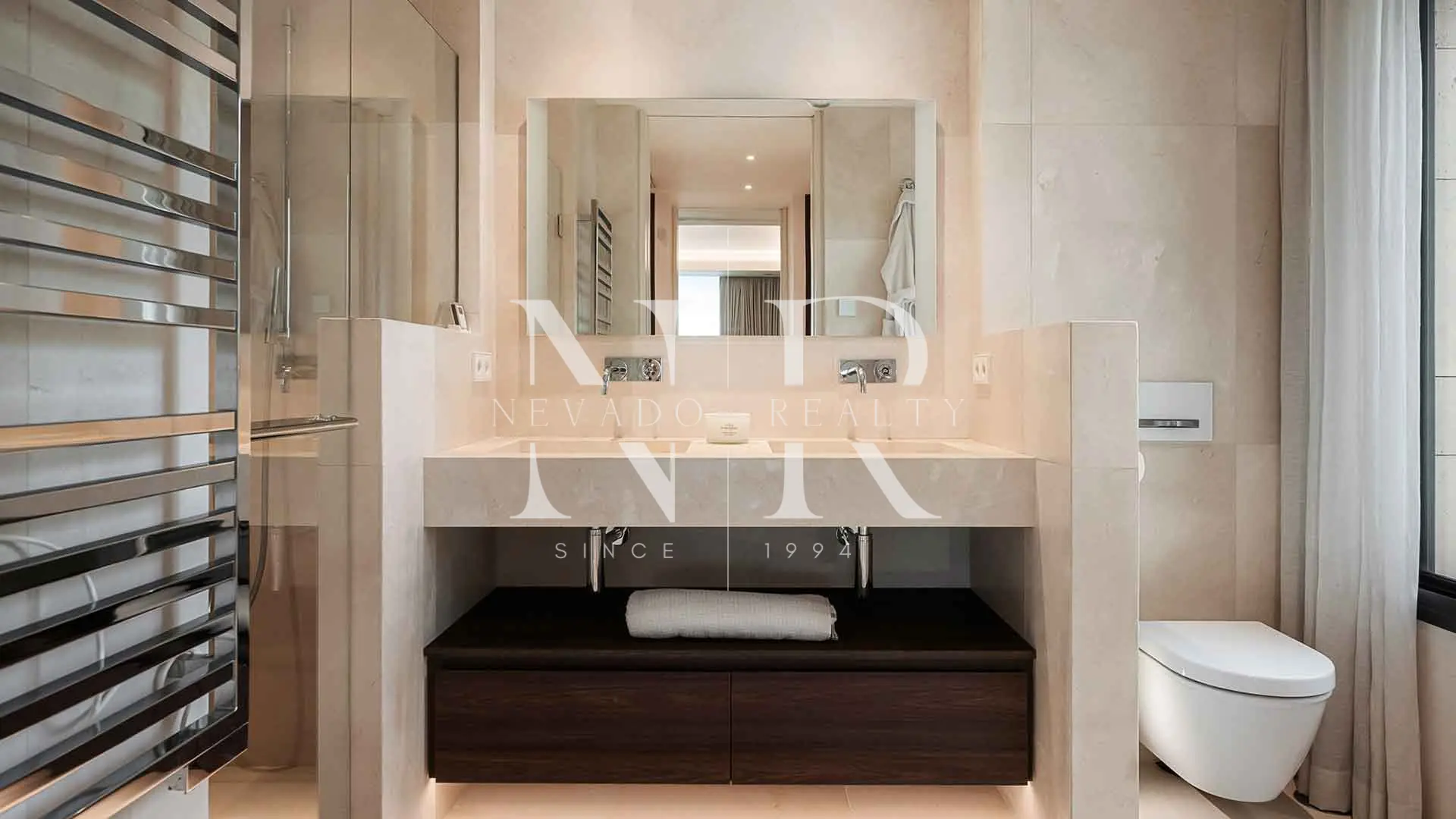 En el exterior, 136 m² entre terrazas cubiertas y descubiertas enmarcan el Mediterráneo y la montaña, creando múltiples ambientes: comedor, relax y solárium. La vivienda incluye dos plazas de garaje, trastero y buggy eléctrico registrado con parking privado, todo un guiño a los amantes del golf.