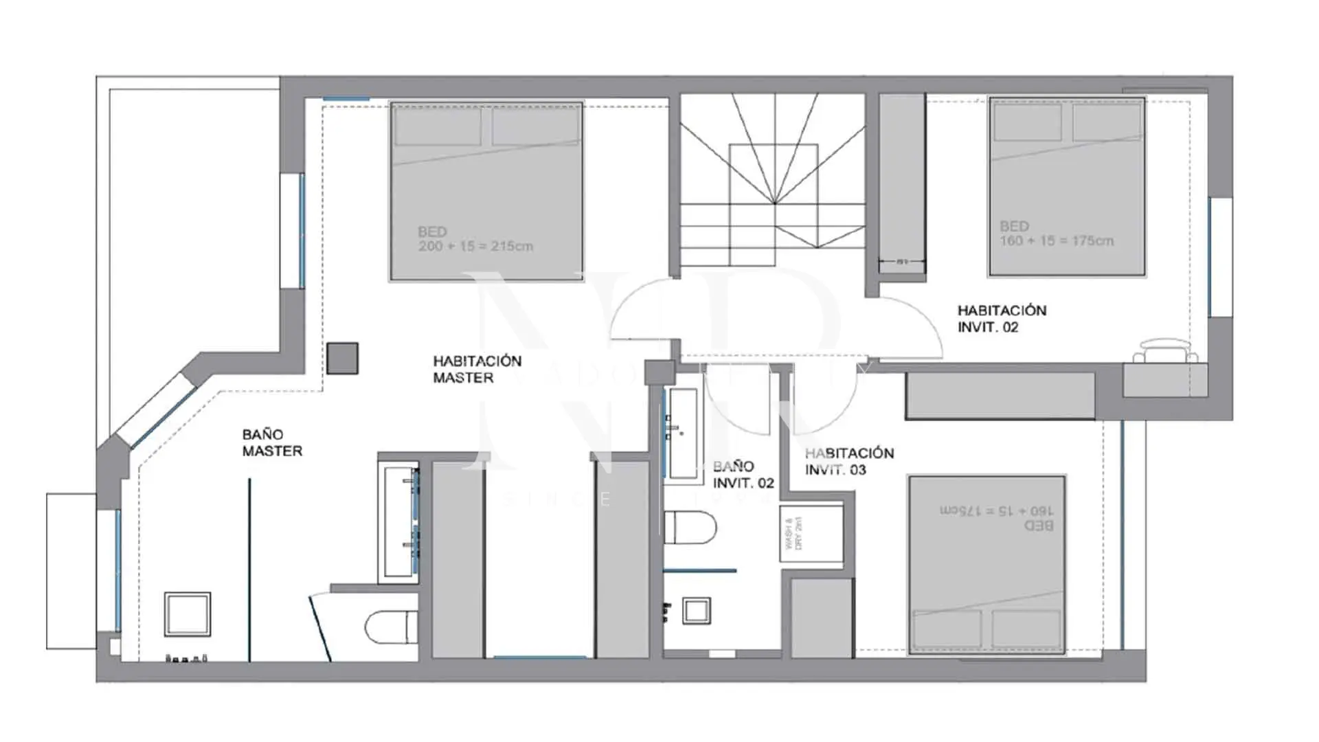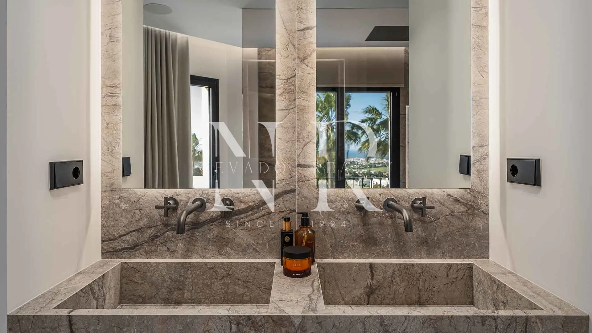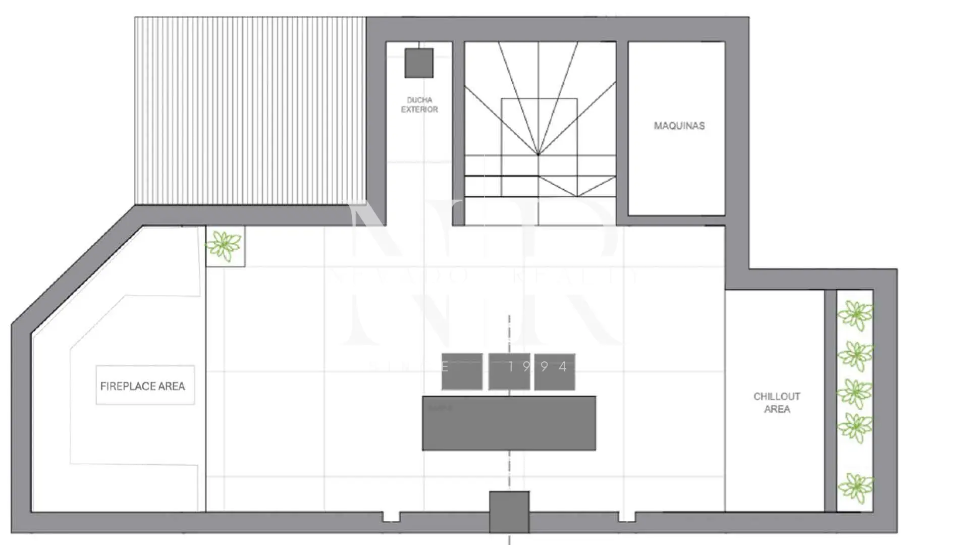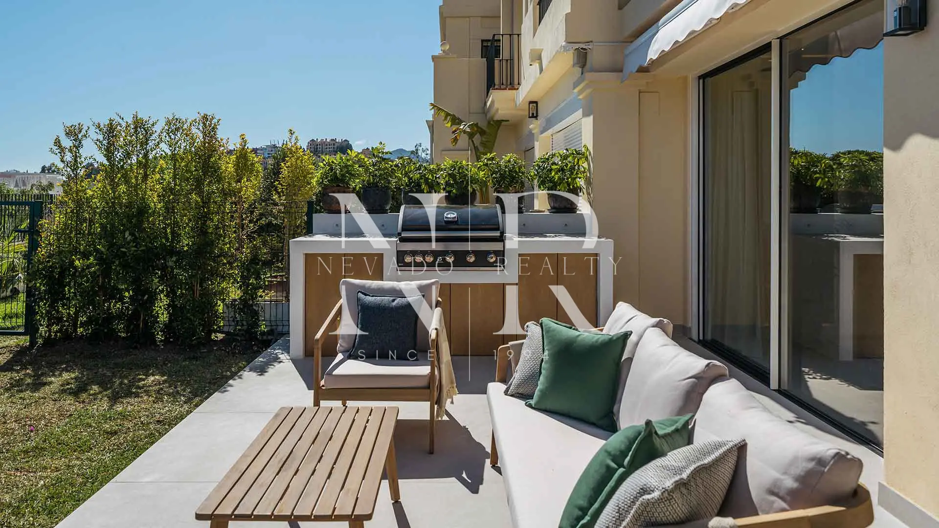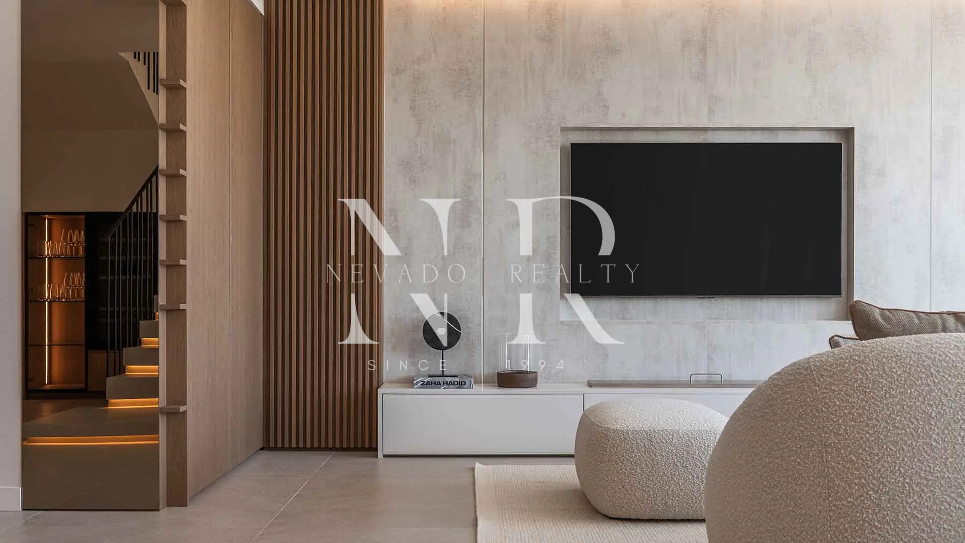 En la primera planta, el dormitorio principal ofrece vistas al mar, vestidor y baño en suite. Dos dormitorios adicionales pueden utilizarse como espacios para invitados o zonas de trabajo. El segundo baño incluye lavadora y secadora, inteligentemente ocultas para mantener la estética limpia. Sin embargo, el verdadero protagonista es el solárium con salón al aire libre, chimenea exterior, ducha, zona de bar y tumbonas, todo ello acompañado de vistas panorámicas al Mediterráneo y a la montaña de La Concha, ideal para disfrutar de atardeceres inolvidables.