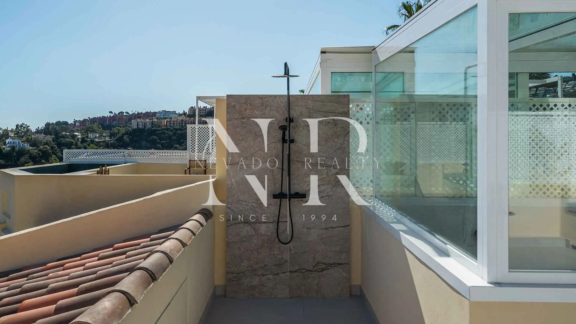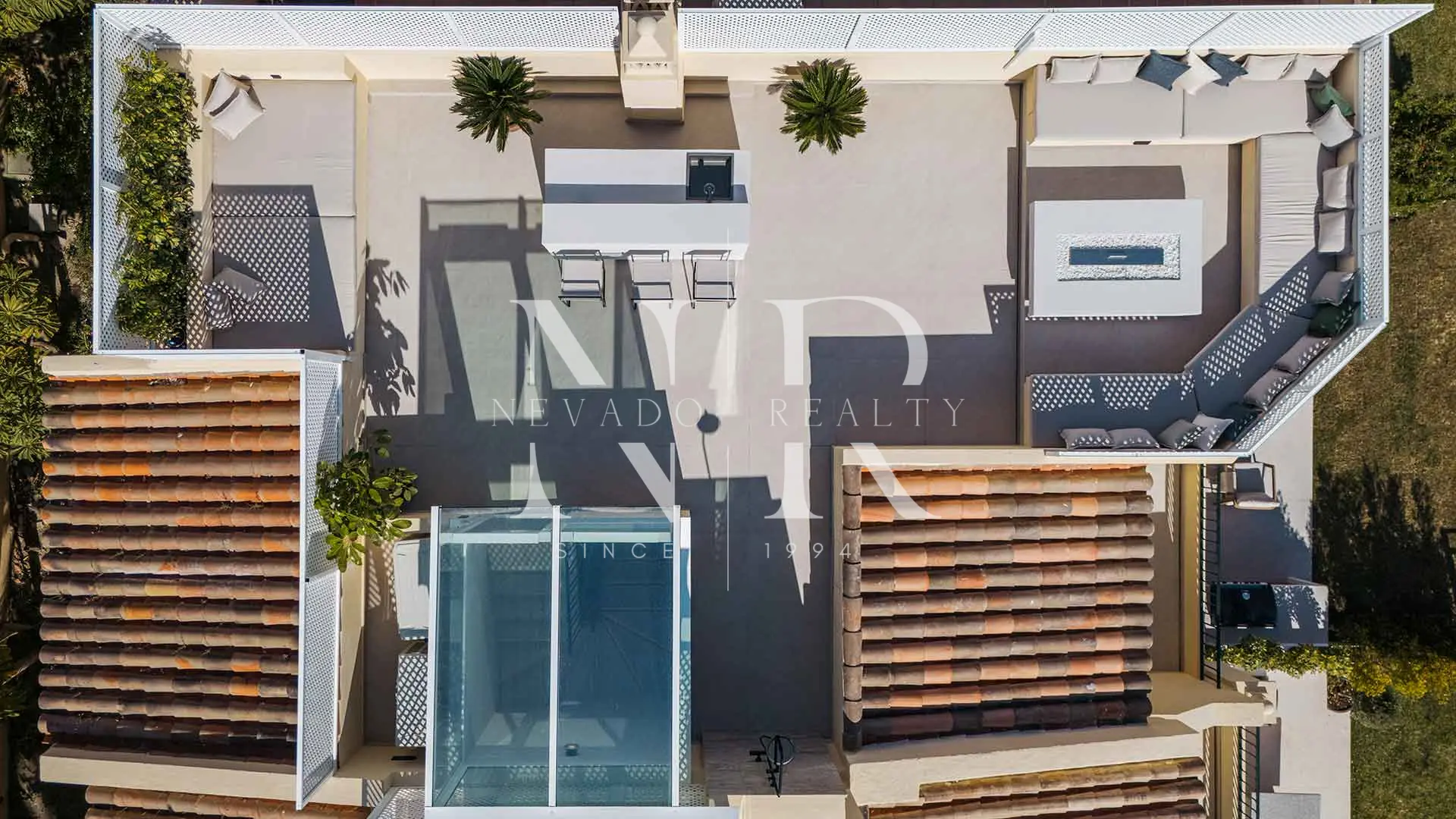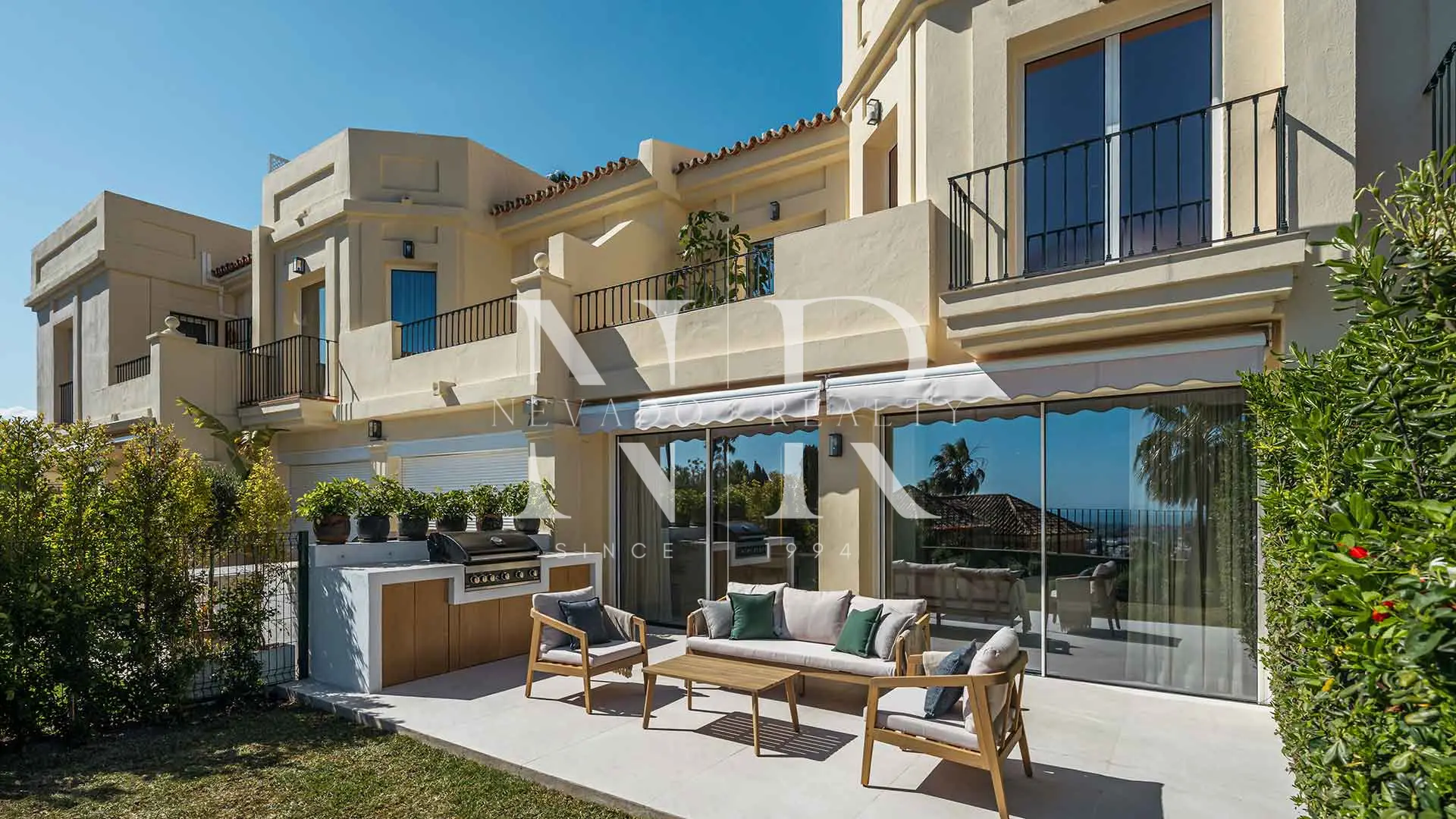 Adosada en Urbanización La Quinta Hills completamente renovada en venta. Enclavada en las colinas de La Quinta, dentro del prestigioso municipio de Benahavís, esta adosada representa una fusión entre la estética escandinava y la esencia mediterránea. Esta casa adosada ha sido completamente renovada en 2024 para ofrecer un estilo de vida contemporáneo, funcional y lleno de confort. Con 212 m² construidos, incluyendo un espectacular solárium de 49 m², esta propiedad destaca por su diseño limpio, espacios bañados en luz natural y materiales cuidadosamente seleccionados.