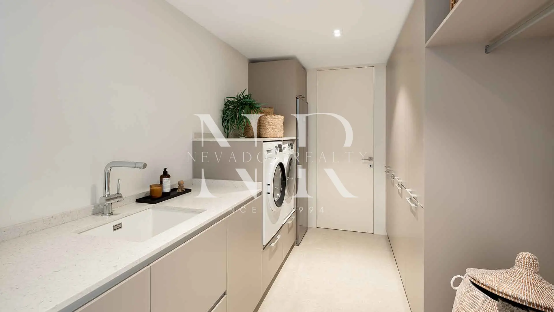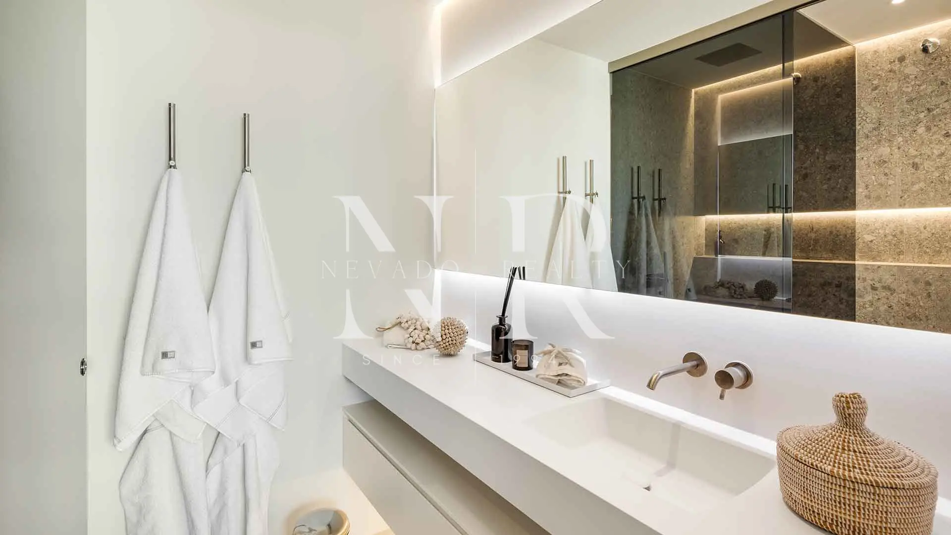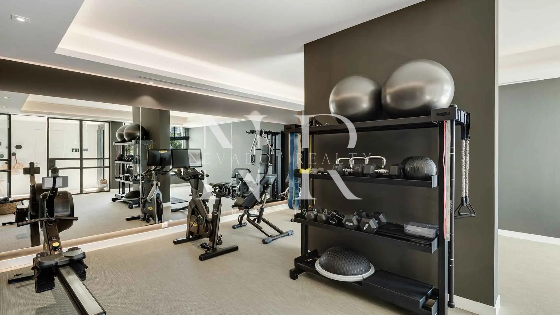 La villa cuenta con seis dormitorios con baño en suite, que garantizan la privacidad y el confort de residentes e invitados. El nivel inferior ofrece un gimnasio totalmente equipado, una sala de cine, alojamiento adicional para invitados y un espacioso garaje. Un ascensor que conecta todas las plantas mejora la accesibilidad y la comodidad.