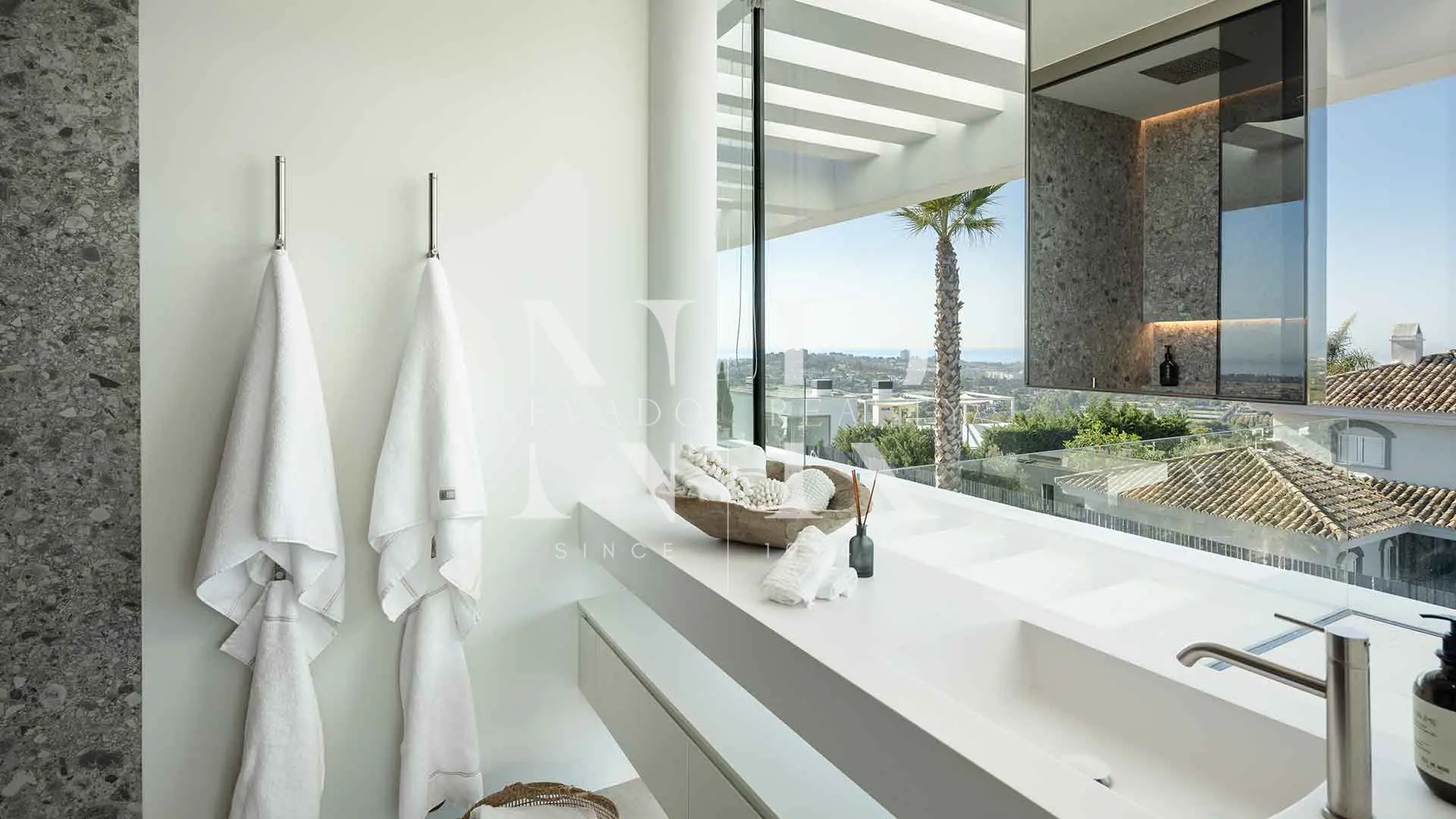 Villa en La Quinta con vistas panorámicas al mar en venta. Situada en el prestigioso enclave de La Quinta, esta villa es una obra maestra contemporánea construida en 2021. Su orientación sur permite disfrutar de impresionantes vistas, desde la montaña de La Concha hasta el mar Mediterráneo y Gibraltar.