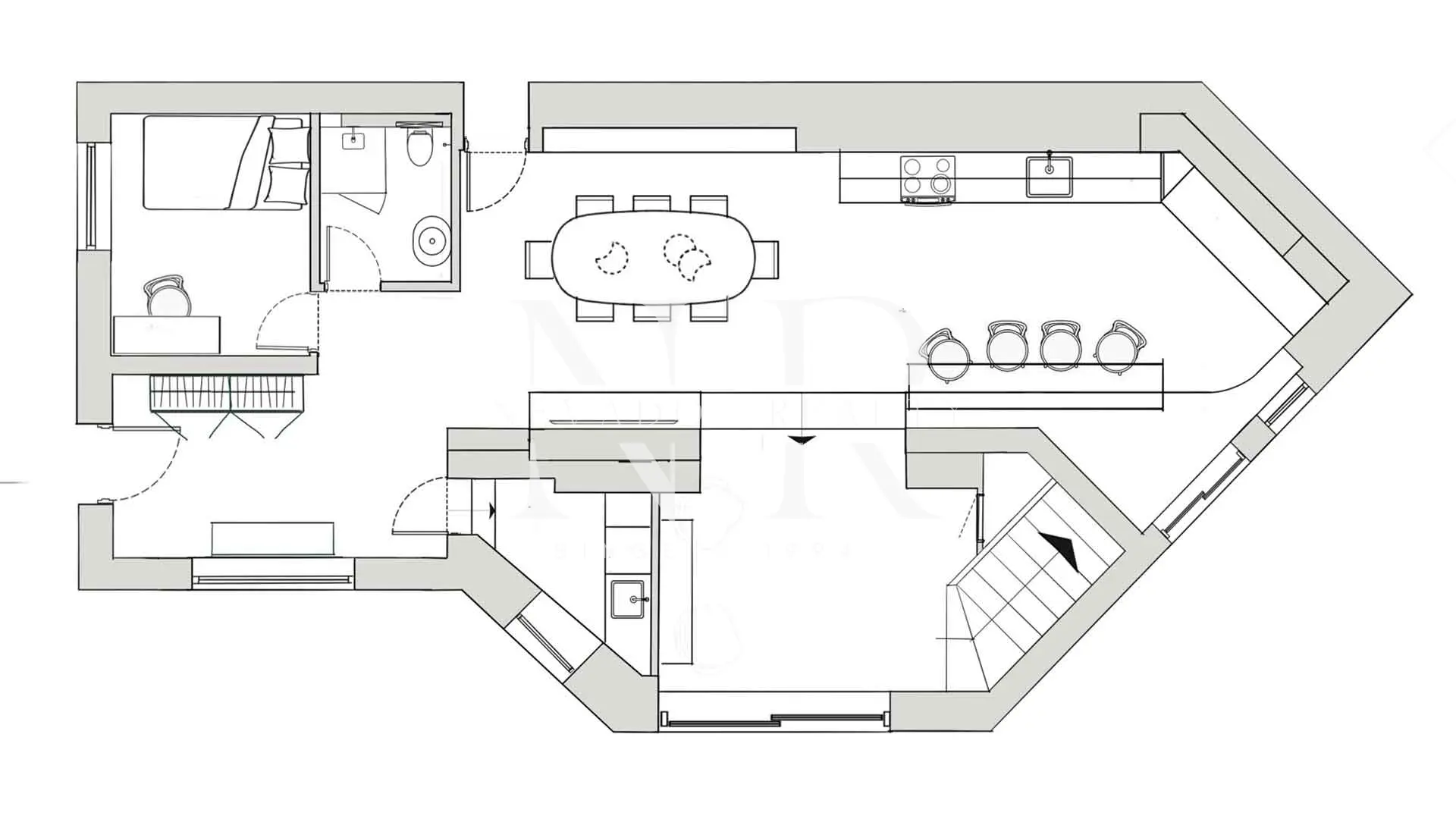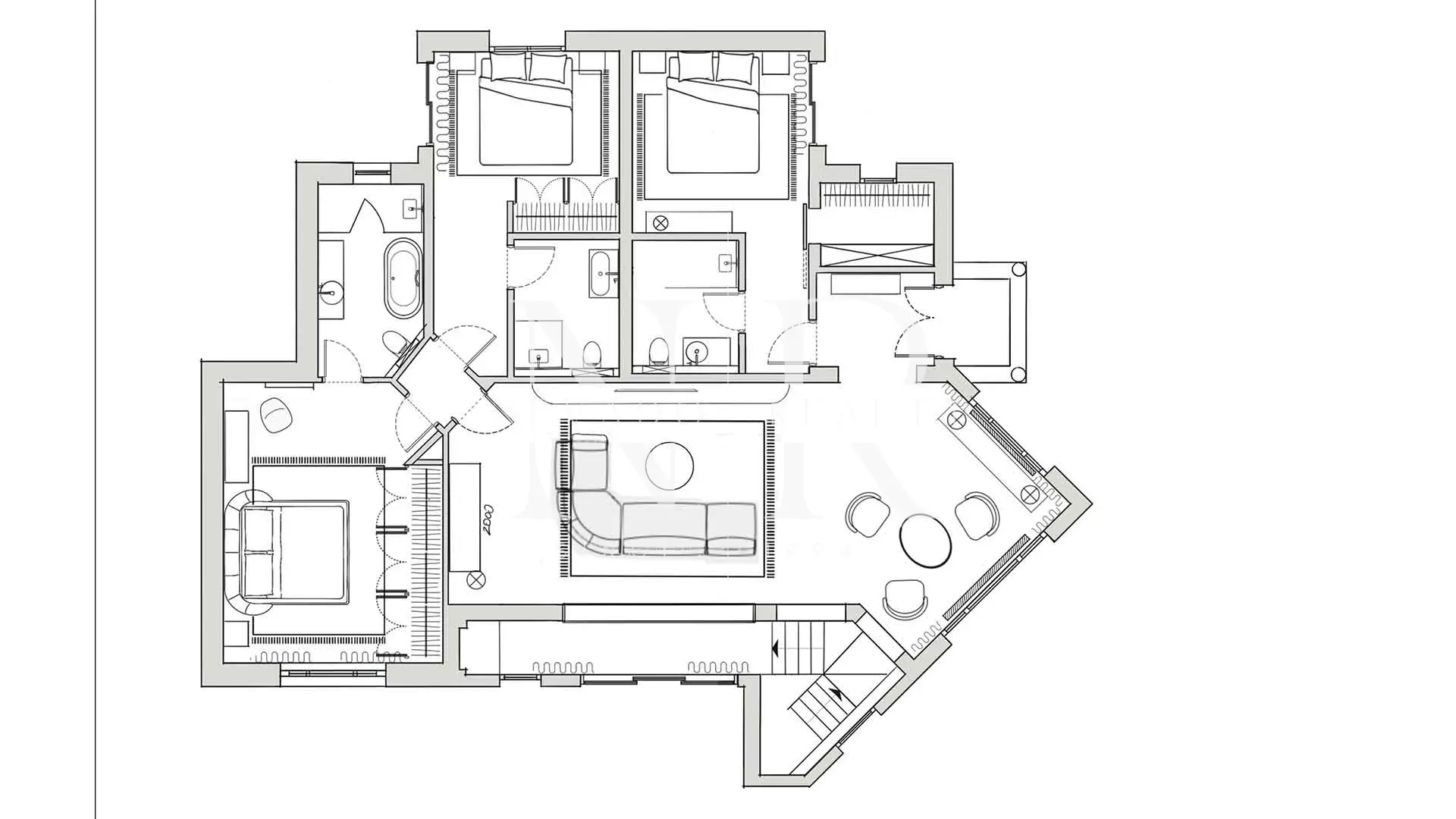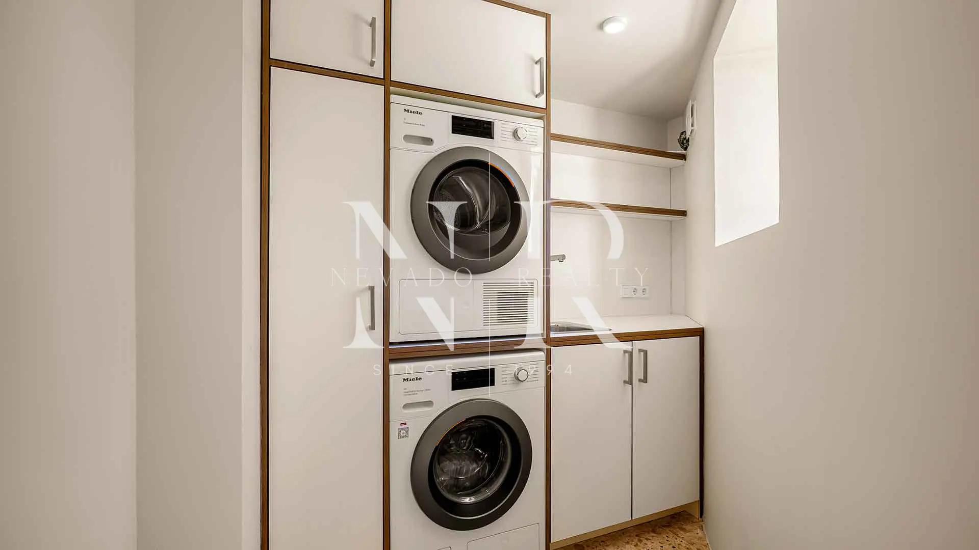 Esta vivienda ha sido diseñada para ofrecer equilibrio entre confort, estilo y funcionalidad. Los materiales cuidadosamente seleccionados, como el travertino en tonos crema y rojo, el parquet con certificación ecológica o la carpintería en madera ámbar, aportan calidez, elegancia y coherencia estética en cada estancia. El núcleo de la vivienda es una cocina de diseño italiano Ernesto Meda equipada con electrodomésticos Miele y grifería Fantini, que conecta de manera fluida con el comedor, el salón y la terraza exterior, todo ello enmarcado por puertas correderas que se integran perfectamente en la arquitectura.