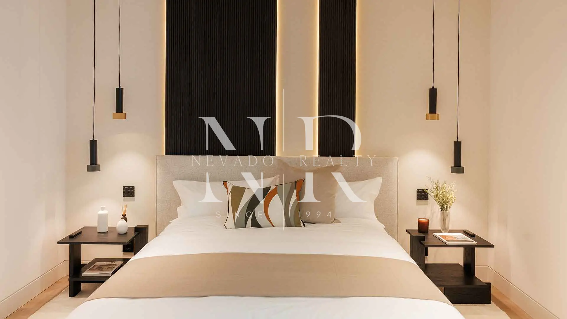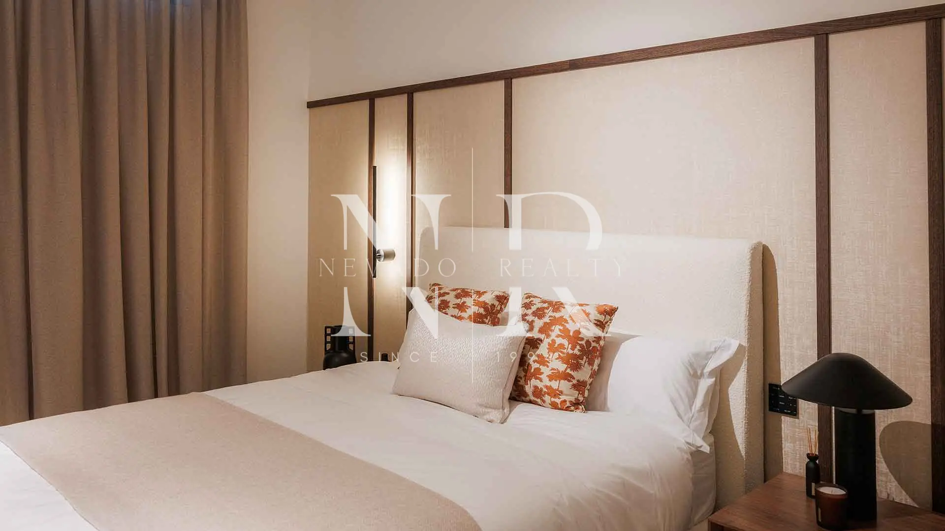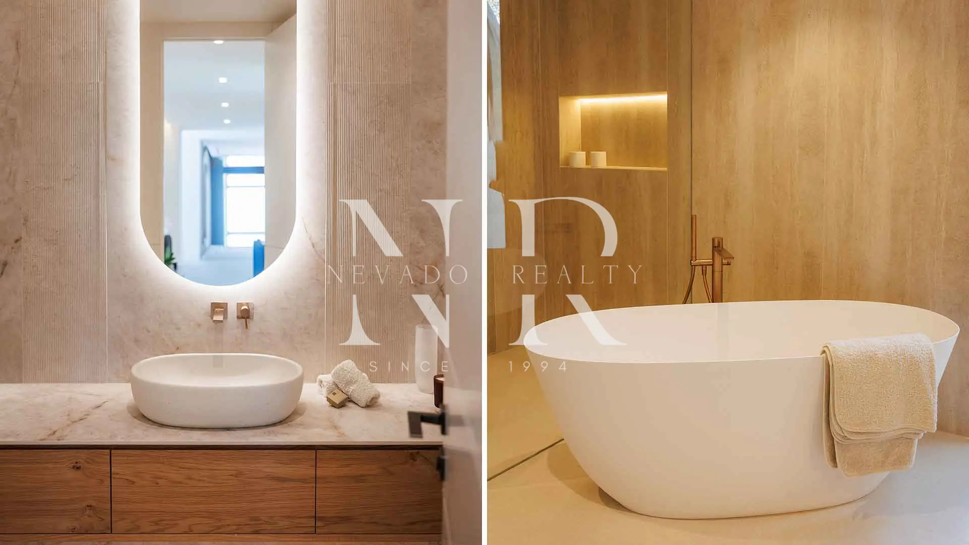 • Acabados premium: gres porcelánico rectificado de gran formato en zonas comunes y baños; en dormitorios, tarima de madera natural de lama ancha.