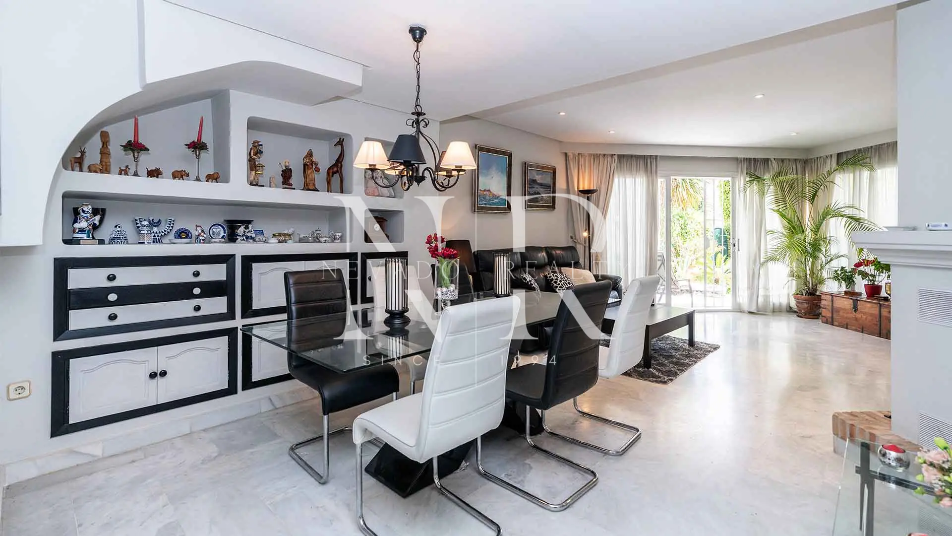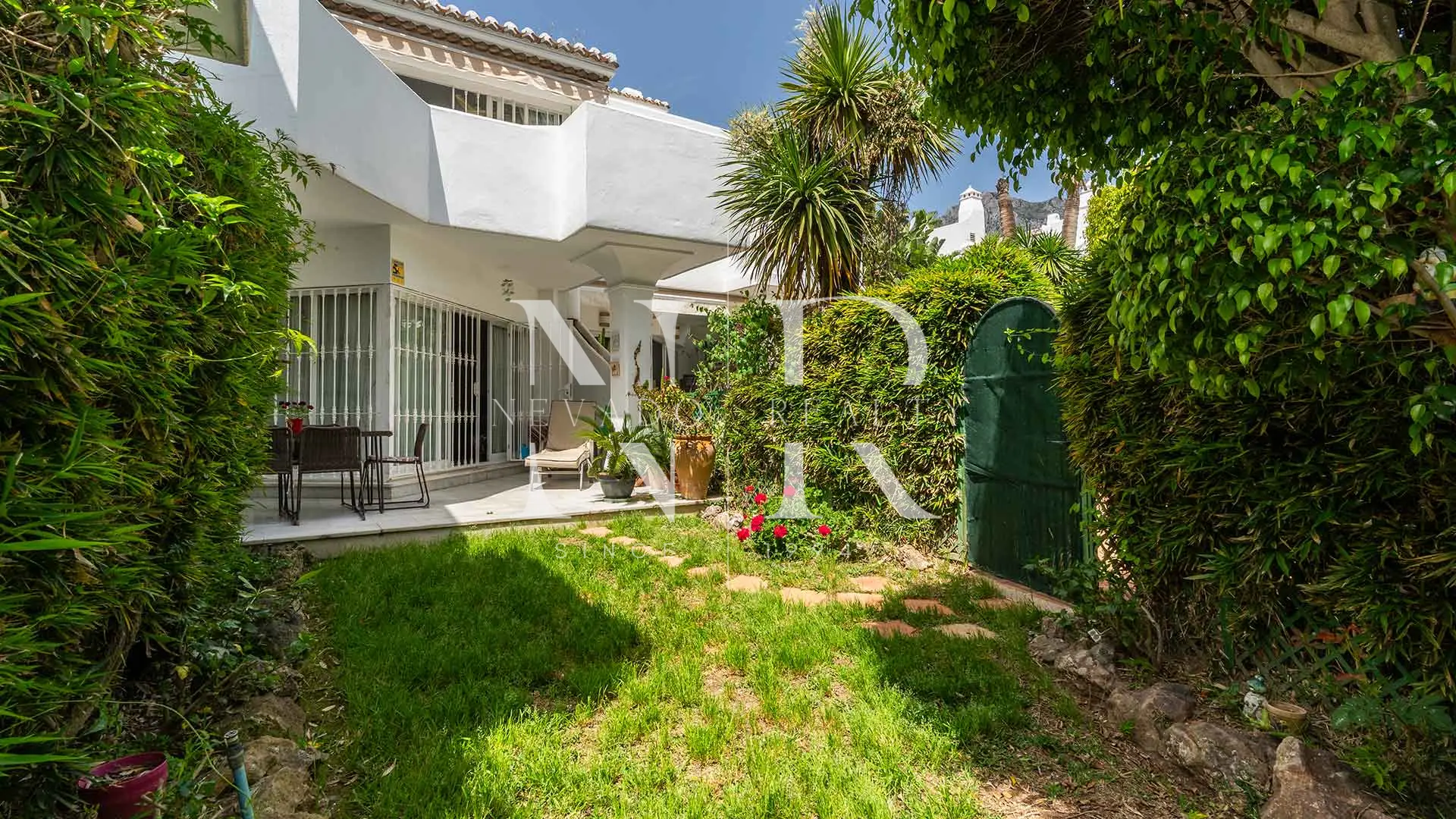 Adosada en Urbanización Camoján Blanco en venta. En una de las zonas más codiciadas de Marbella, dentro de la prestigiosa Sierra Blanca, se ubica esta magnífica propiedad en una comunidad privada compuesta por tan solo 27 exclusivas viviendas. Rodeada de frondosos jardines tropicales y una espectacular piscina de agua salada con efecto playa, esta casa refleja el encanto arquitectónico del famoso César Manrique, fusionando su estilo canario con la esencia mediterránea.