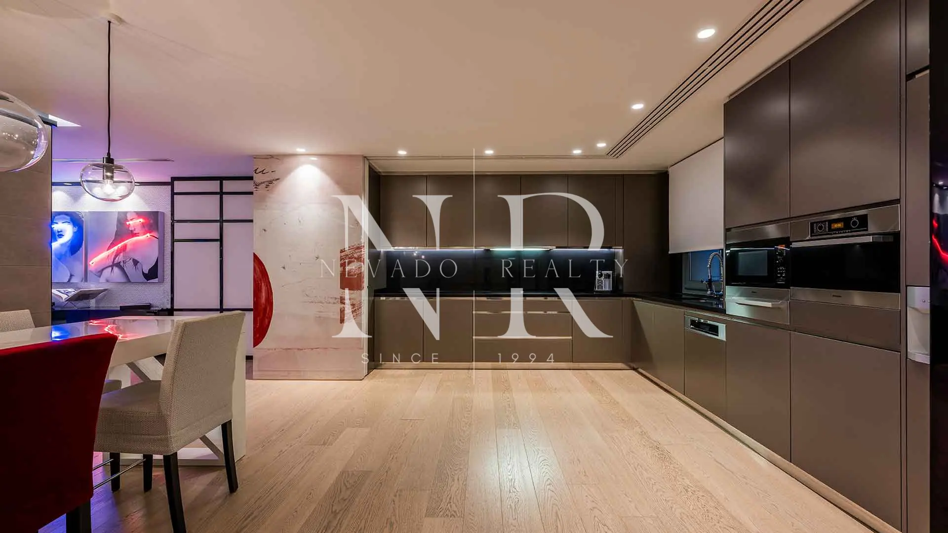 Desde el primer momento, la vivienda transmite amplitud, luz y serenidad. El salón principal se abre al exterior mediante grandes cerramientos de cristal, creando una continuidad natural entre el interior y la terraza. La zona de estar y el comedor presentan una estética contemporánea, limpia y elegante, ideal tanto para el día a día como para recibir invitados en un entorno sofisticado.