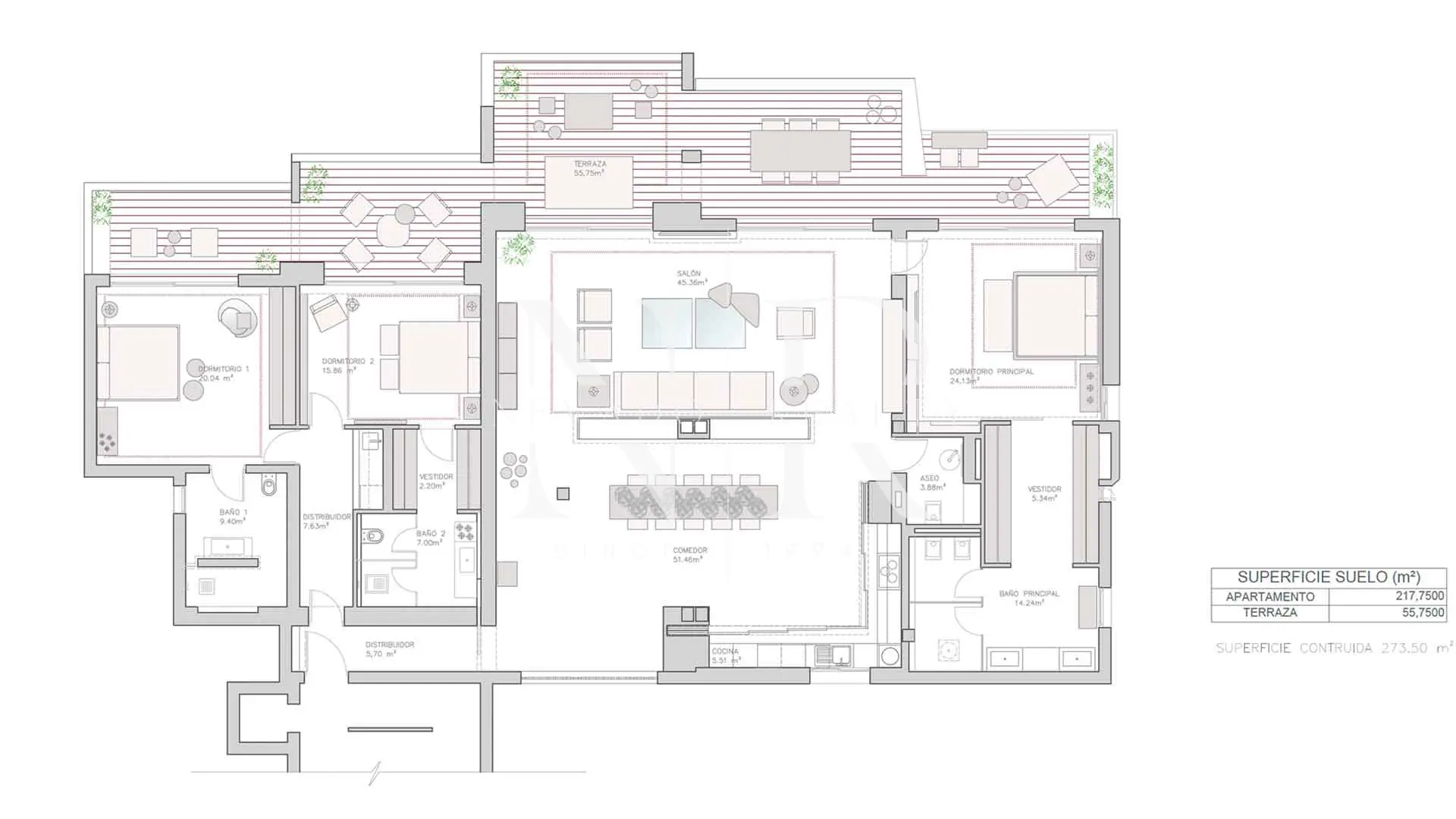 Su posición privilegiada, unida a sus vistas abiertas al mar y al puerto, convierte esta vivienda en una opción excepcional para quien busca lujo, privacidad y una forma de vivir Marbella desde su mejor perspectiva. Con 3 dormitorios, 3 baños en suite y un aseo, la propiedad cuenta con 273,5 m² construidos, de los cuales 55,75 m² pertenecen a la terraza.