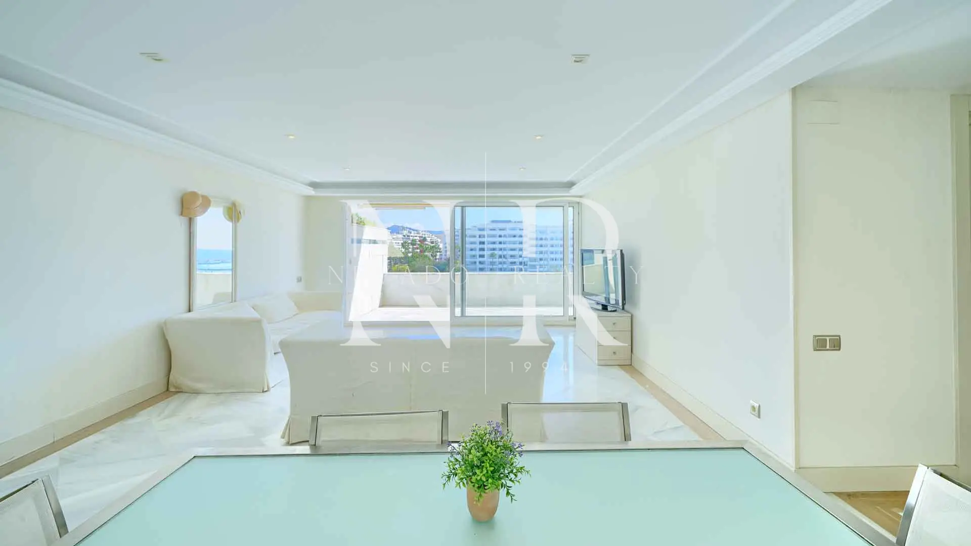 Apartamento Marbella centro primera linea de playa a la venta, este acogedor apartamento en venta, ubicado en Mare Nostrum, te ofrece un estilo de vida frente al mar. Con dos dormitorios y un baño, su amplio salón se conecta con una terraza que regala impresionantes vistas al mar. Situado en primera línea de playa.