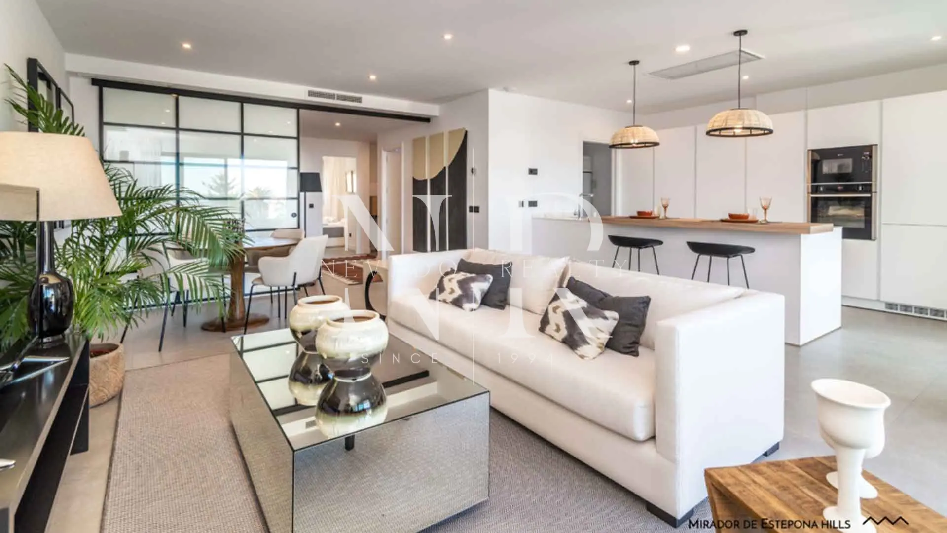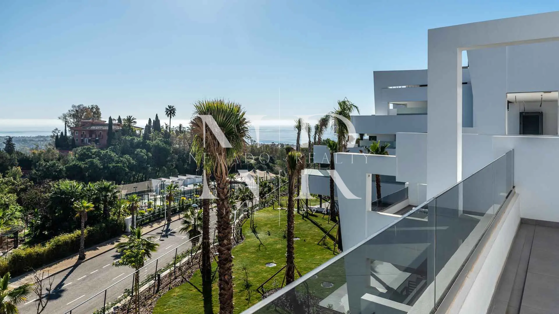 Apartamento con vistas al mar en Mirador de Estepona Hills en venta. Ubicada en una posición elevada sobre la ciudad de Estepona, esta elegante vivienda forma parte del prestigioso complejo residencial Mirador de Estepona Hills, una urbanización privada diseñada para disfrutar de tranquilidad, privacidad y vistas abiertas al Mediterráneo y a la montaña. El proyecto destaca por su arquitectura contemporánea de líneas limpias, amplias terrazas y una orientación pensada para maximizar la luz natural durante todo el día. La urbanización está rodeada de zonas verdes y ofrece un entorno exclusivo a pocos minutos del centro de Estepona, combinando naturaleza, privacidad y cercanía a todos los servicios.