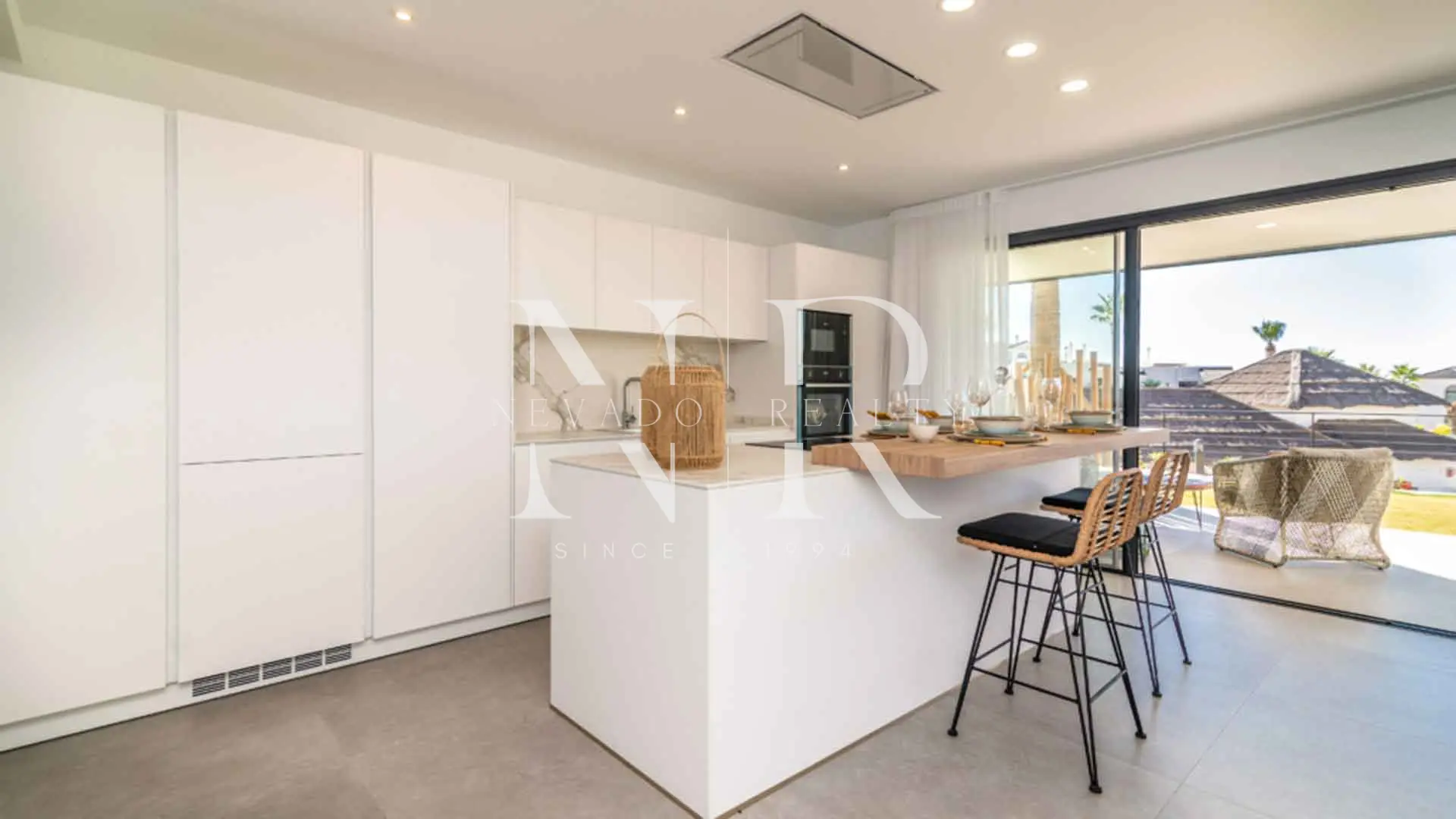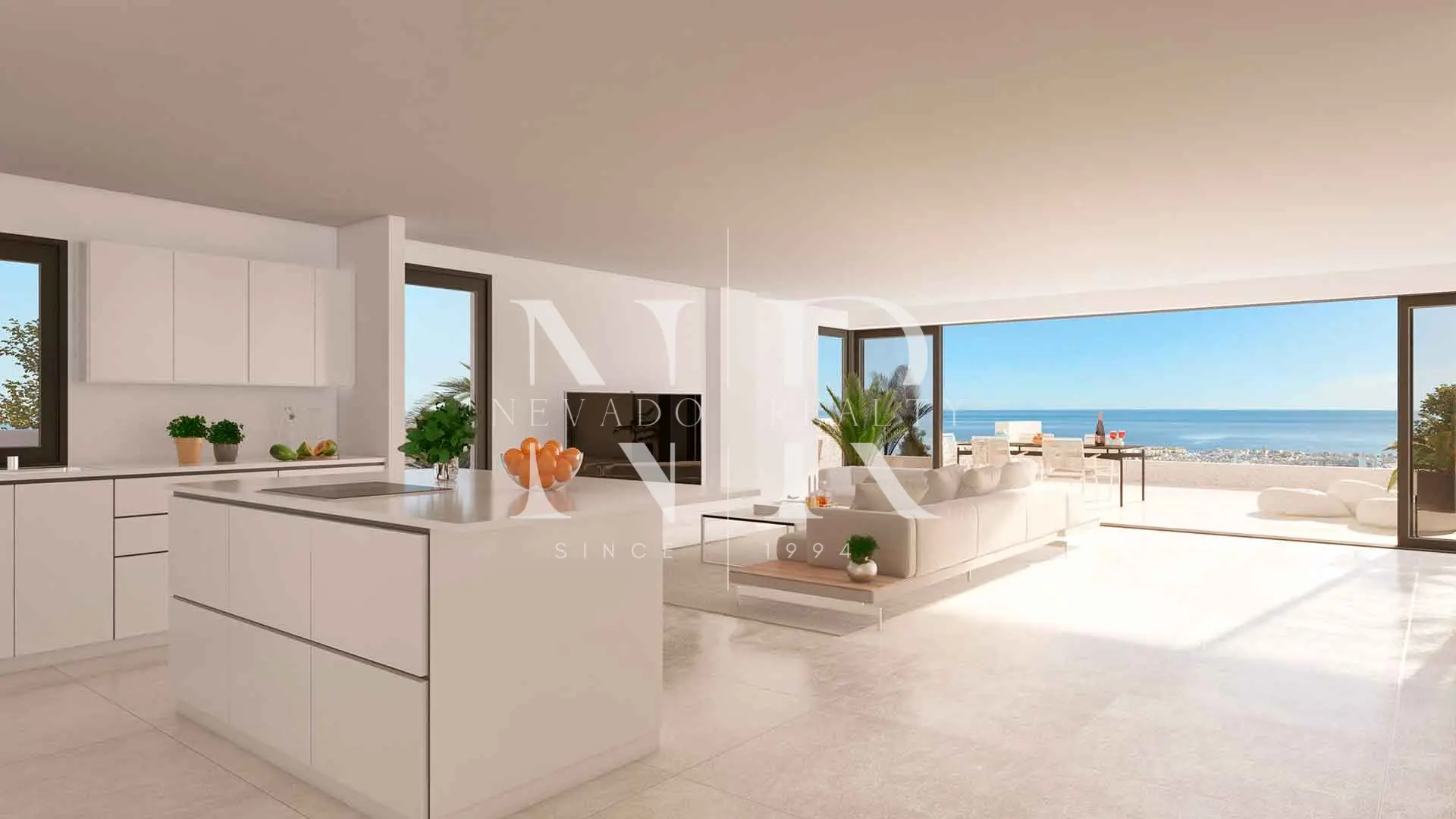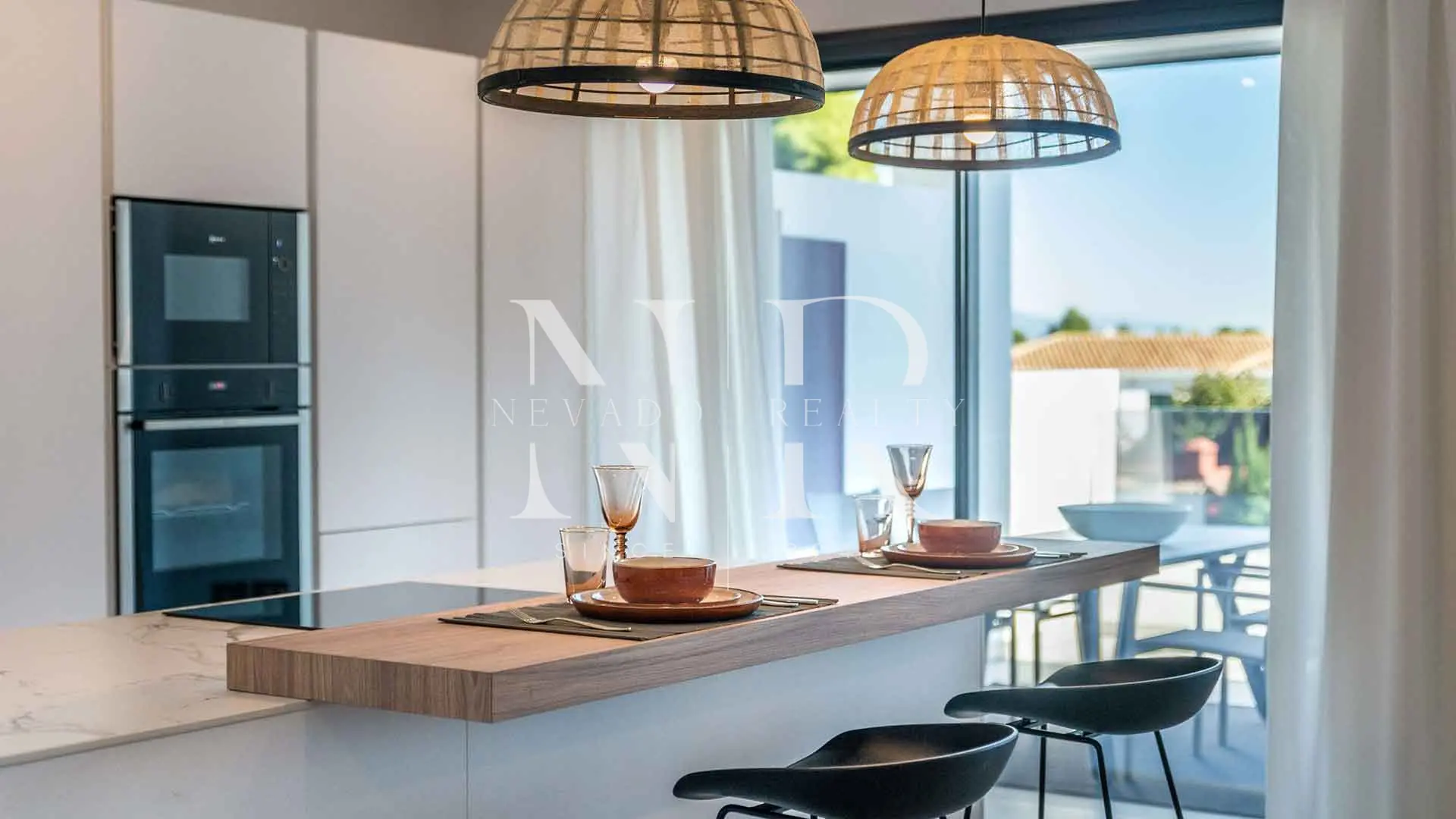 En el interior, la vivienda ha sido concebida para ofrecer amplitud y funcionalidad. El salón principal se integra con la zona de comedor y la cocina abierta, creando un espacio moderno y luminoso que conecta directamente con la terraza exterior. Los grandes ventanales permiten disfrutar de vistas panorámicas mientras llenan la estancia de luz natural. La cocina cuenta con electrodomésticos integrados y un diseño actual que prioriza comodidad y eficiencia.