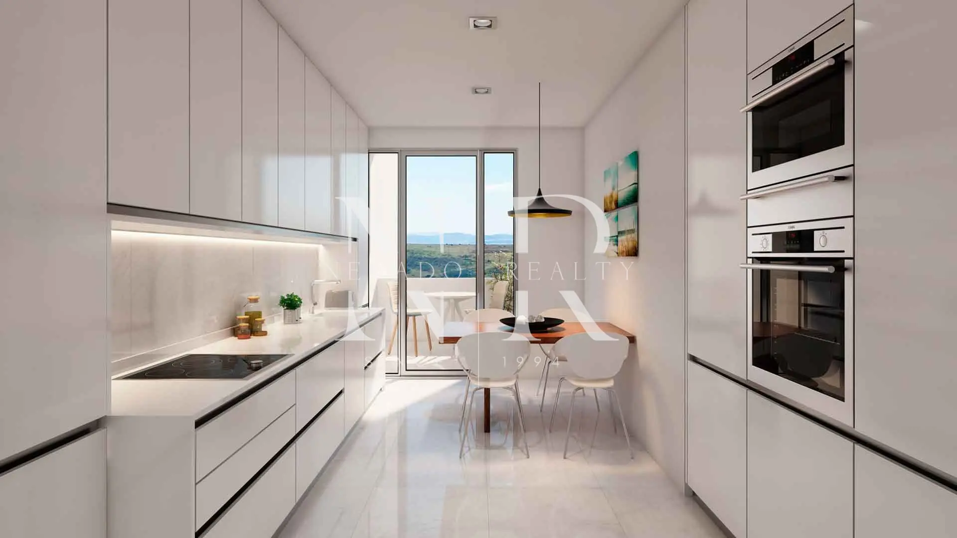 • Cocina moderna equipada con electrodomésticos integrados.