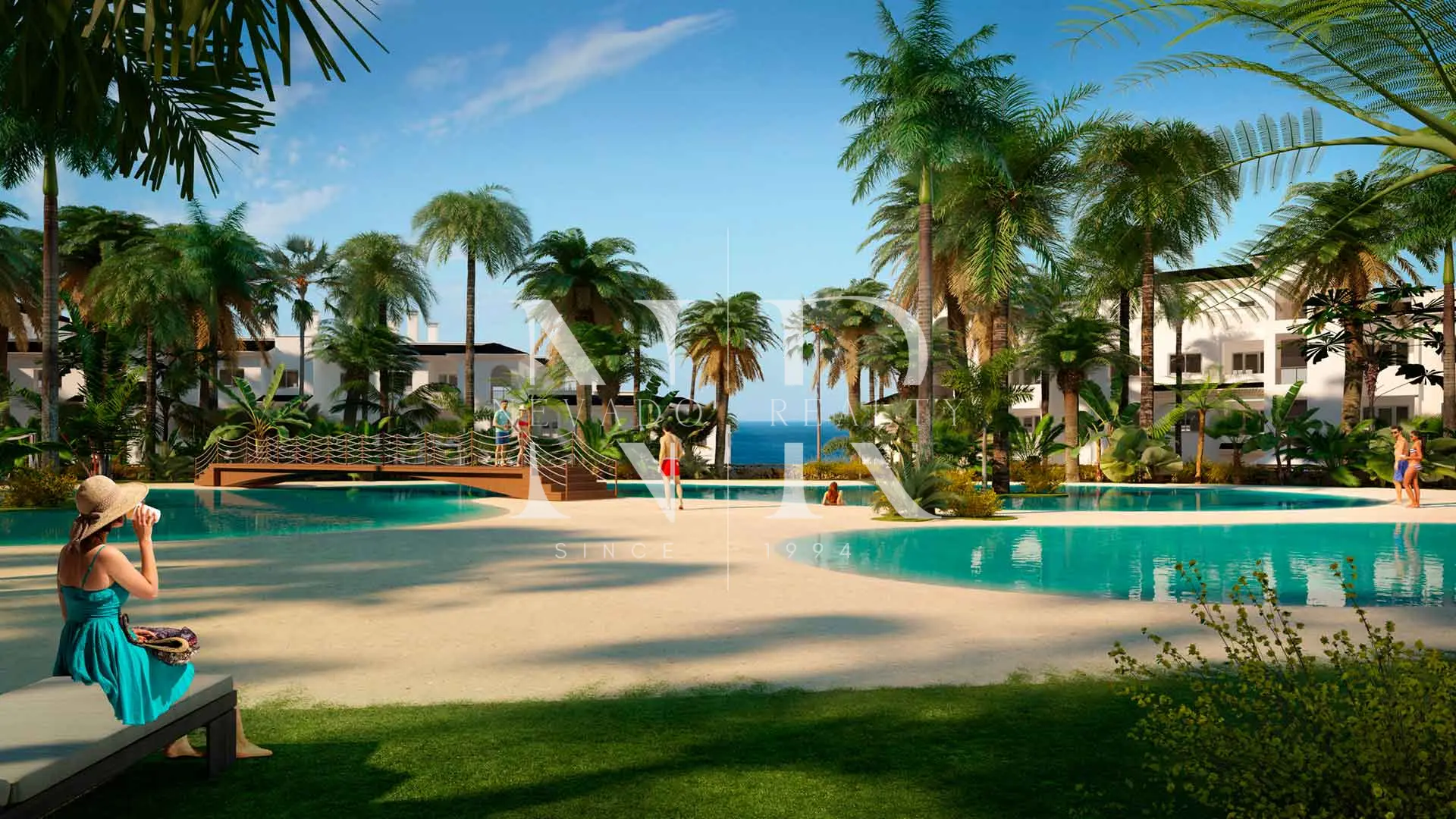 • Piscinas comunitarias rodeadas de jardines tropicales.