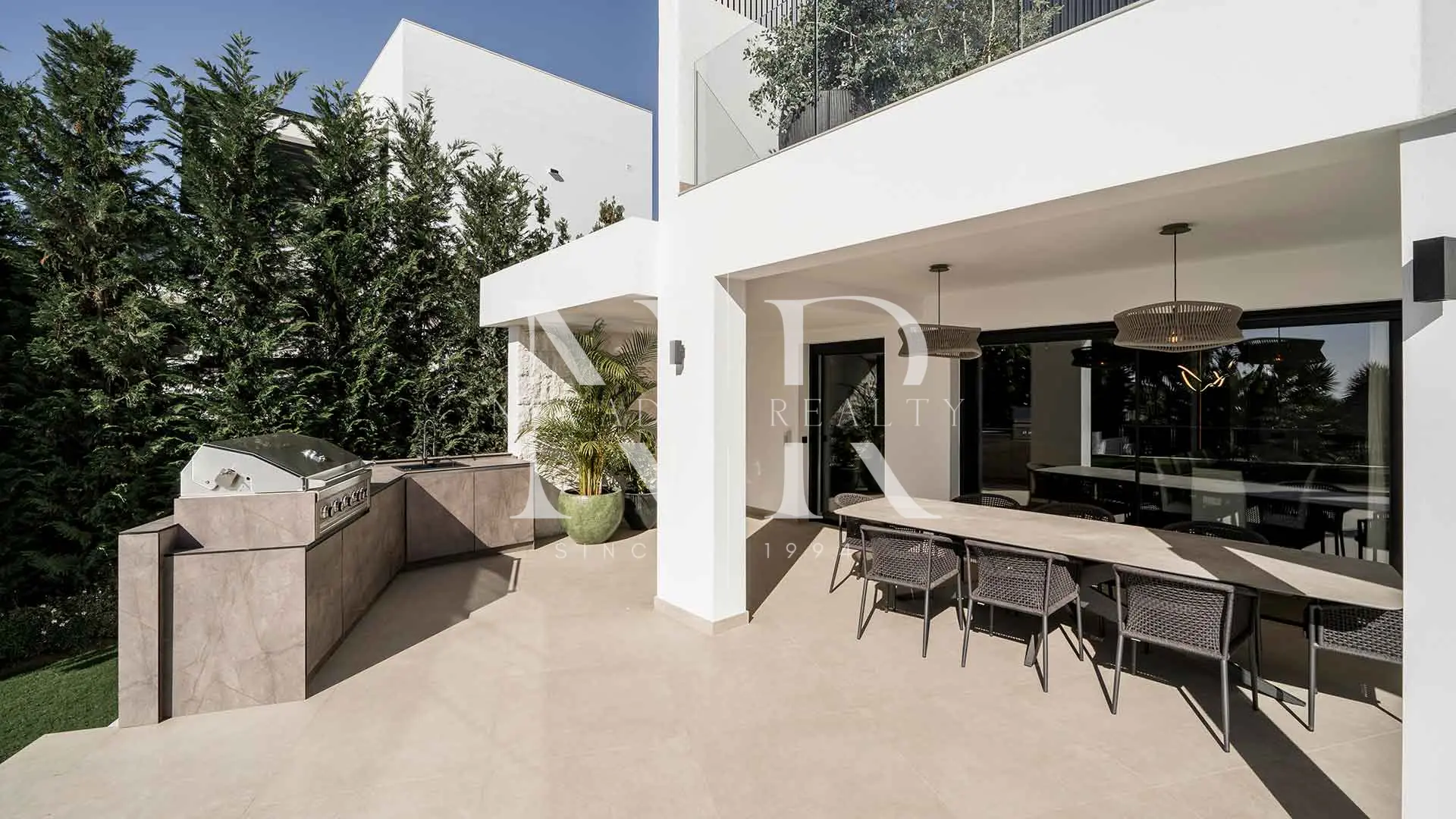 La propiedad también incluye un garaje cubierto para un coche, espacio para tres vehículos adicionales dentro del perímetro cerrado, y un tercer edificio con acceso independiente que alberga una bodega, gimnasio y baño adicional. Una propiedad que combina lujo, ubicación y diseño para quienes buscan lo mejor en Marbella.