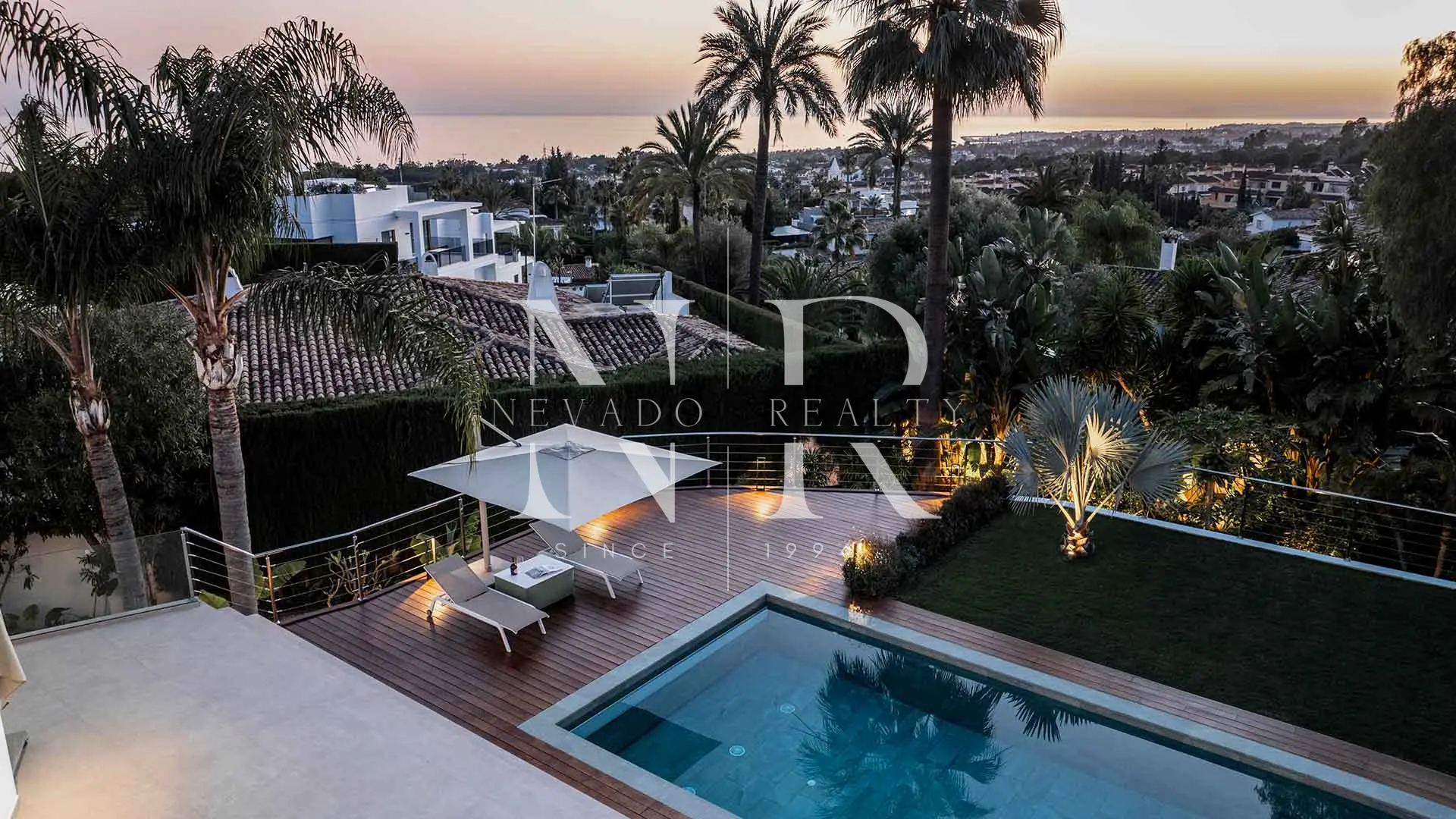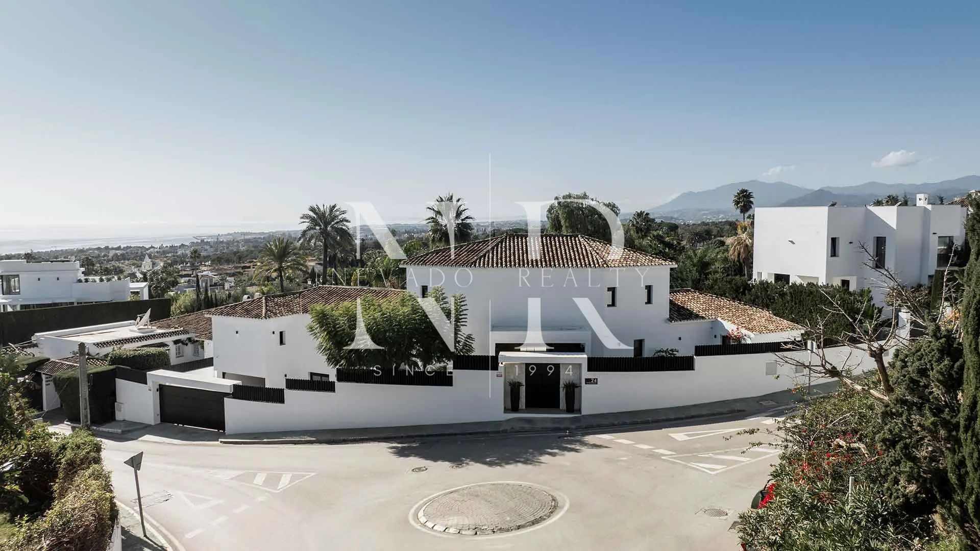 Villa en Nagueles con vistas al mar en venta. Ubicada entre las prestigiosas zonas de Nagüeles y Sierra Blanca, esta villa de 5 dormitorios combina amplitud, privacidad y una orientación sur que regala sol durante todo el día y vistas espectaculares al mar Mediterráneo, Gibraltar e incluso África en días despejados. Situada a pocos minutos de colegios internacionales, restaurantes de primer nivel, la Milla de Oro y la playa, esta propiedad ofrece lo mejor de la vida en Marbella en un enclave tranquilo y elevado.