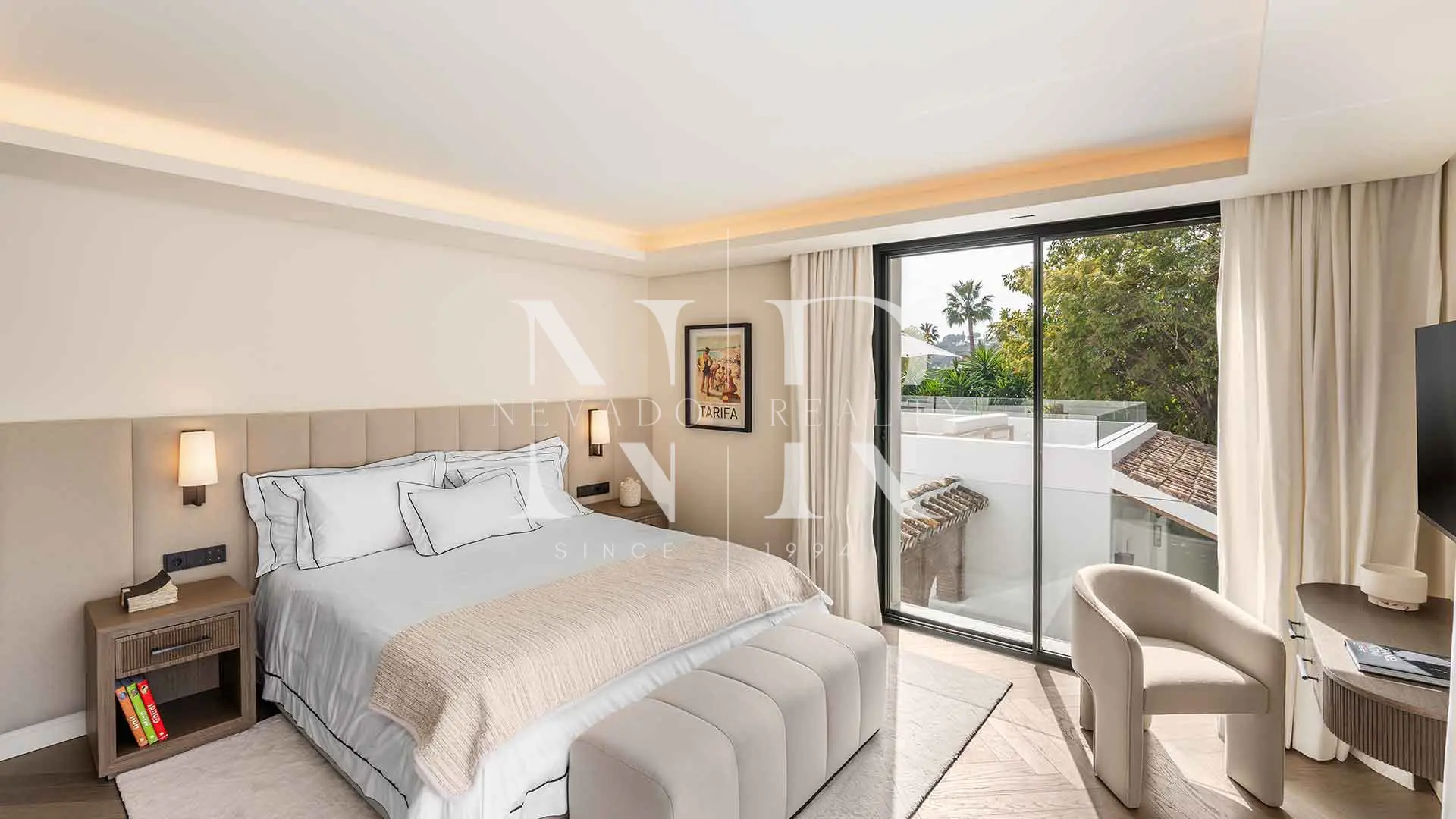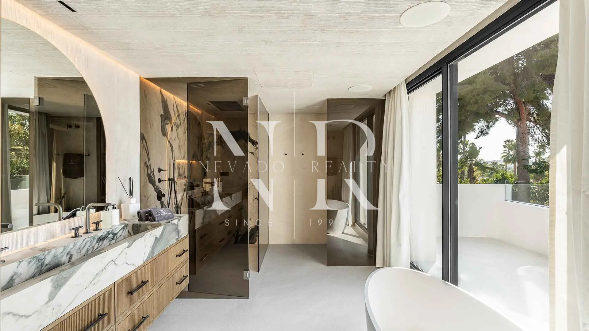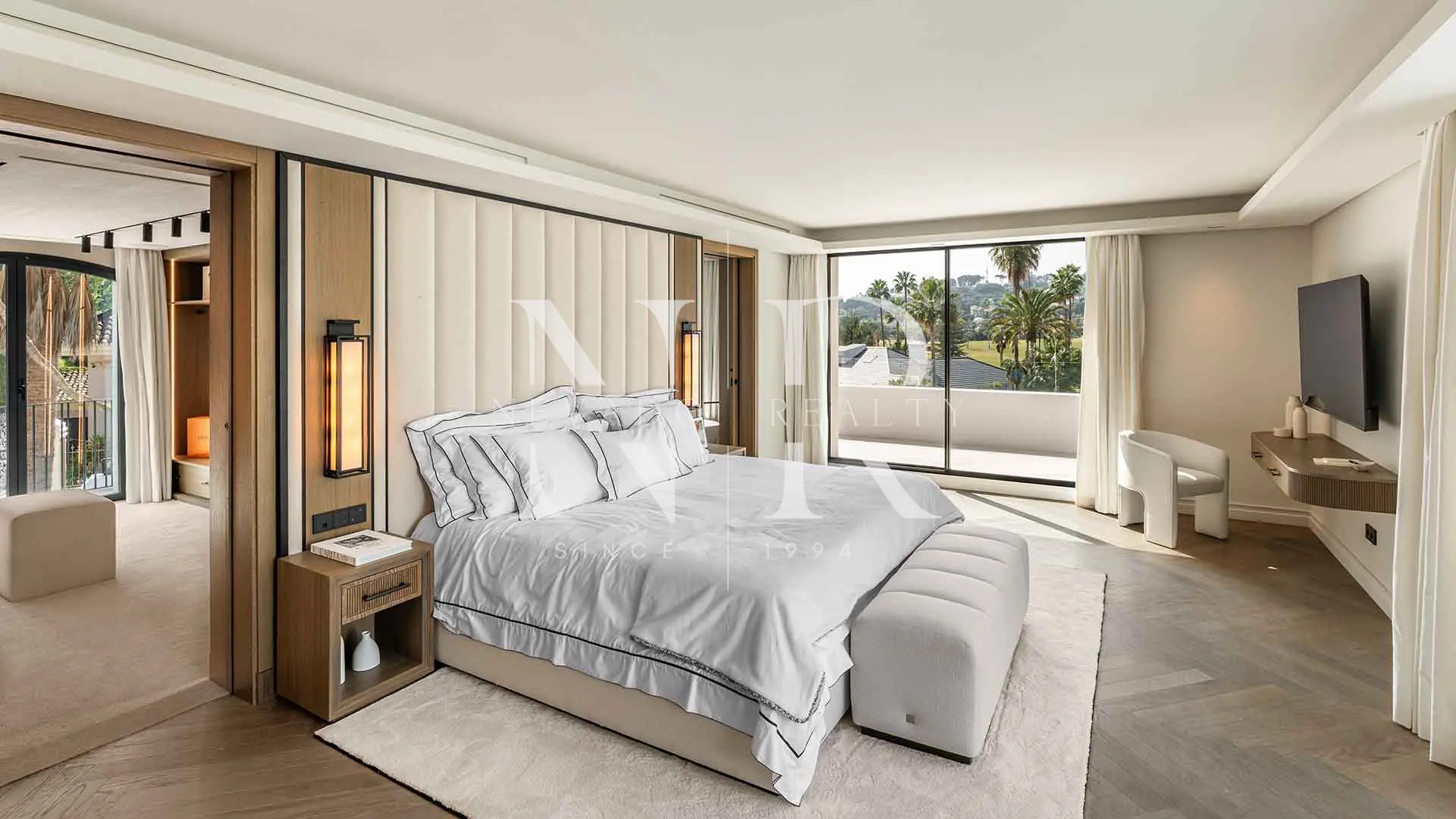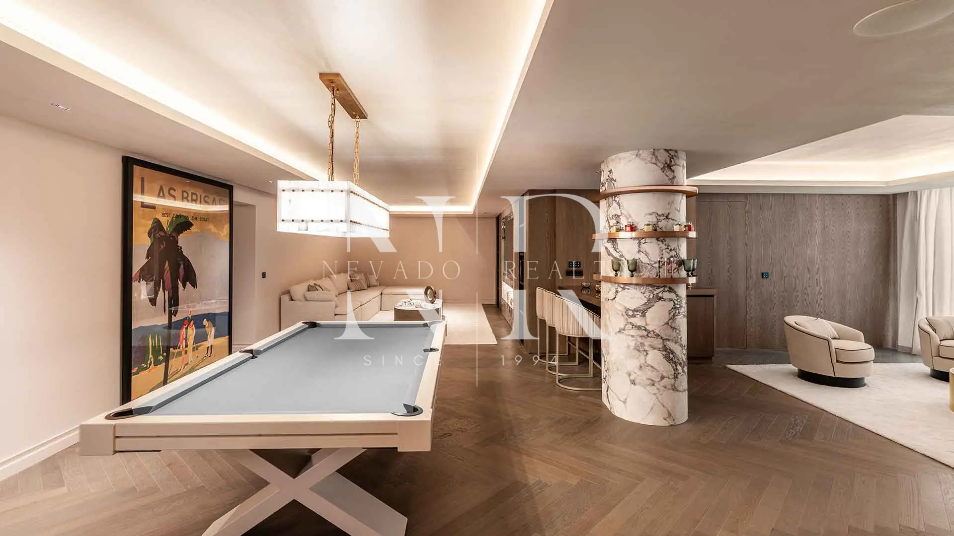 La planta superior alberga la suite principal con impresionantes vistas al campo de golf de Las Brisas, acceso directo a una terraza privada, un elegante vestidor y una ducha exterior. Las habitaciones adicionales están distribuidas para ofrecer privacidad tanto a los invitados como a la familia. En la planta inferior, más de 250 m² están dedicados al bienestar y el ocio: un spa completo con sauna y baño turco, gimnasio totalmente equipado y una sala de cine privada para disfrutar en casa. El garaje con plataforma giratoria permite un acceso cómodo y sofisticado, y la distribución general garantiza una vida práctica y placentera, perfecta tanto para el día a día como para el entretenimiento.