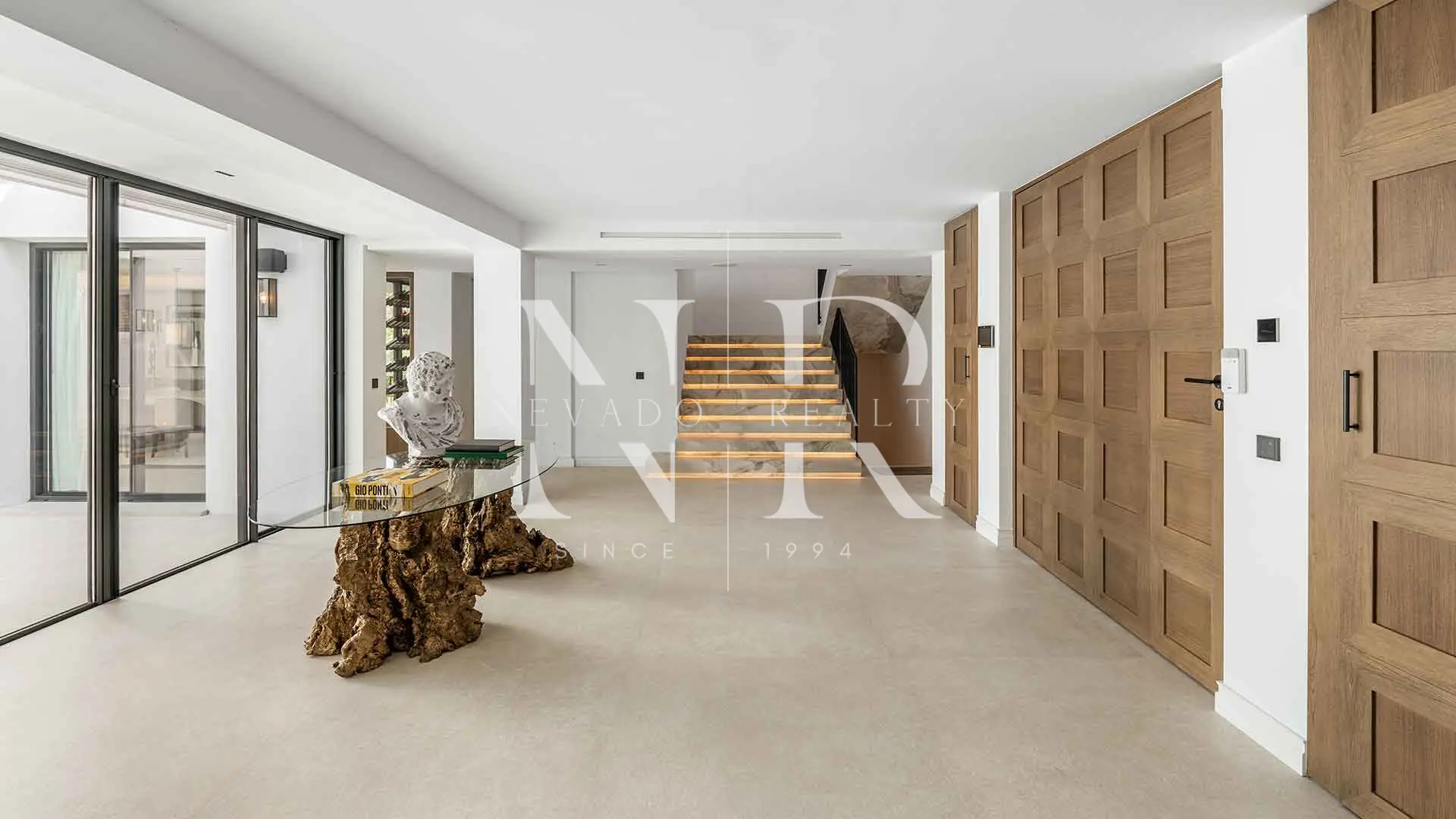 Villa en Nueva Andalucía de diseño contemporáneo en venta. Ubicada en la codiciada zona de Las Brisas, en Nueva Andalucía, esta villa representa una oportunidad única de adquirir una residencia de diseño contemporáneo en el corazón del exclusivo Valle del Golf de Marbella. Rodeada de algunos de los mejores campos de golf de la Costa del Sol y a pocos minutos de Puerto Banús, esta villa combina líneas modernas con detalles atemporales, creando un hogar elegante y funcional. La propiedad se asienta sobre una gran parcela y ha sido distribuida en tres niveles con una planificación arquitectónica centrada en la luz natural, la privacidad y la fluidez de los espacios.