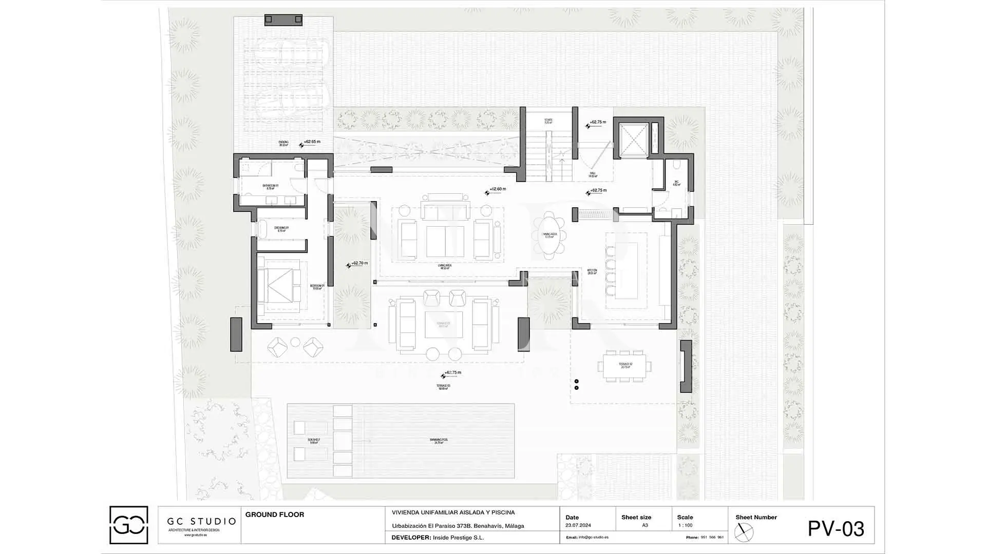 La vivienda cuenta con más de 900 m² construidos que incluyen amplias zonas sociales, cinco dormitorios, y múltiples espacios diseñados para el disfrute. Las estancias interiores se benefician de sistemas domóticos de última generación, calefacción por suelo radiante y ventanales que permiten la entrada de luz natural durante todo el día. La planta baja ofrece una elegante sala de estar, comedor formal y una cocina de diseño totalmente equipada, ideal para amantes de la gastronomía.