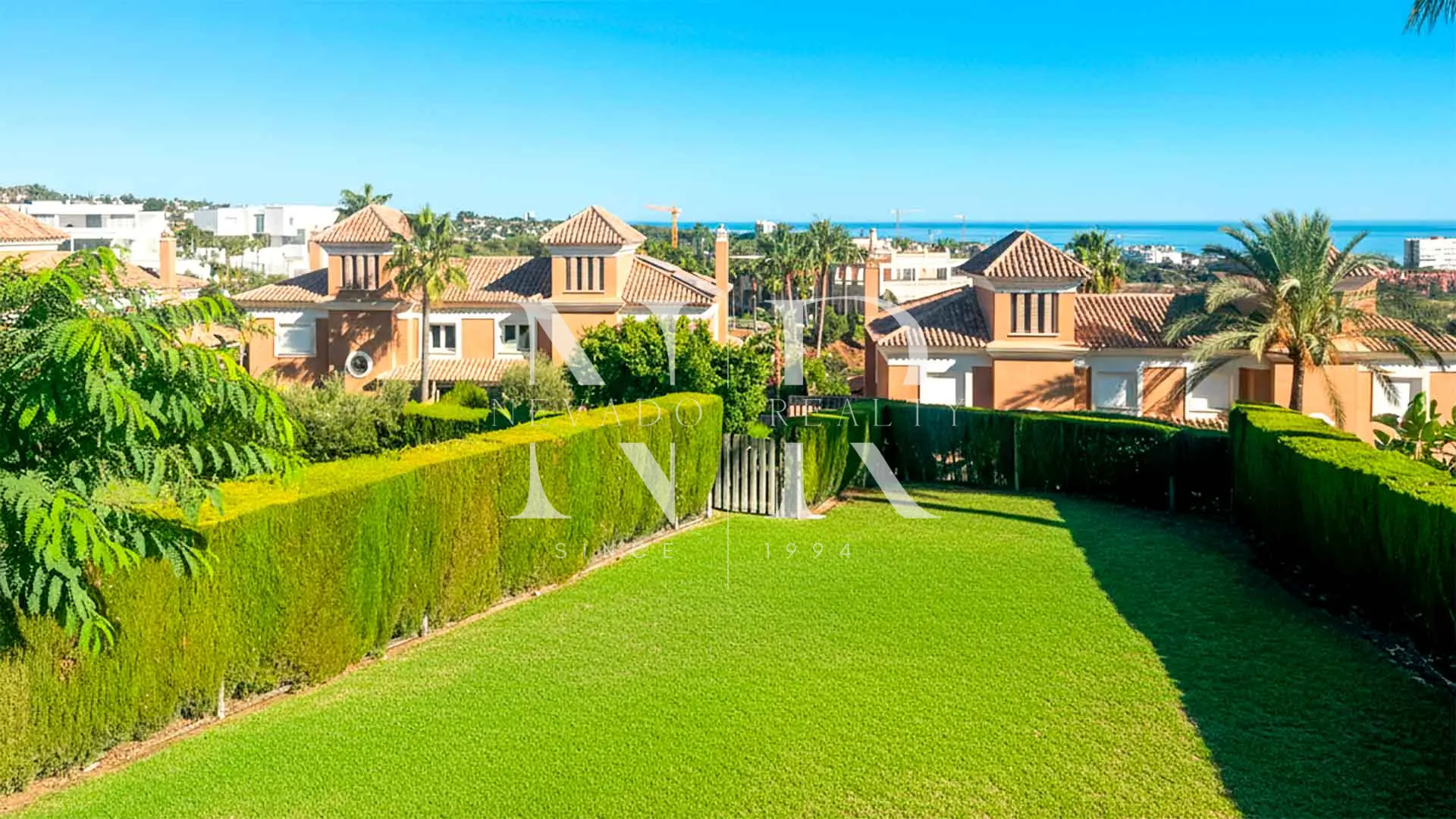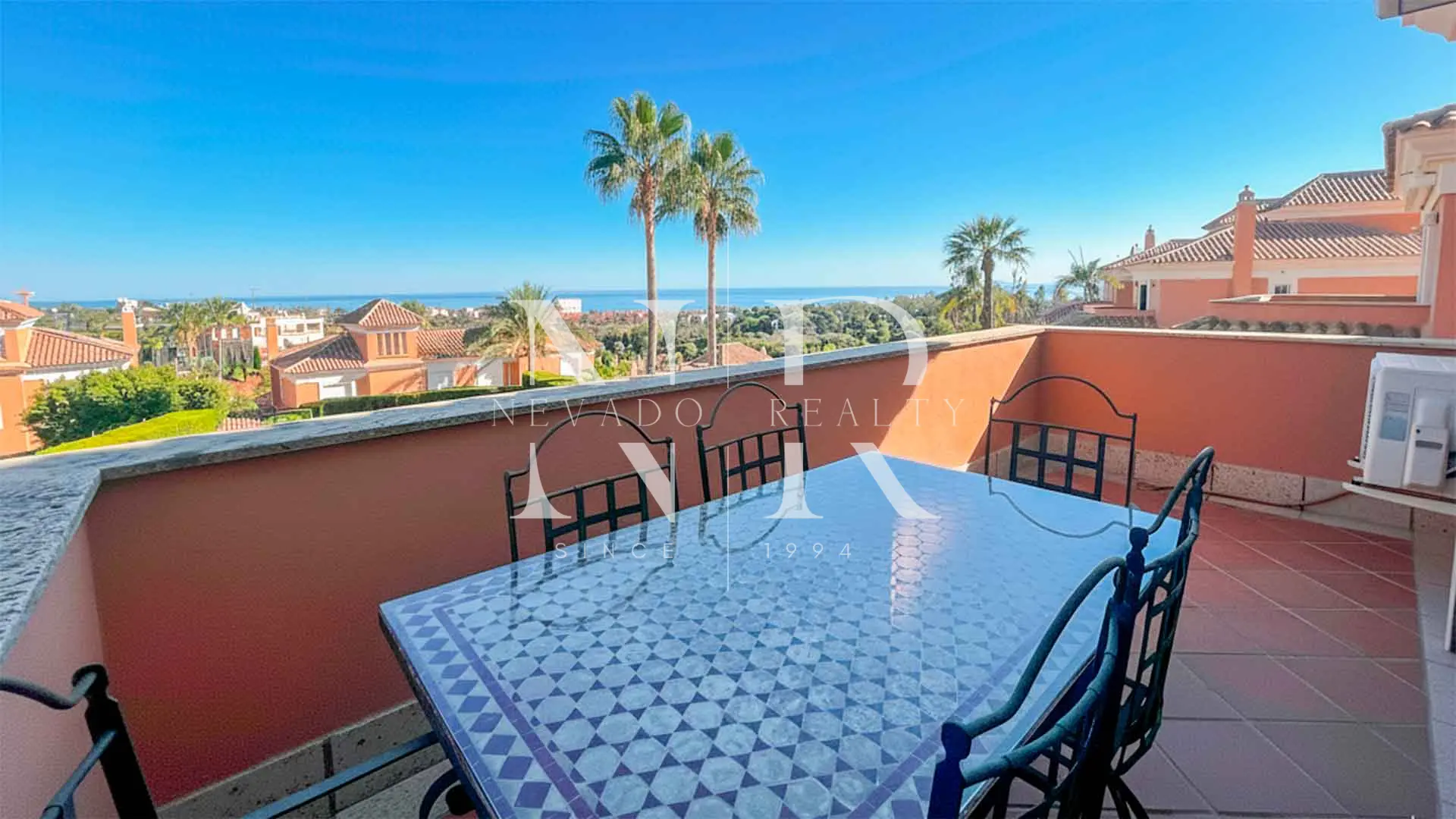 Villa pareada en Urbanización Santa Clara Golf con vistas al mar en venta. Situada a pocos minutos del centro de Marbella, junto a las mejores playas y cerca de todos los servicios, así como de varios de los campos de golf más prestigiosos de la zona, esta elegante y amplia vivienda se distribuye en dos plantas más sótano y ofrece tres dormitorios, tres cuartos de baño y un baño de cortesía.