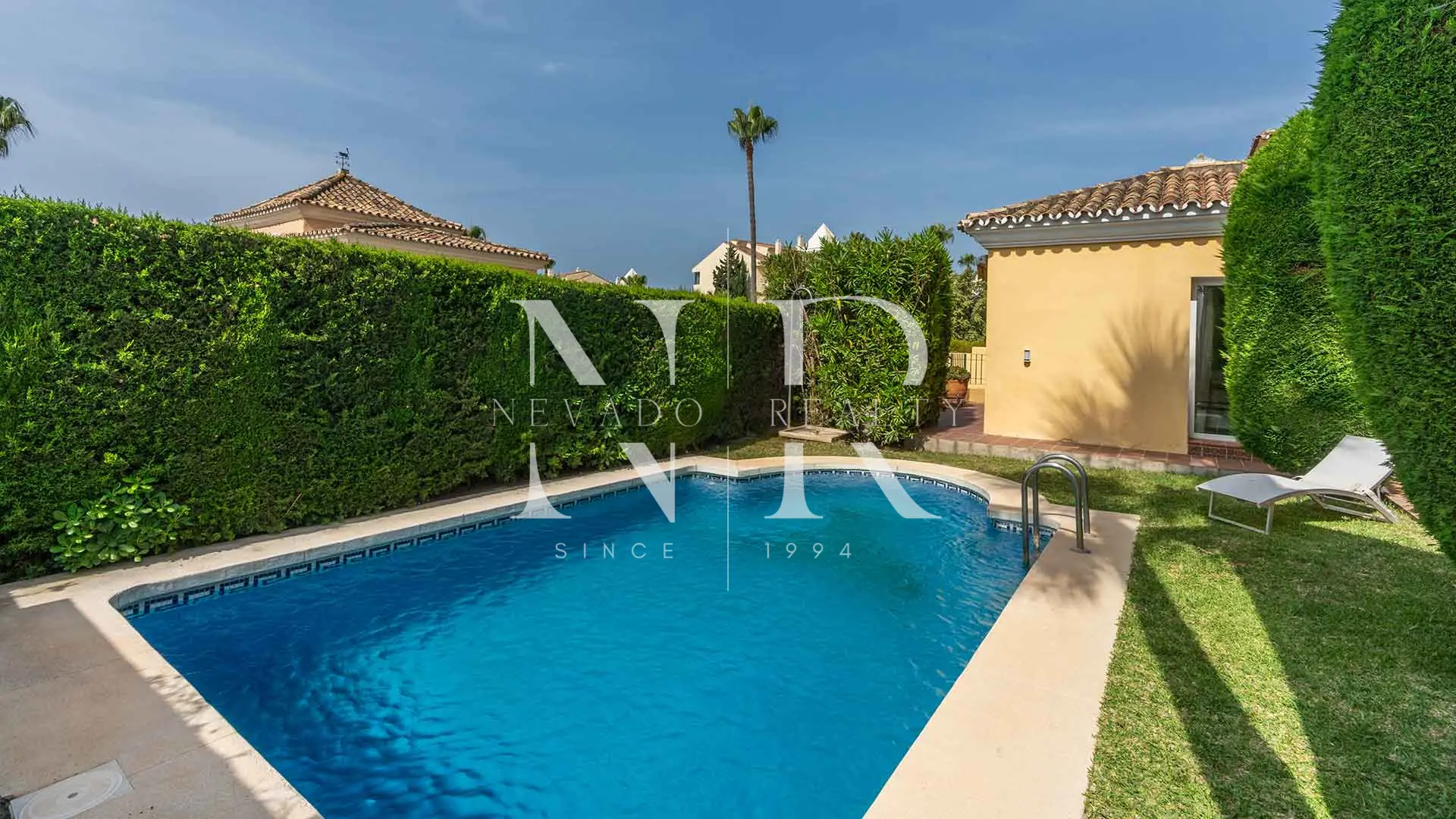 Villa avec piscine à BahÃa de Marbella en location longue durée. Découvrez cette magnifique villa individuelle située dans le prestigieux complexe BahÃa de Marbella, à deux pas des plus belles plages de la région. Bénéficiant d’une excellente exposition sud, cette propriété offre une luminosité exceptionnelle tout au long de la journée et un cadre paisible et privé, idéal pour profiter du style de vie méditerranéen.