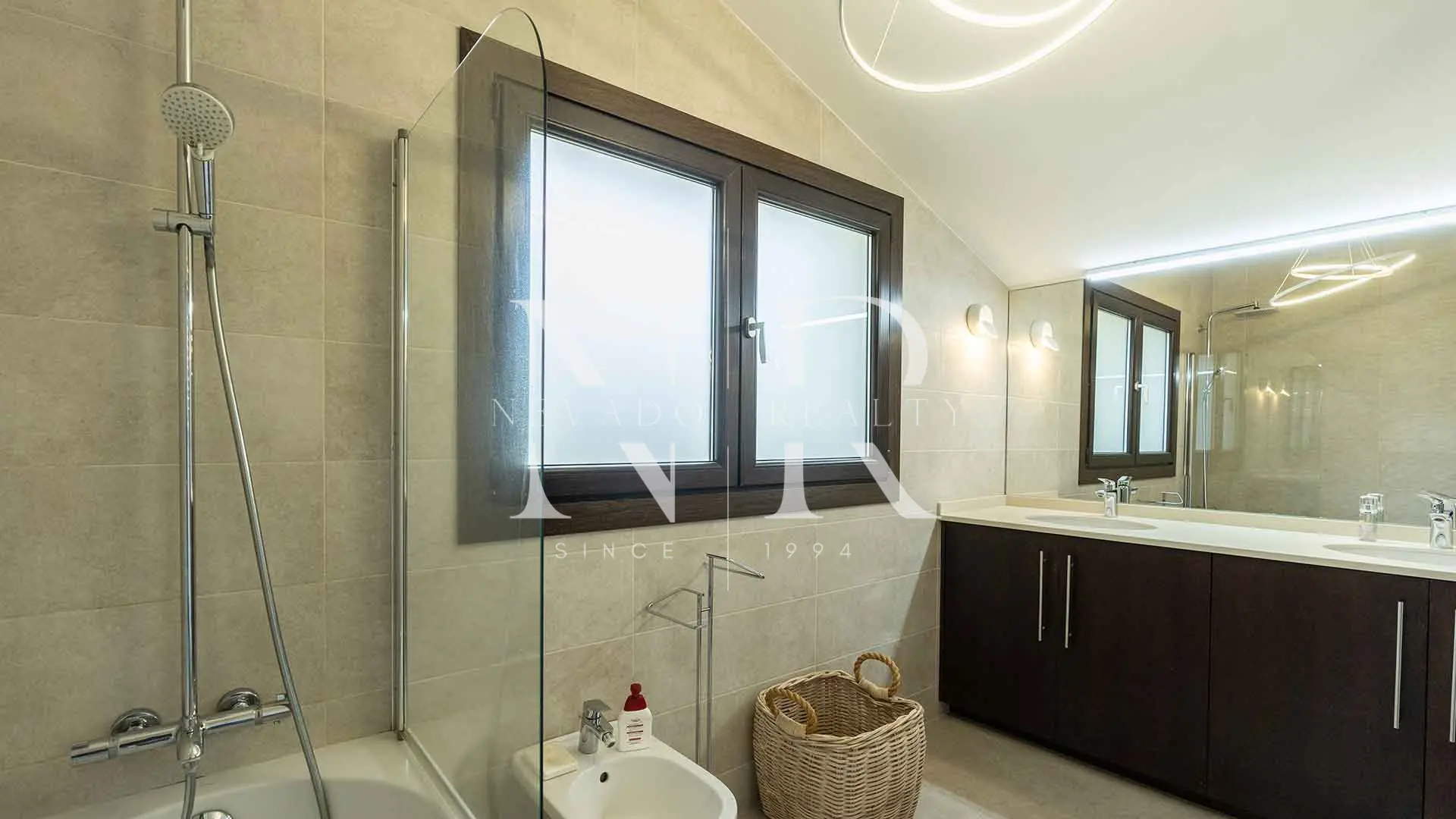 Au rez-de-chaussée, deux chambres, dont une avec salle de bain attenante, une autre chambre supplémentaire avec salle de bain. L’espace de vie se compose d’un salon et d’une salle à manger ouverts sur une cuisine américaine moderne et entièrement équipée, idéale pour les réunions de famille ou entre amis.