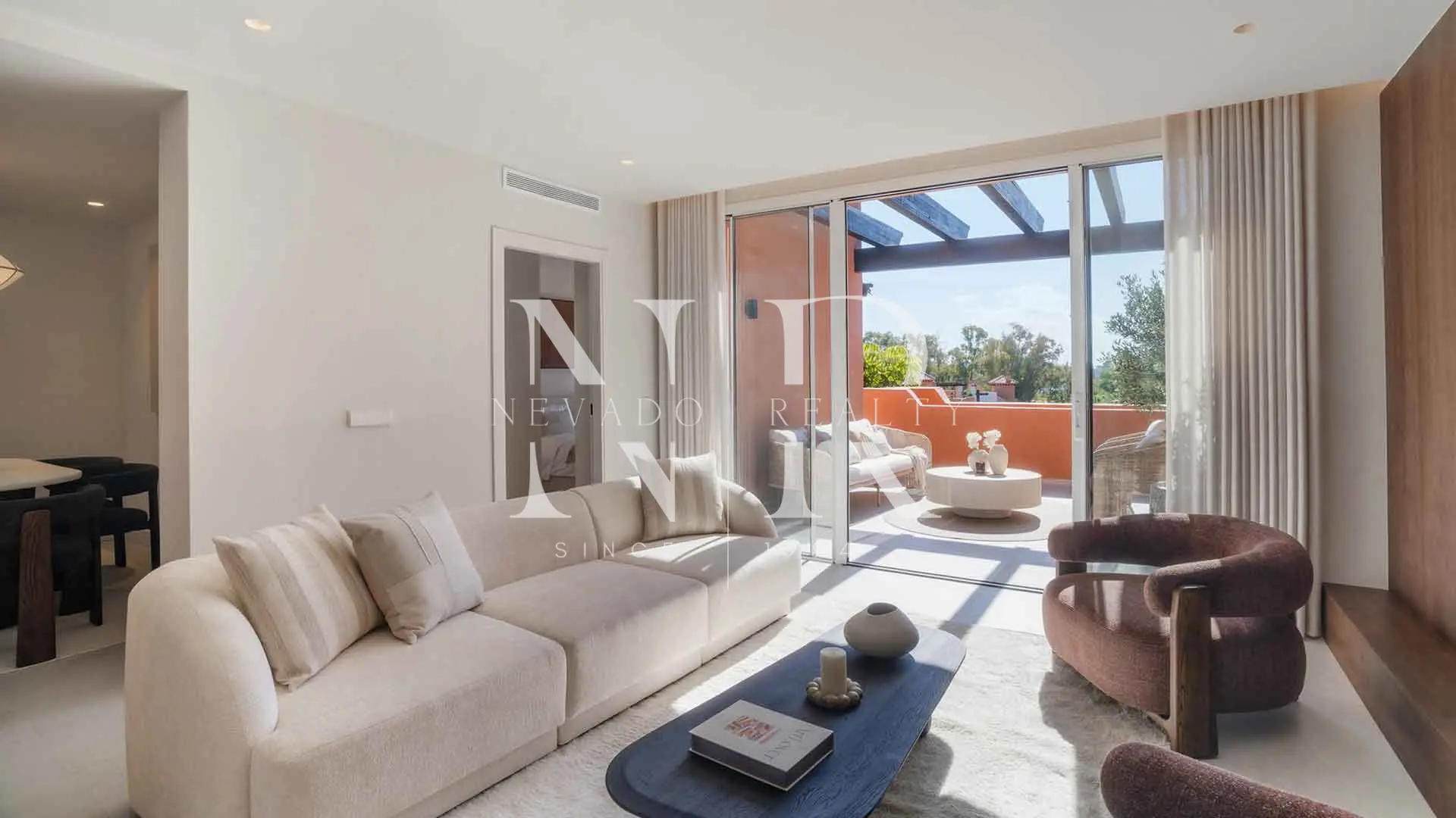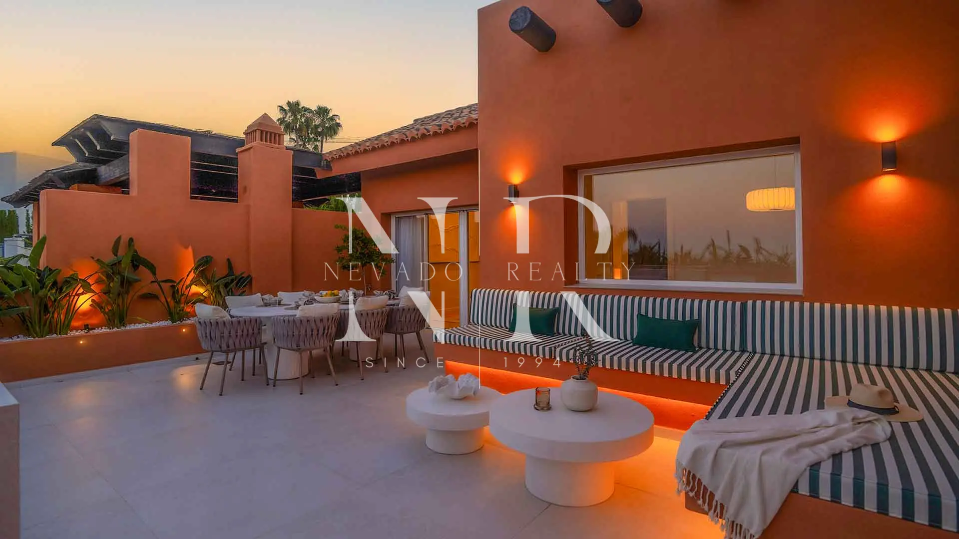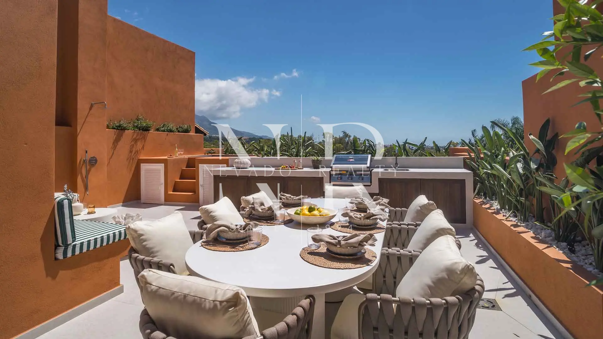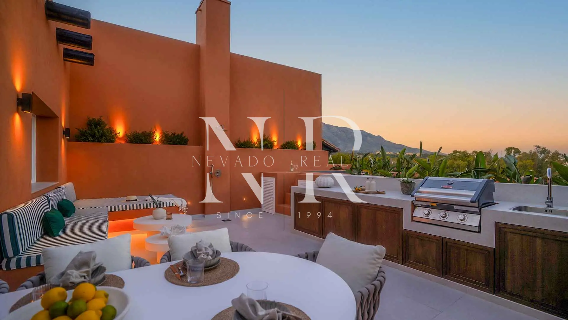 Penthouse entièrement rénové à vendre dans le complexe résidentiel Alminar de Marbella. Situé dans une résidence calme et sécurisée au cœur de Nueva Andalucía, l’un des quartiers résidentiels les plus exclusifs de Marbella. Orienté plein sud et bénéficiant d’une vue dégagée, ce bien allie design contemporain, matériaux haut de gamme et un cadre de vie paisible dans un cadre privilégié.