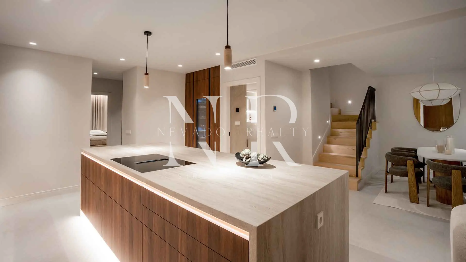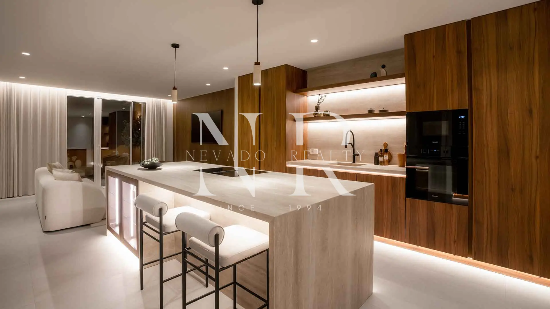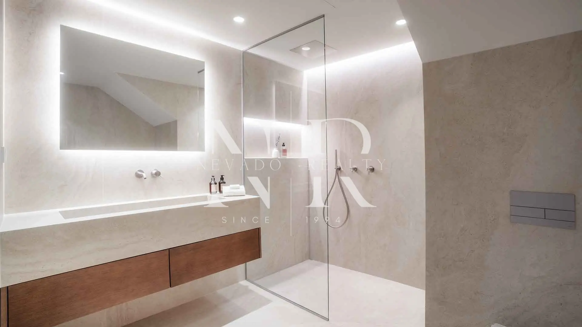 Réparti sur deux étages, le penthouse comprend quatre chambres et trois salles de bains, toutes décorées avec des finitions modernes et fonctionnelles. Au rez-de-chaussée, vous trouverez une cuisine design équipée d’appareils électroménagers Miele de pointe, adjacente à un spacieux salon-salle à manger ouvrant sur une terrasse privée, idéale pour profiter du climat ensoleillé de la Costa del Sol. La lumière naturelle et les espaces ouverts en font une maison confortable et raffinée. À l’étage, la suite parentale offre un dressing, une salle de bains privative et un accès direct à une grande terrasse sur le toit.