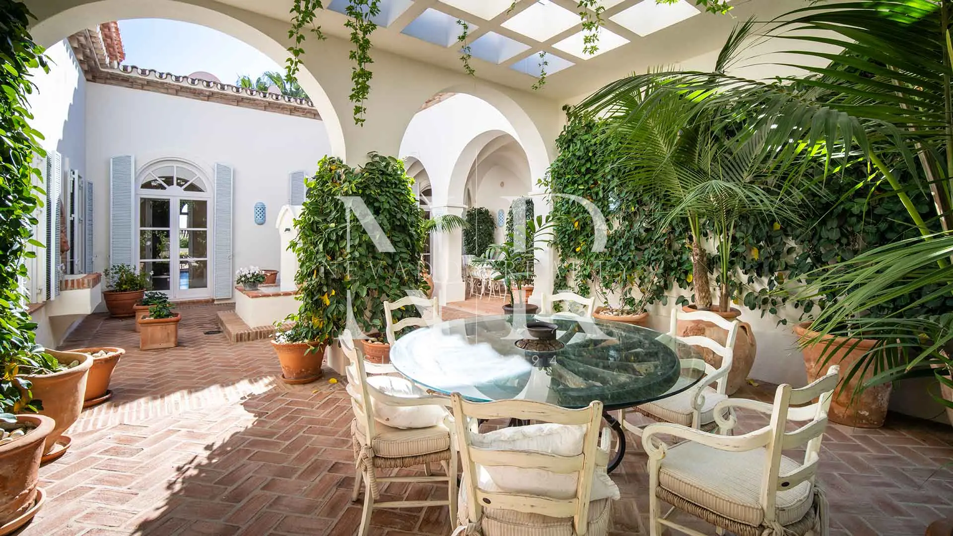 Les jardins luxuriants comprennent une piscine privée et de grandes terrasses parfaites pour les repas en plein air, les soirées en famille et les moments de détente. Au cœur de la villa, un charmant patio andalou avec une fontaine apporte caractère et tradition, rappelant l’essence du style méditerranéen le plus authentique.
