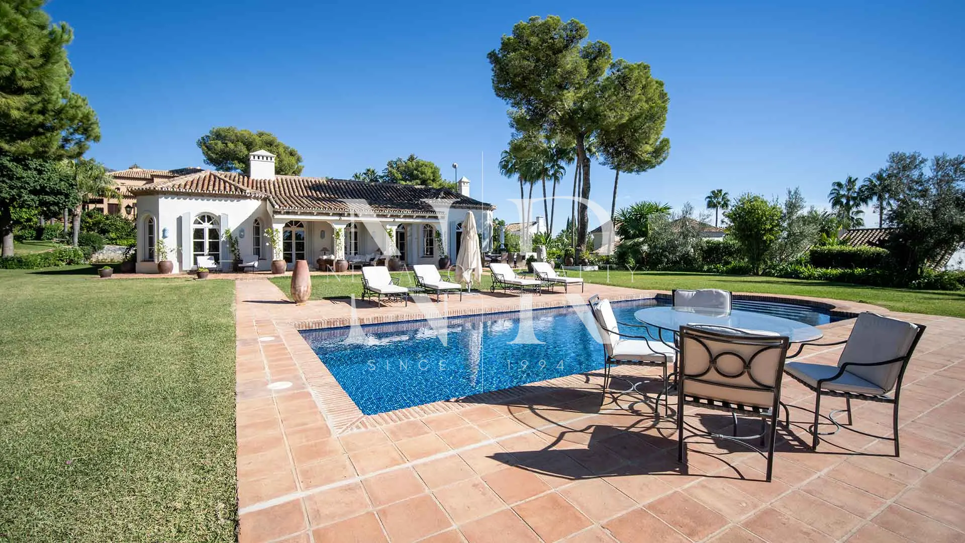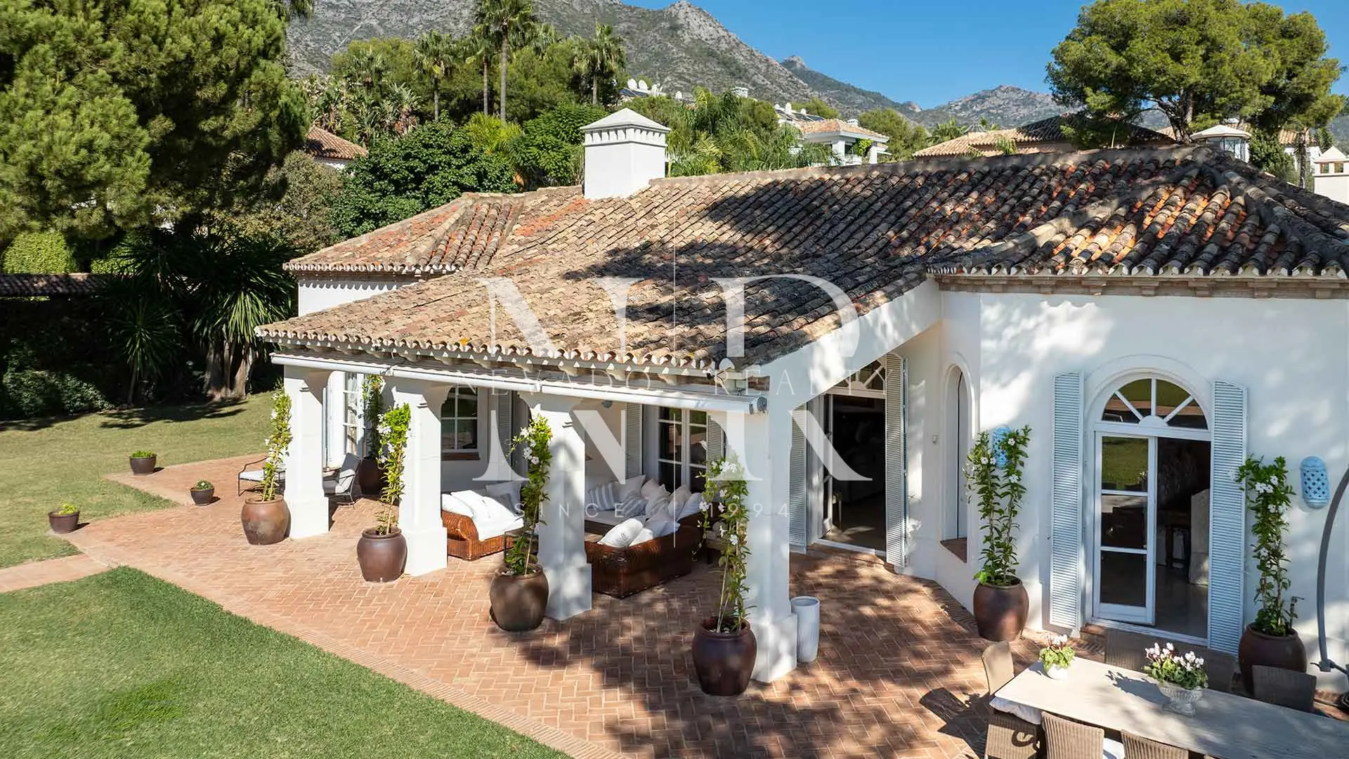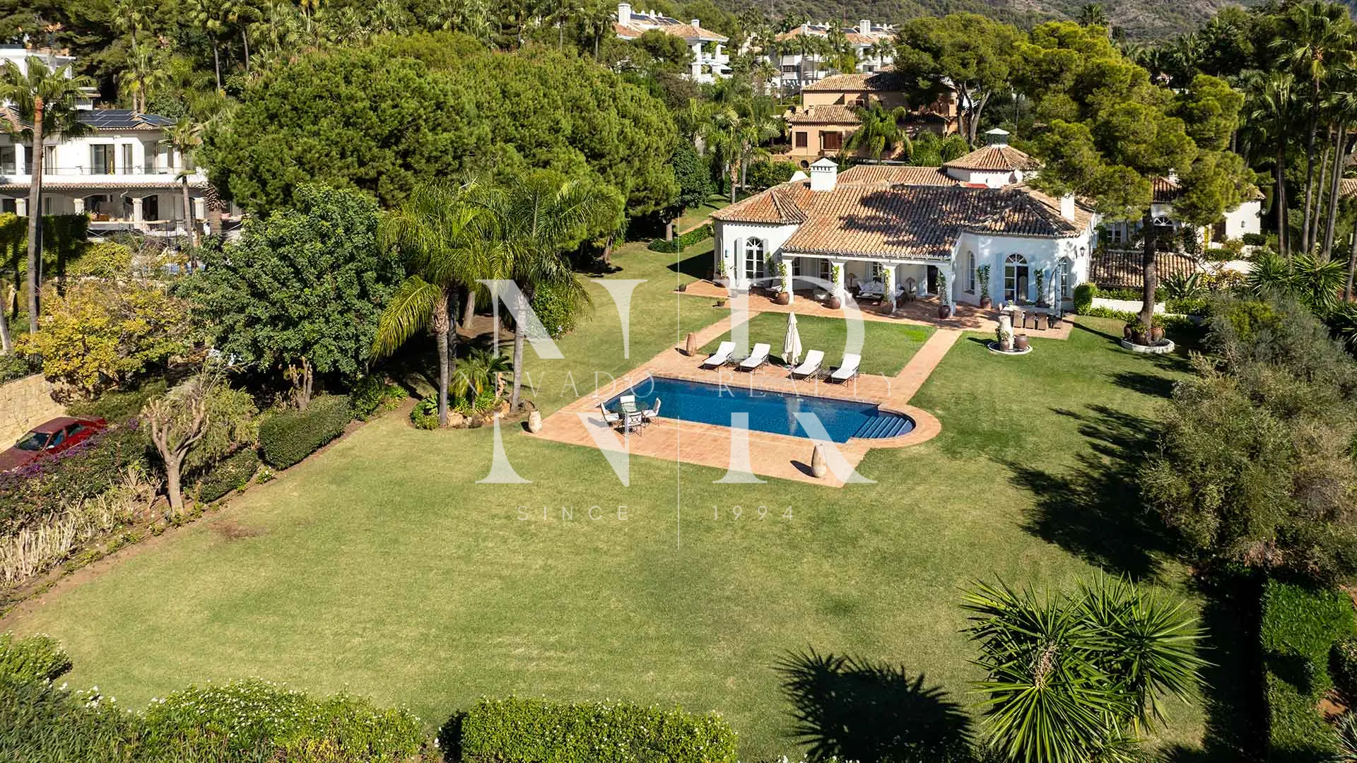 Villa à vendre dans le lotissement Altos Reales avec vue sur la mer. Située dans un lotissement prestigieux avec sécurité 24h/24, cette villa méditerranéenne exceptionnelle représente la combinaison parfaite entre élégance intemporelle, confort et intimité. Avec un vaste terrain de près de 4 000 m², la propriété est entourée d’une végétation luxuriante et offre une vue panoramique imprenable sur la mer et la montagne.