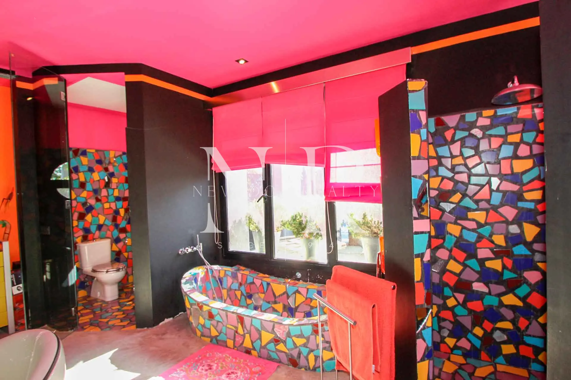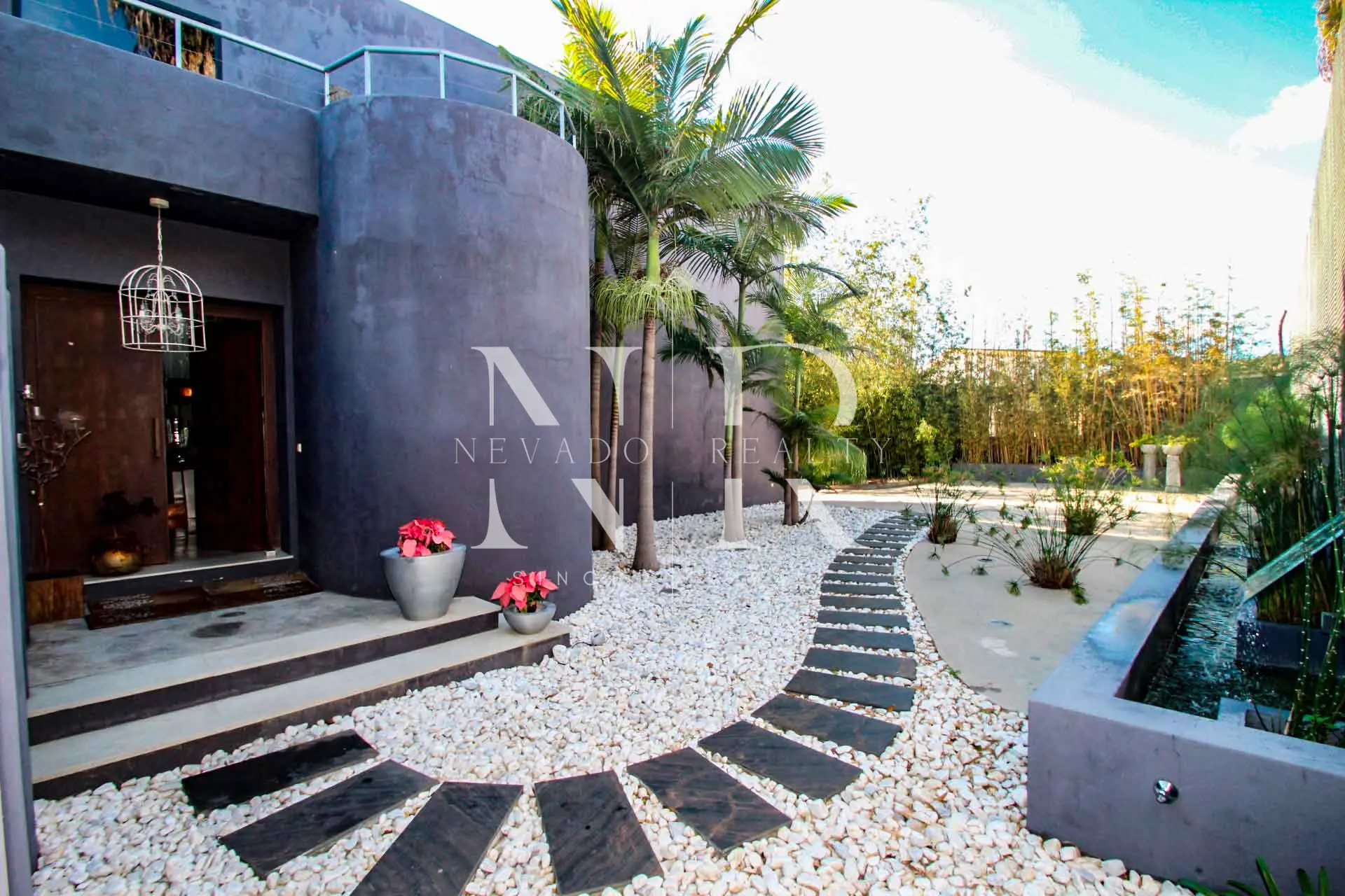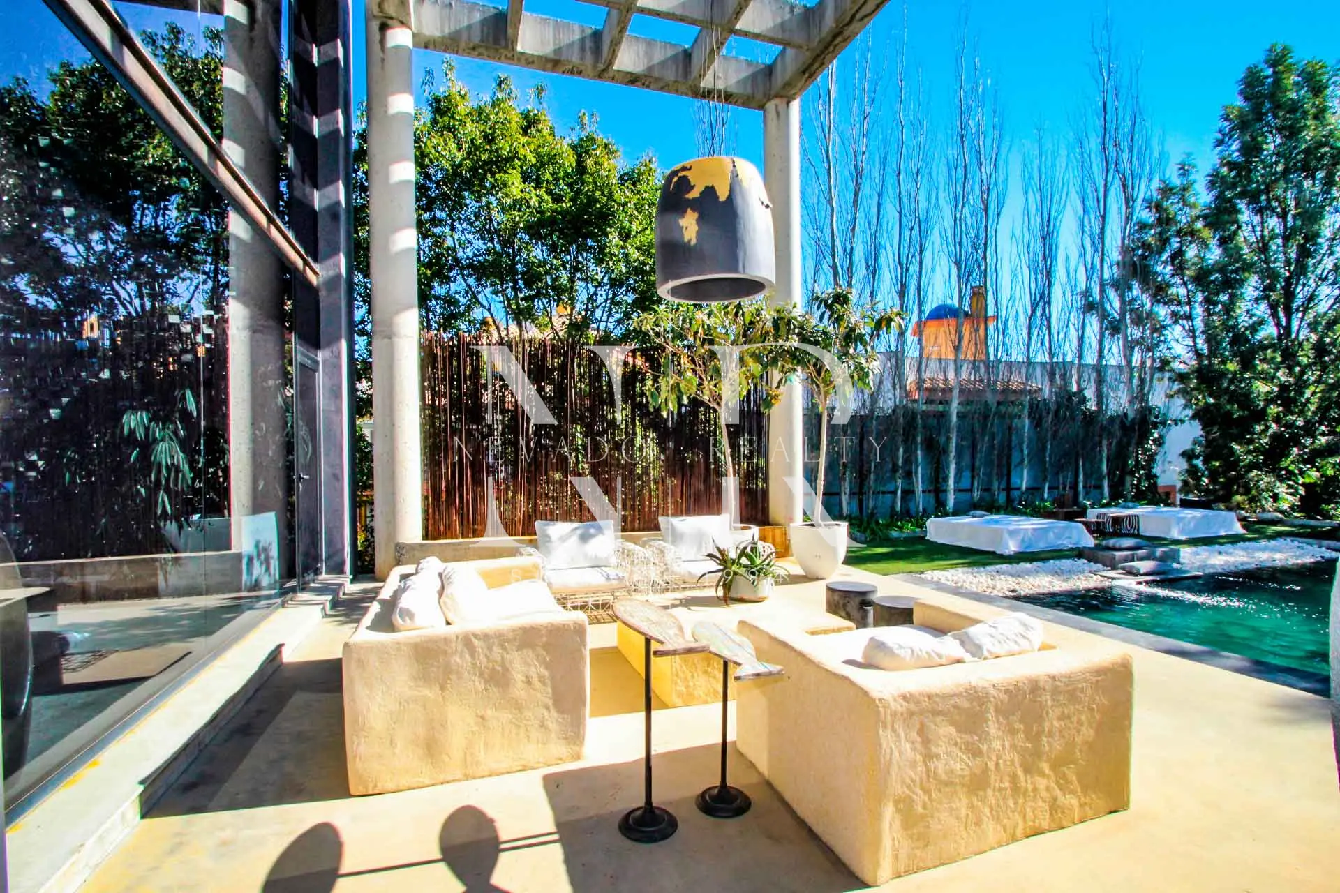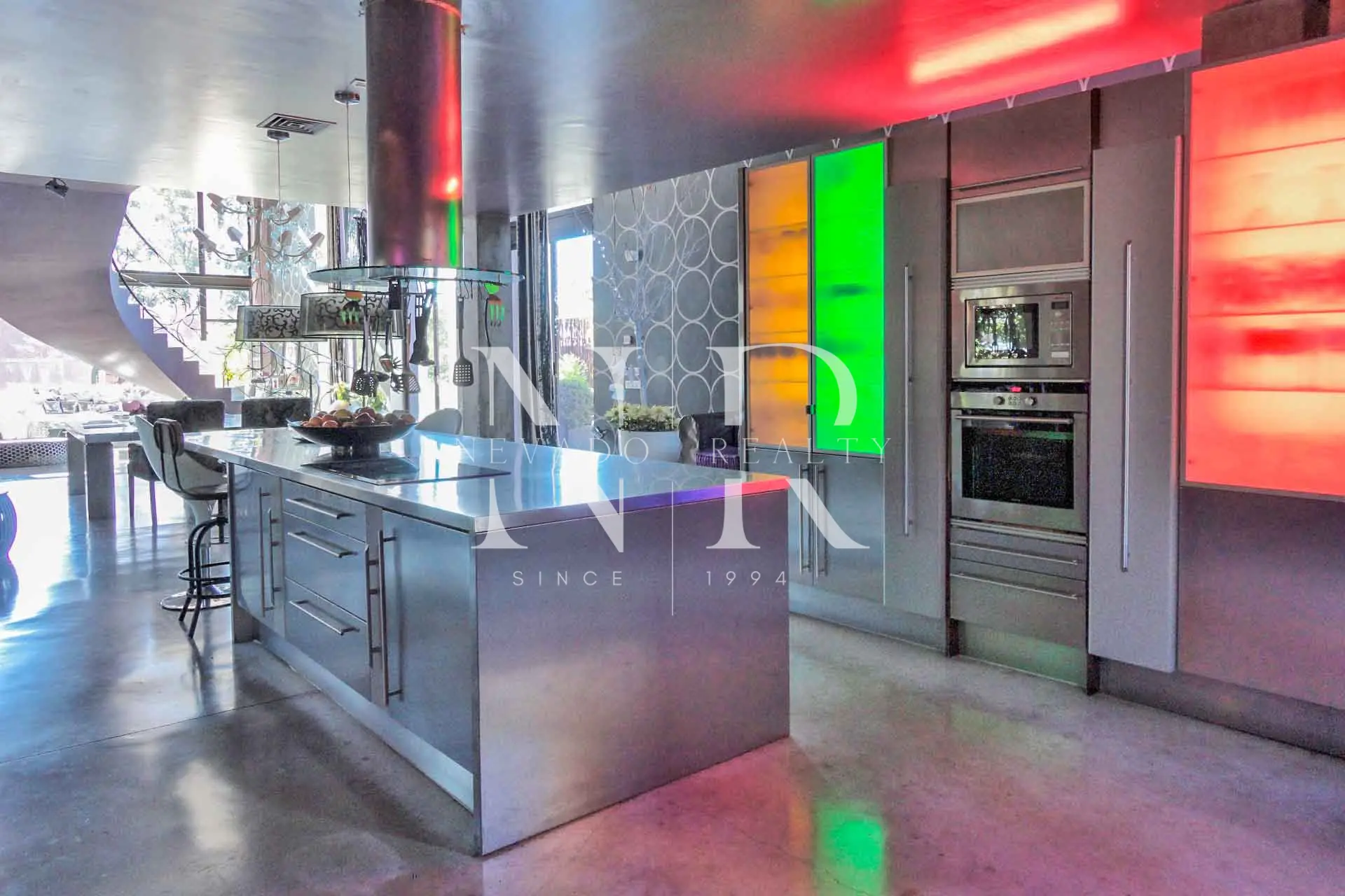 La villa est située sur un terrain privé avec un jardin, un porche et une piscine privée. Le mobilier de la terrasse est en fibre de verre, le garage peut accueillir cinq voitures et la maison dispose de nombreux autres équipements : entrée privée, chauffage par le sol dans toute la maison, turbine à eau, panneaux solaires, climatisation…