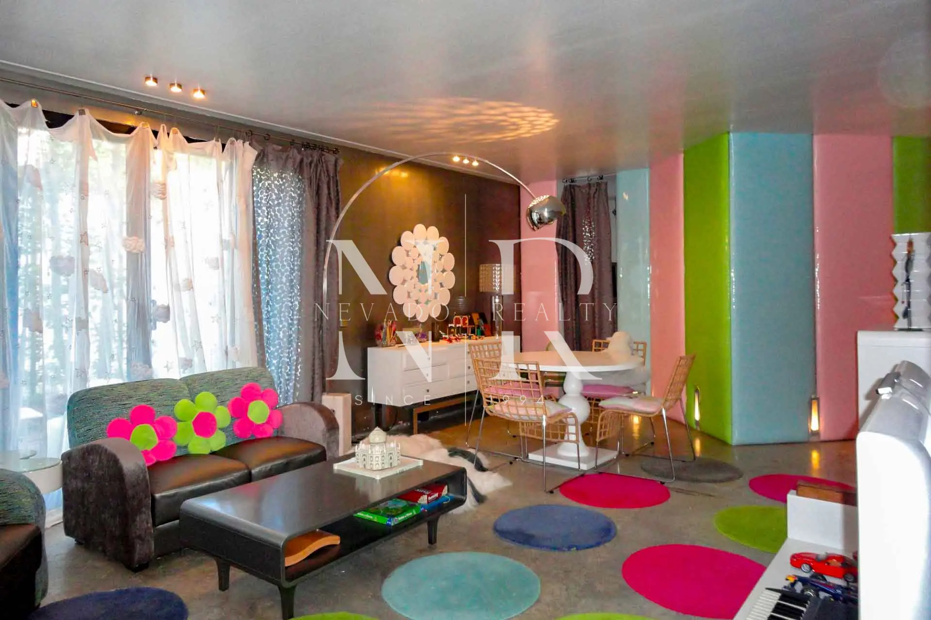Au rez-de-chaussée, il y a trois chambres à coucher, dont l’une est utilisée comme chambre de bonne, un immense dressing, l’espace de jeux et la buanderie.